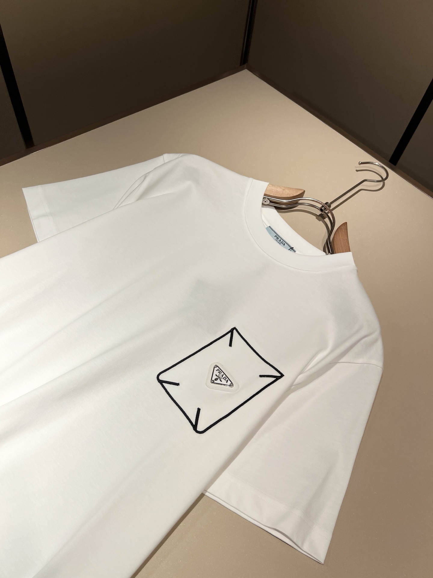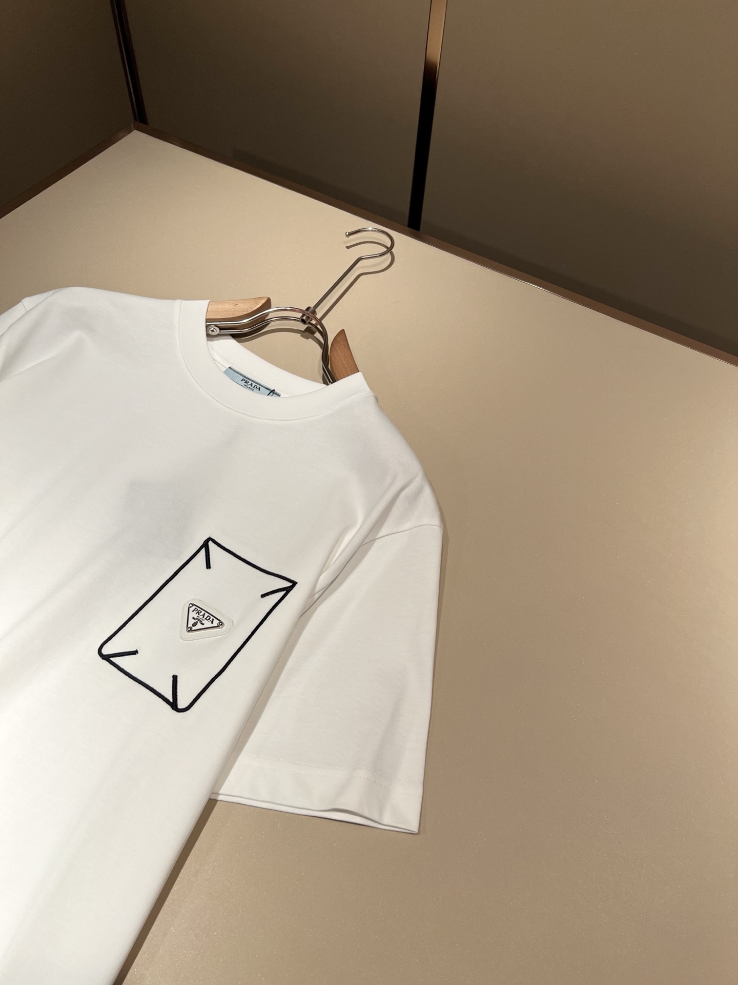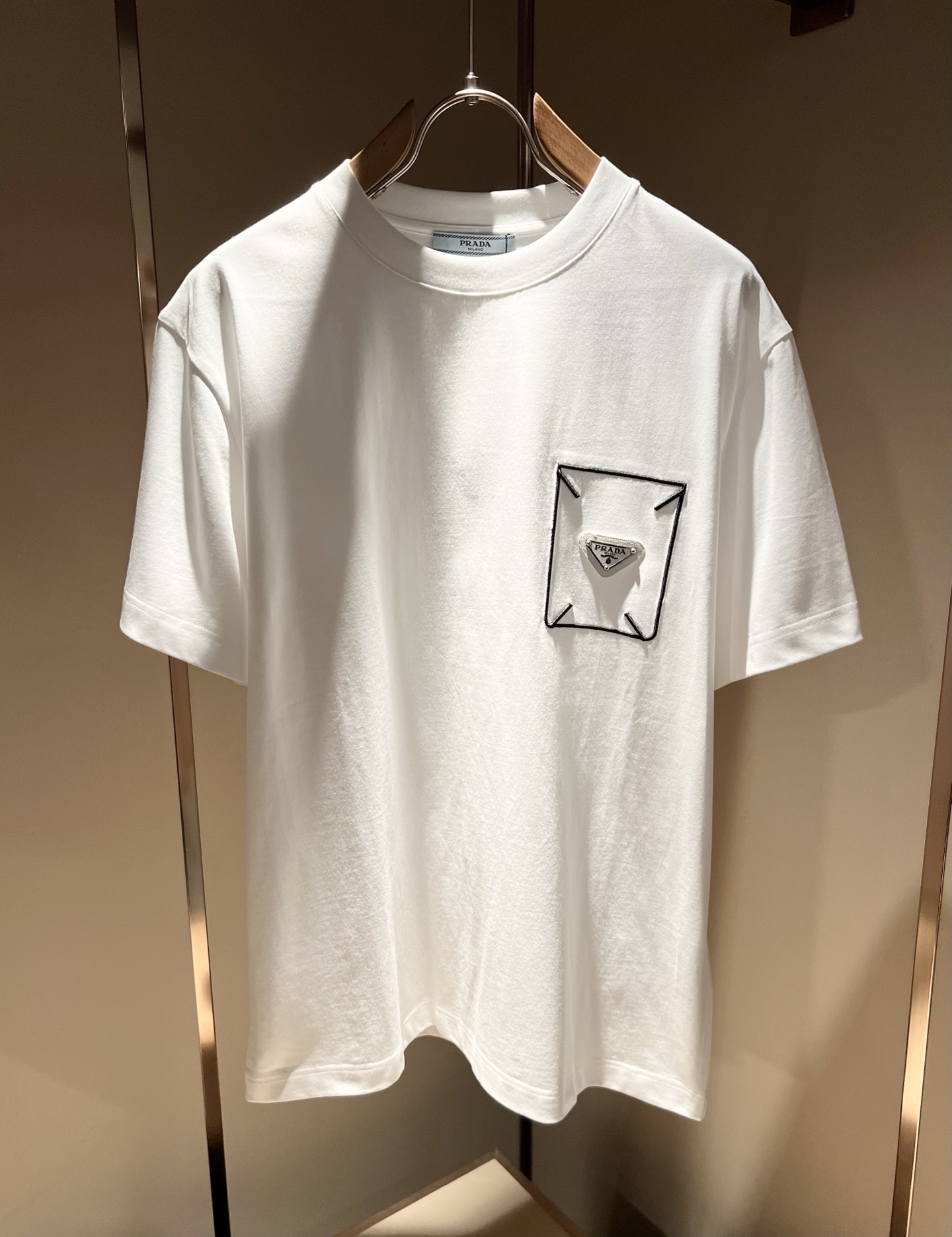 Details: Classic and fashionable short-sleeved T-shirt crafted from imported cotton, featuring a logo badge