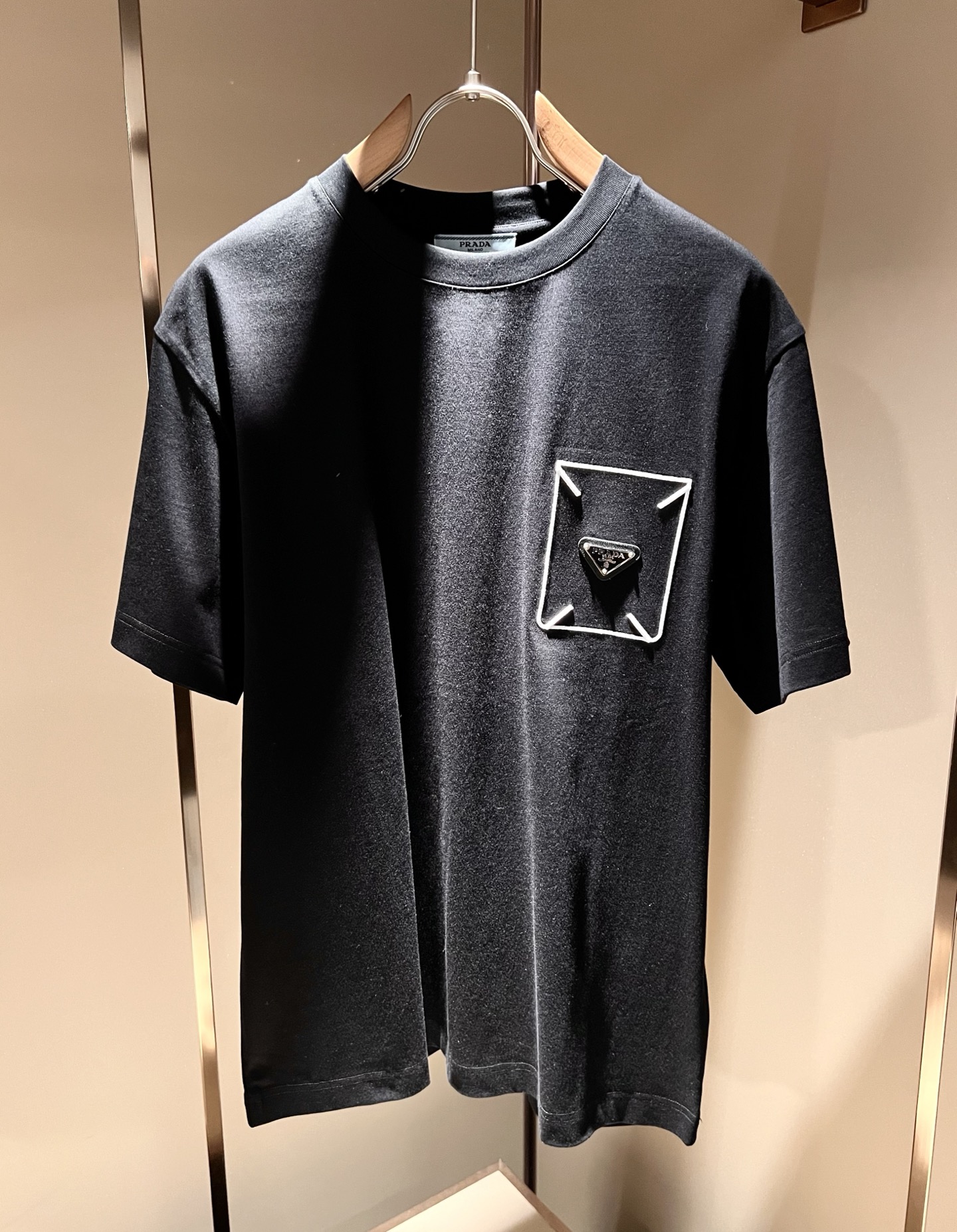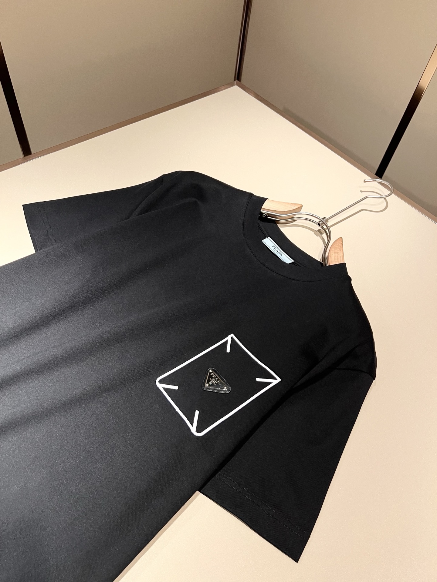 Details: Classic and fashionable short-sleeved T-shirt crafted from imported cotton, featuring a logo badge