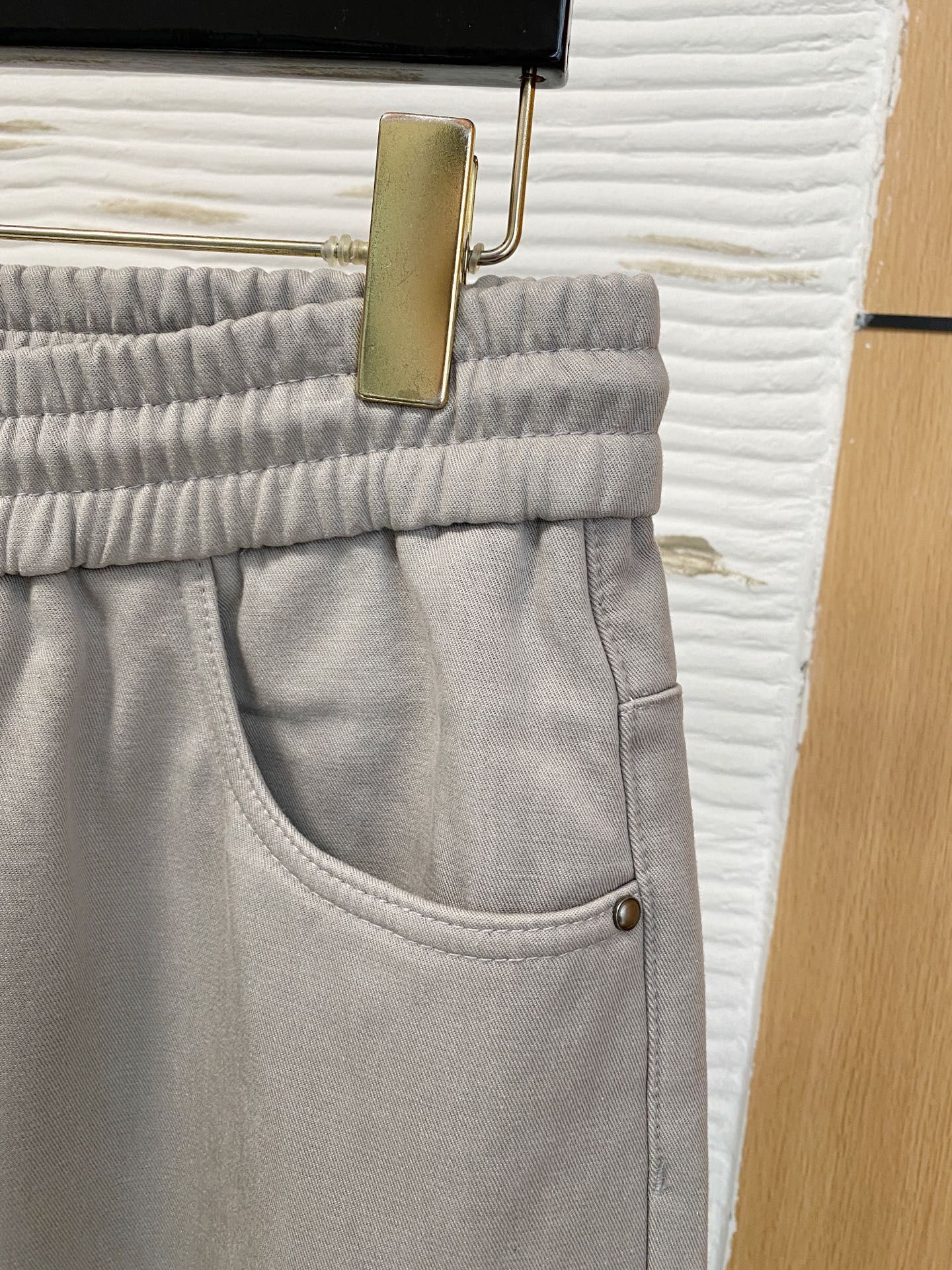 Details: Custom - designed casual pants featuring exclusive fabric, combining style and comfort.
