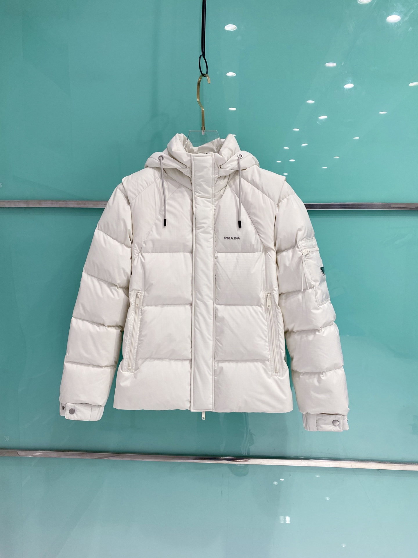 Details: Down jacket with removable sleeves, filled with 90% down, geometric design, and two wearing styles.
