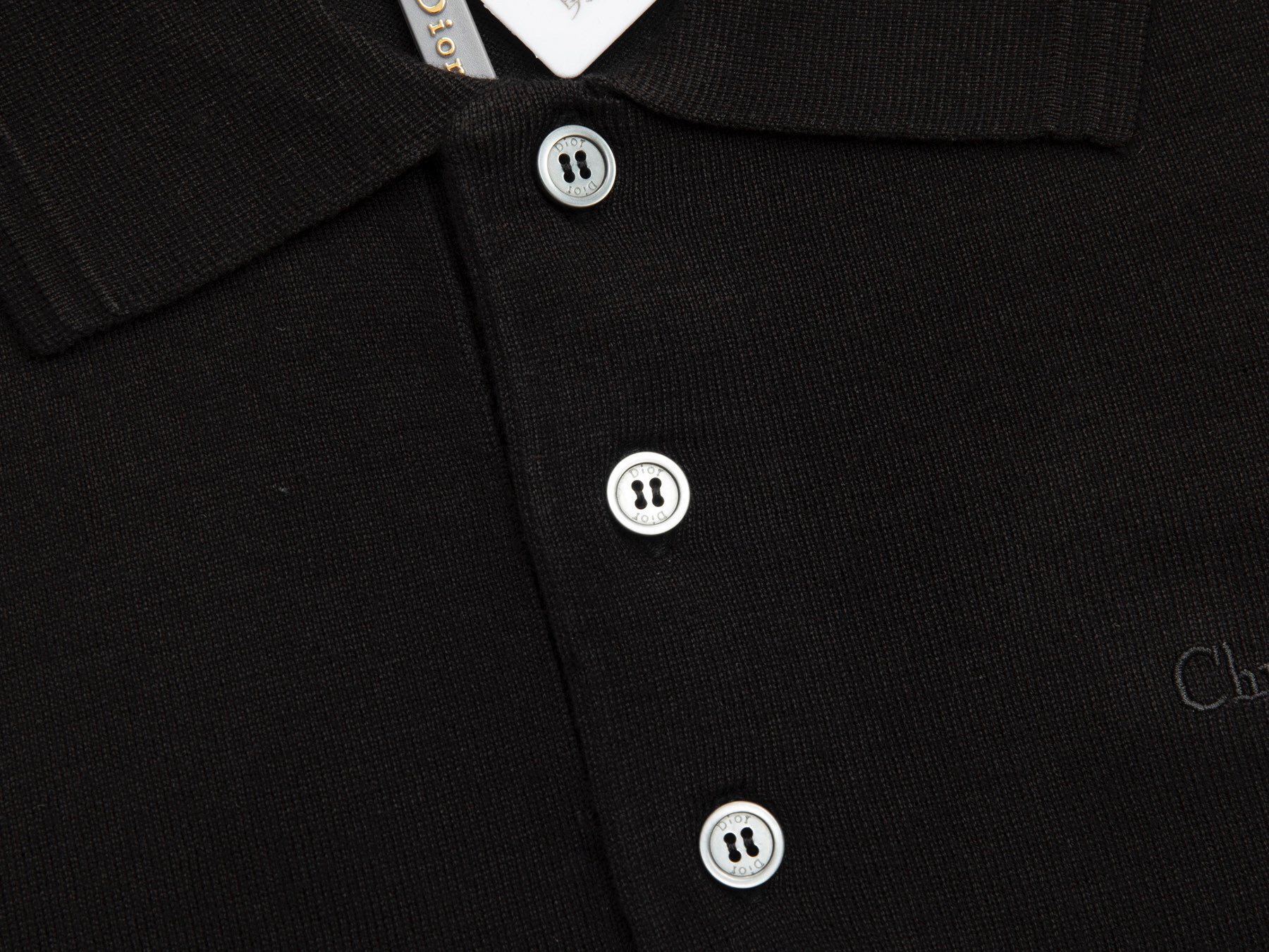 Details: Classic Black and Sky-Blue Letter-Jacquard Cashmere Short-Sleeve