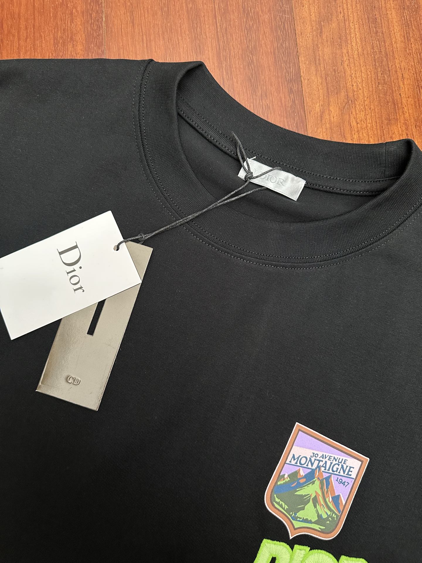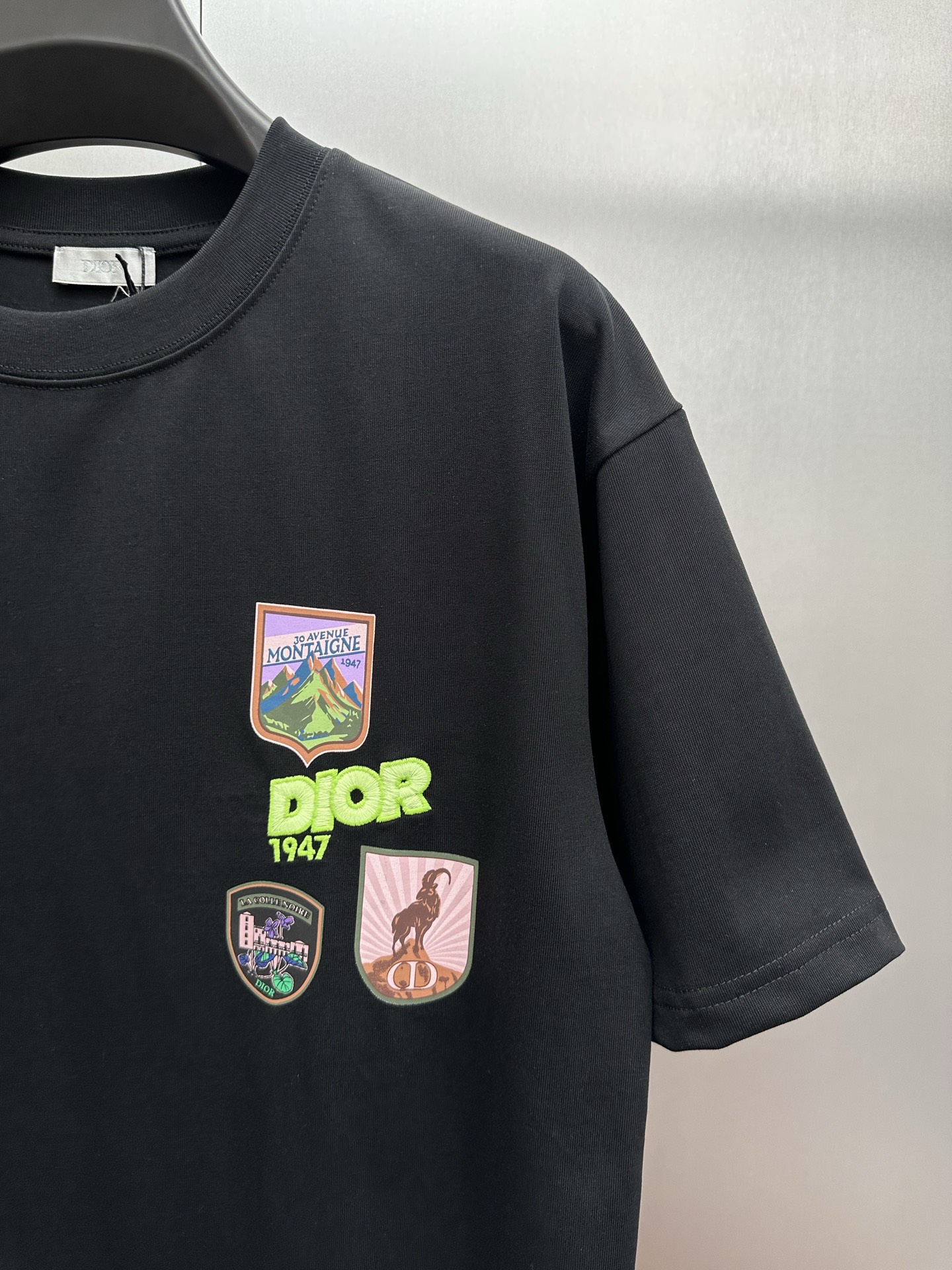 Details: Black T-shirt with badge embroidery and breathable cotton in a loose fit