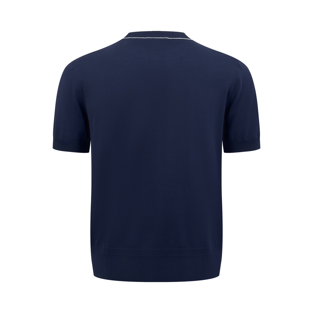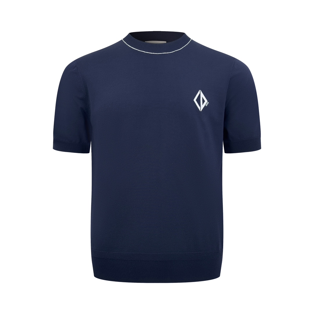 Details: Soft knitted short-sleeved shirt with logo embroidery, presenting an elegant and comfortable style.