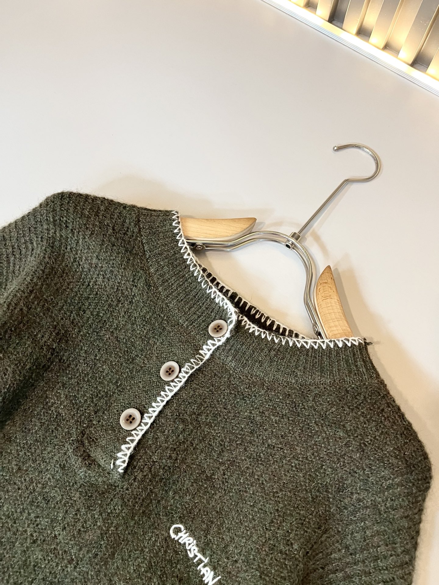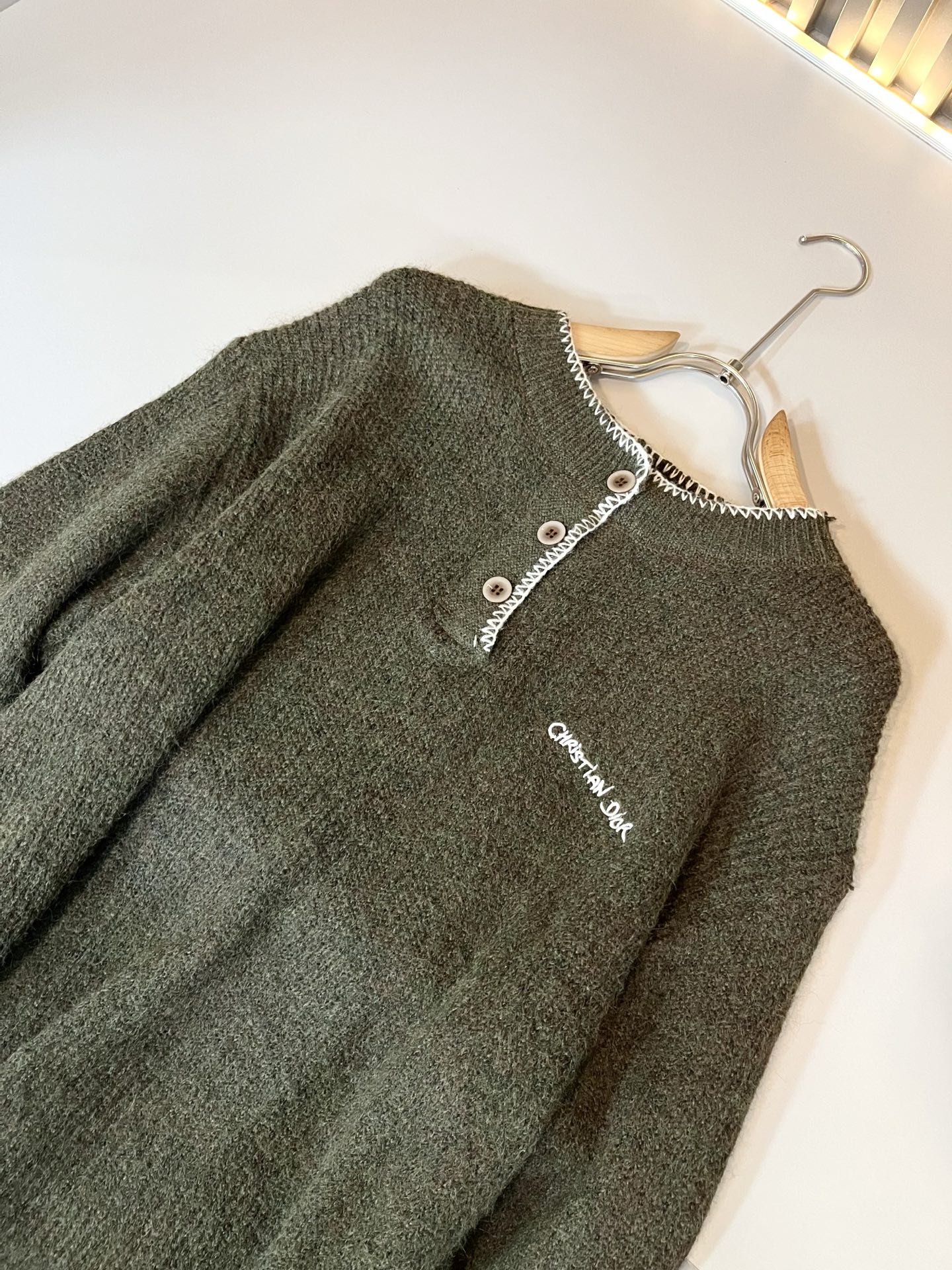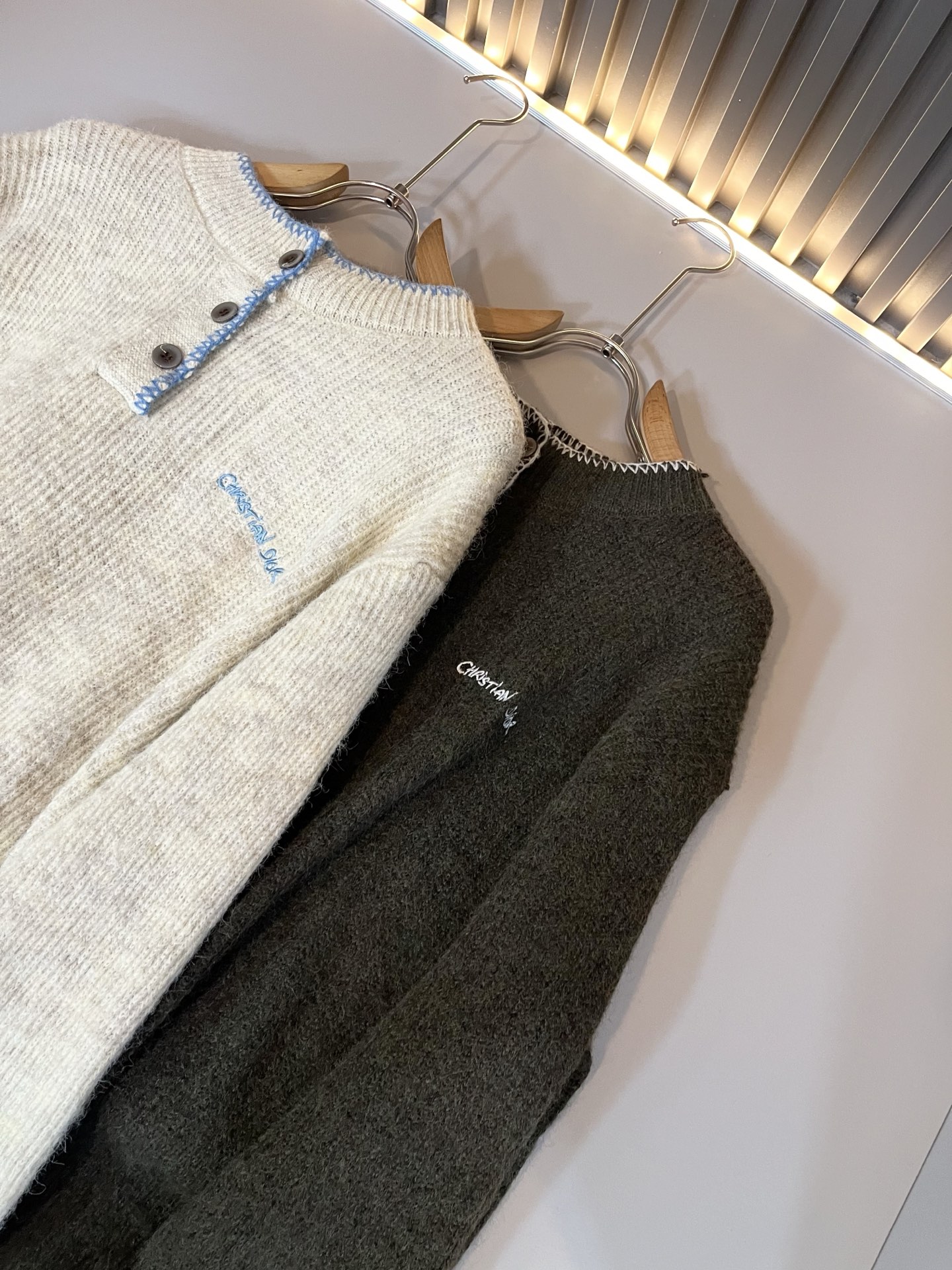 Details: Knitted woolen sweater with logo embroidery, versatile and Premium