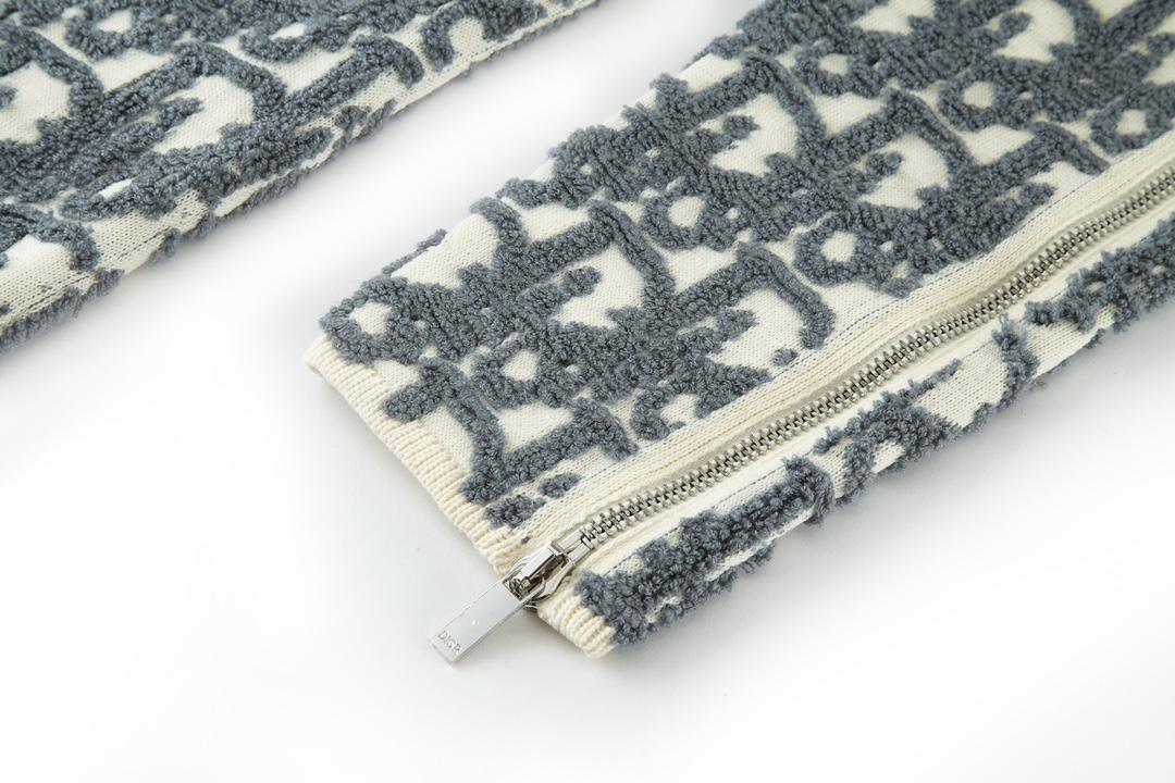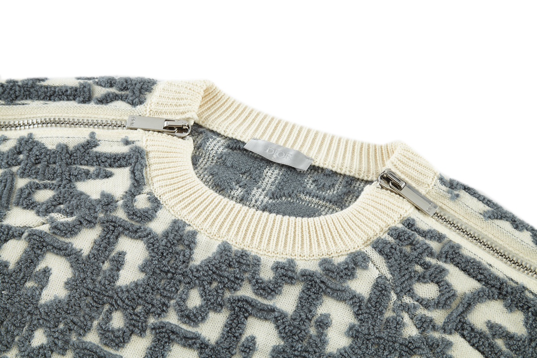 Details: Zippered wool blend sweater with raised print, Premium and fashionable