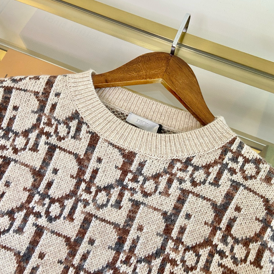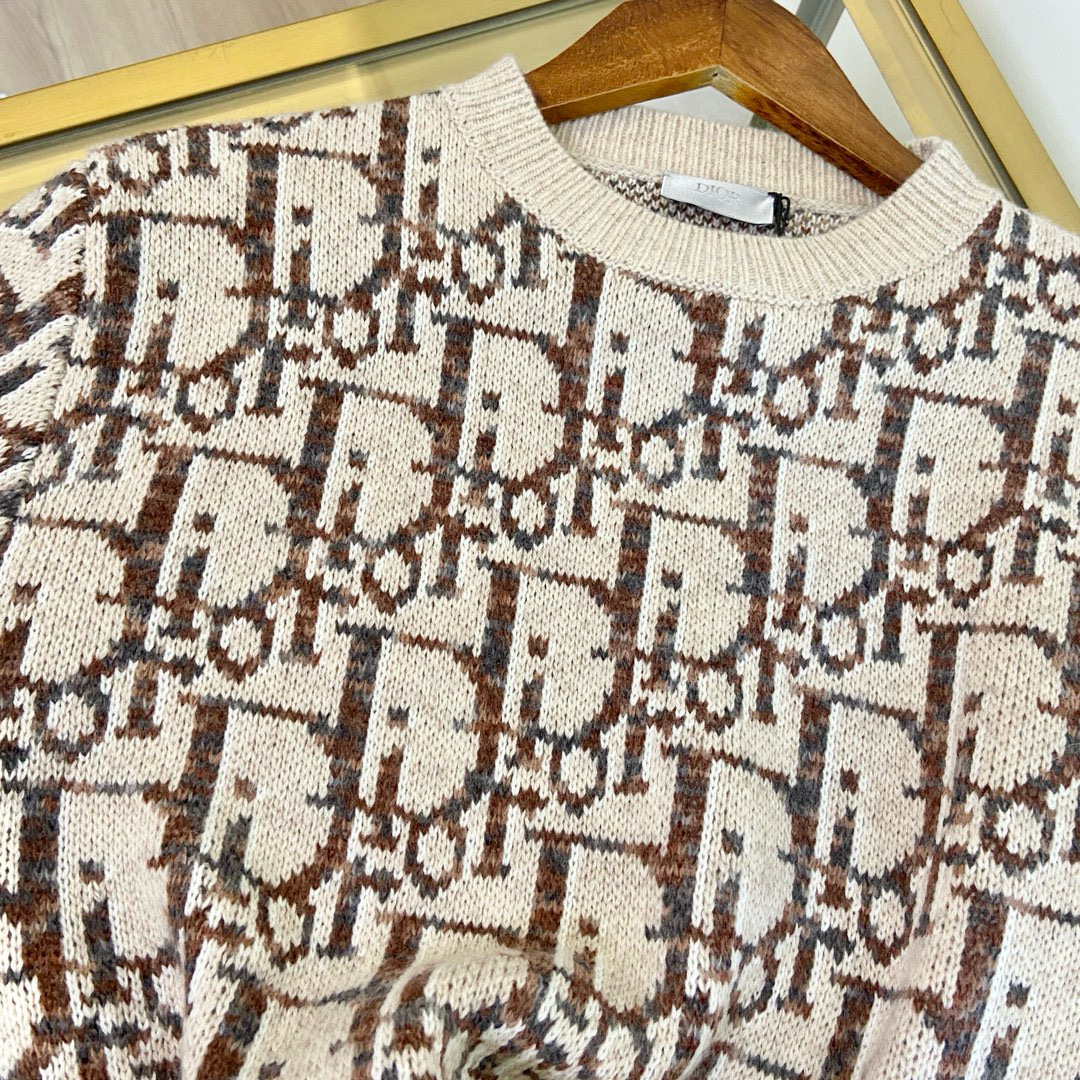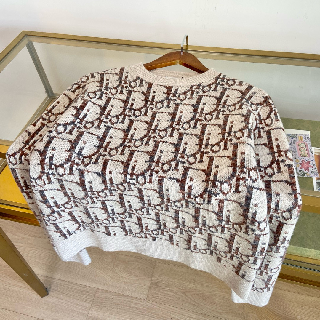 Details: Exclusive platform version, a knitted pullover reinterpreting the classic Oblique print, with an elegant design and ribbed collar, cuffs, and hem.