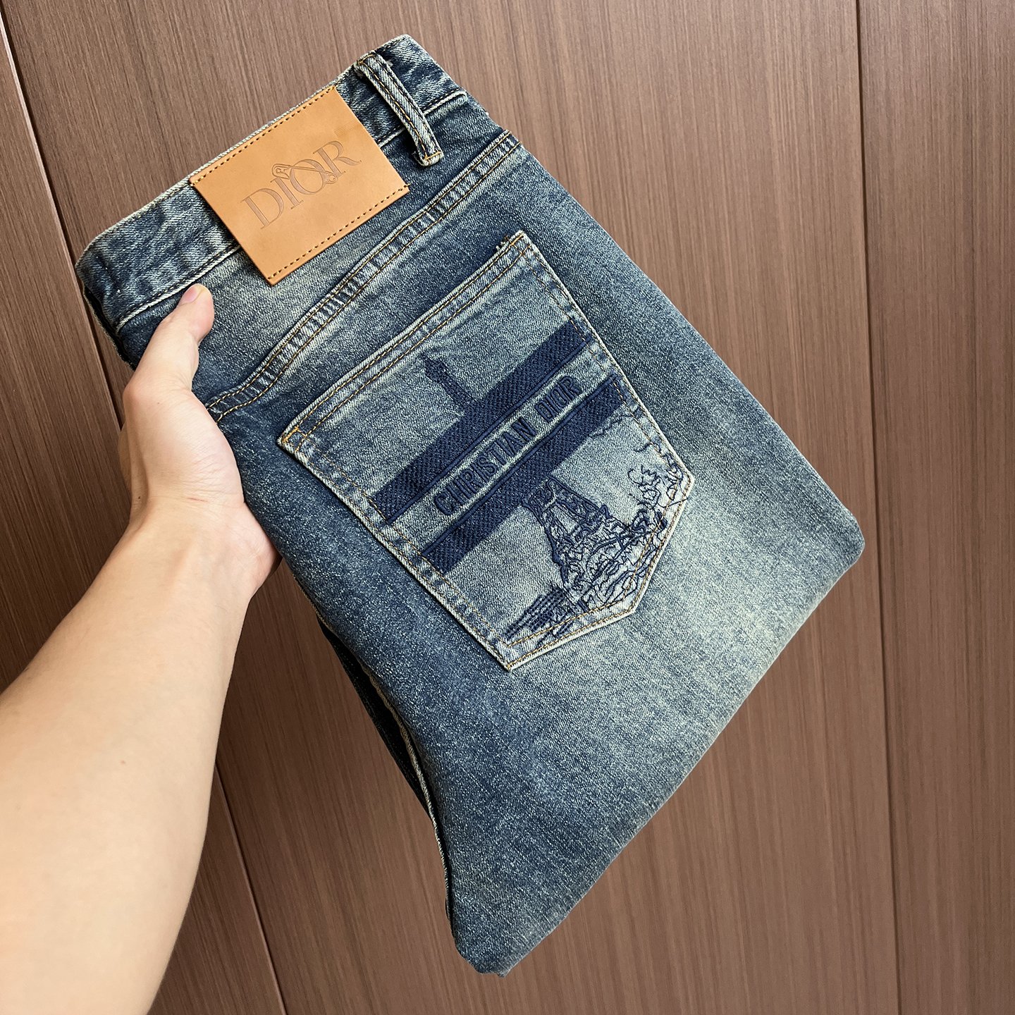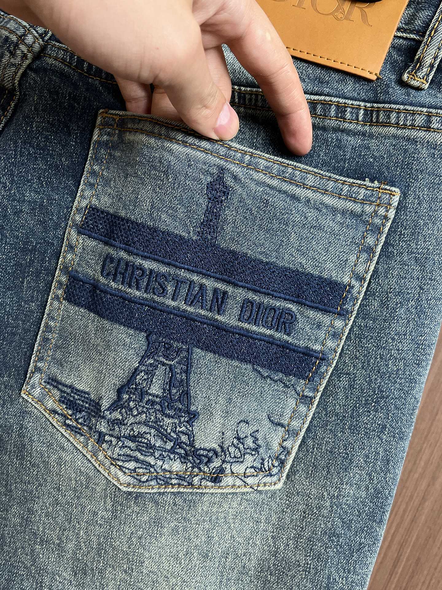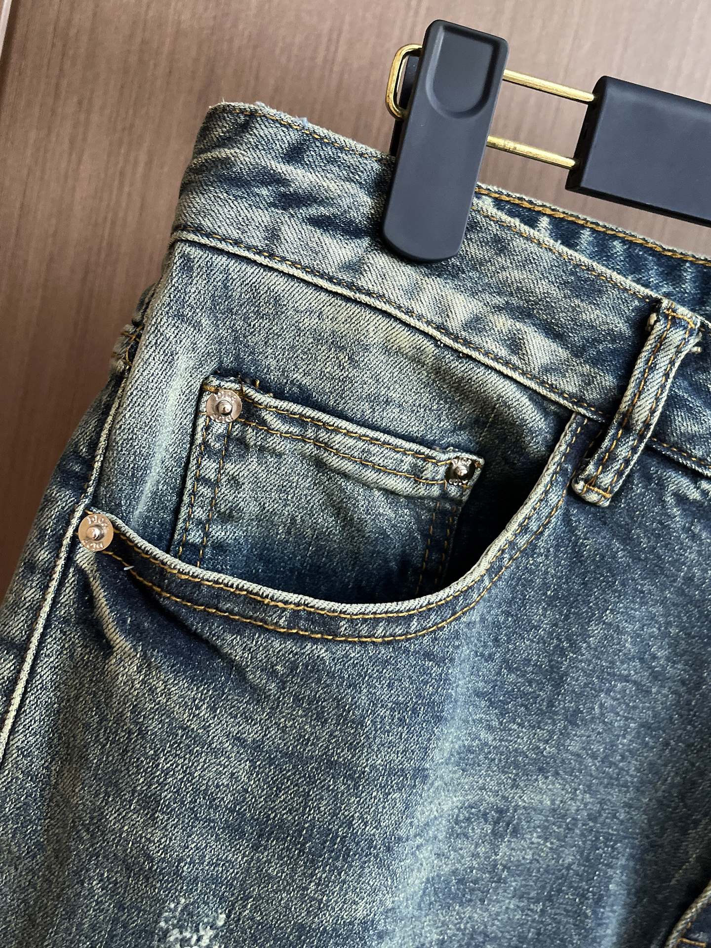 Details: Authentic, high-grade washed jeans featuring a custom hardware logo, heavy embroidery, soft and flexible material, and a stylish fit.