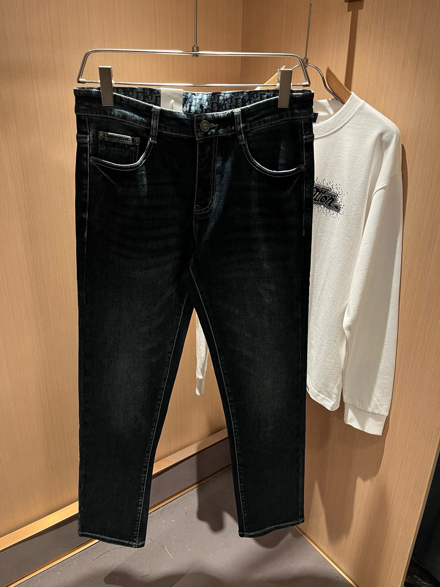 Details: High-quality jeans from a trading company, featuring a leather waistband logo and custom Italian denim for a flattering fit