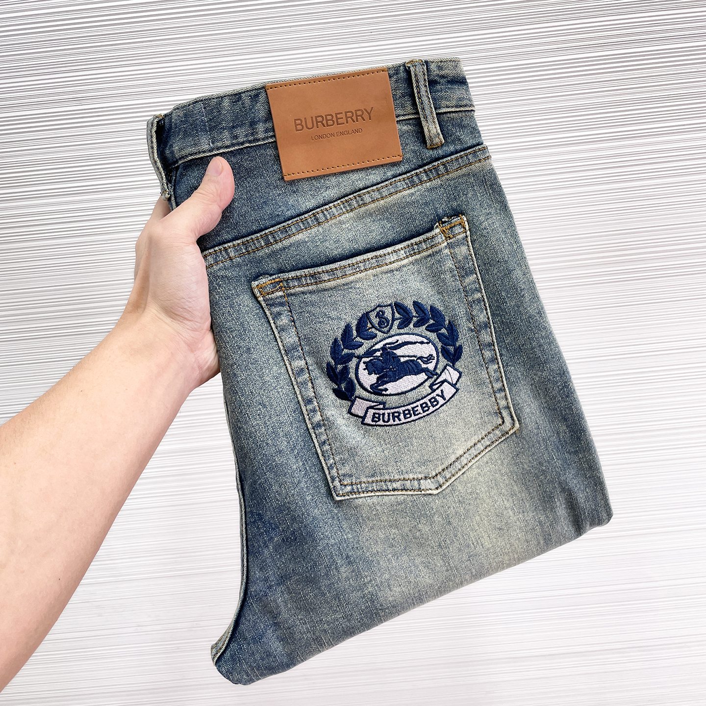 Details: Replica jeans with an original-style hardware logo and delicate embroidery, made of soft and resilient denim, offering comfort and fashion