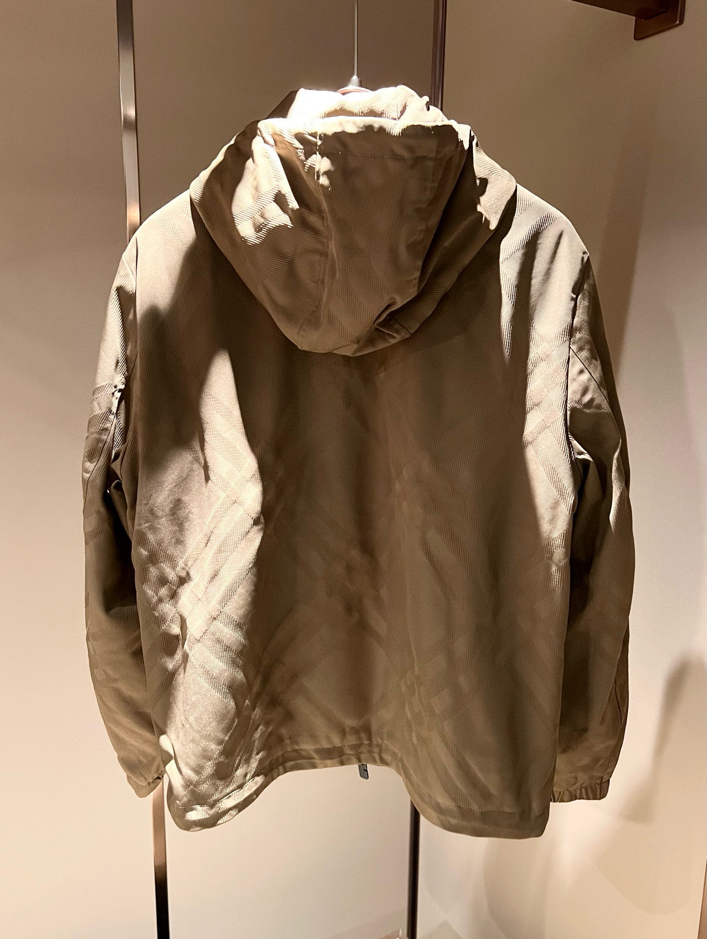Details: Eco - friendly fabric jacket with logo embroidery, combining checks and fashion, ideal for daily wear.