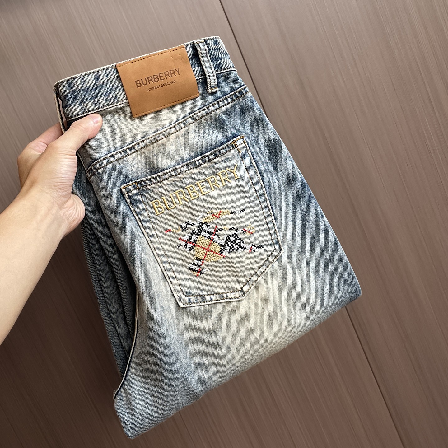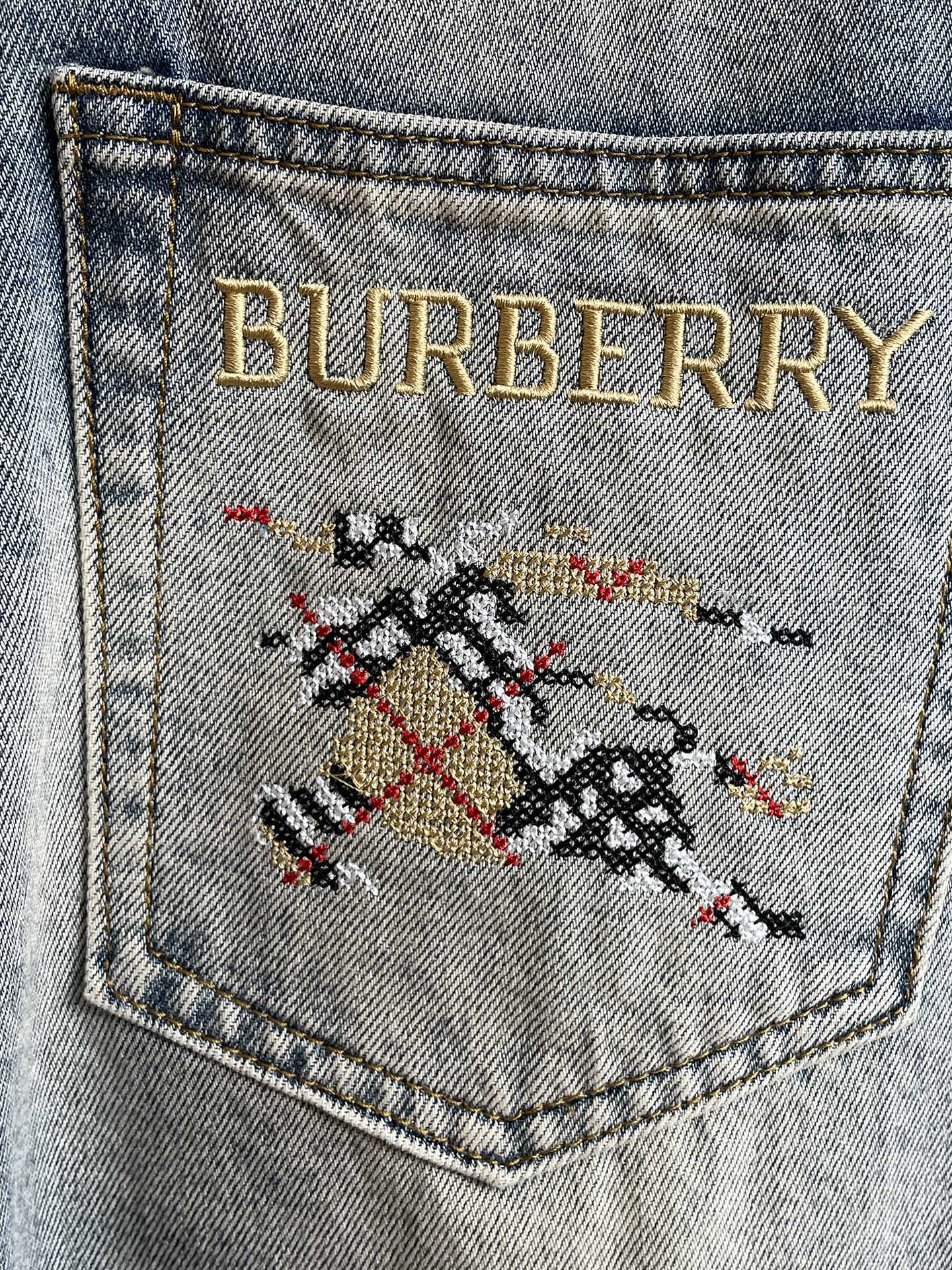 Details: Superior washed jeans from the original order, with a custom hardware logo, elaborate embroidery, soft and strong denim, and a comfortable shape
