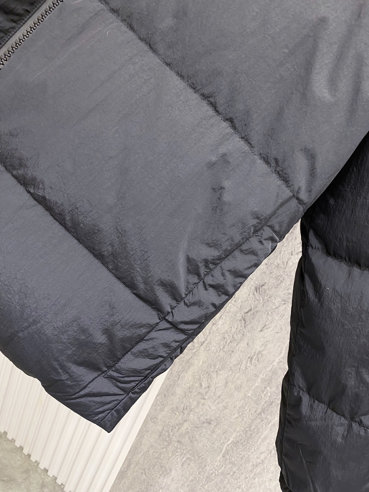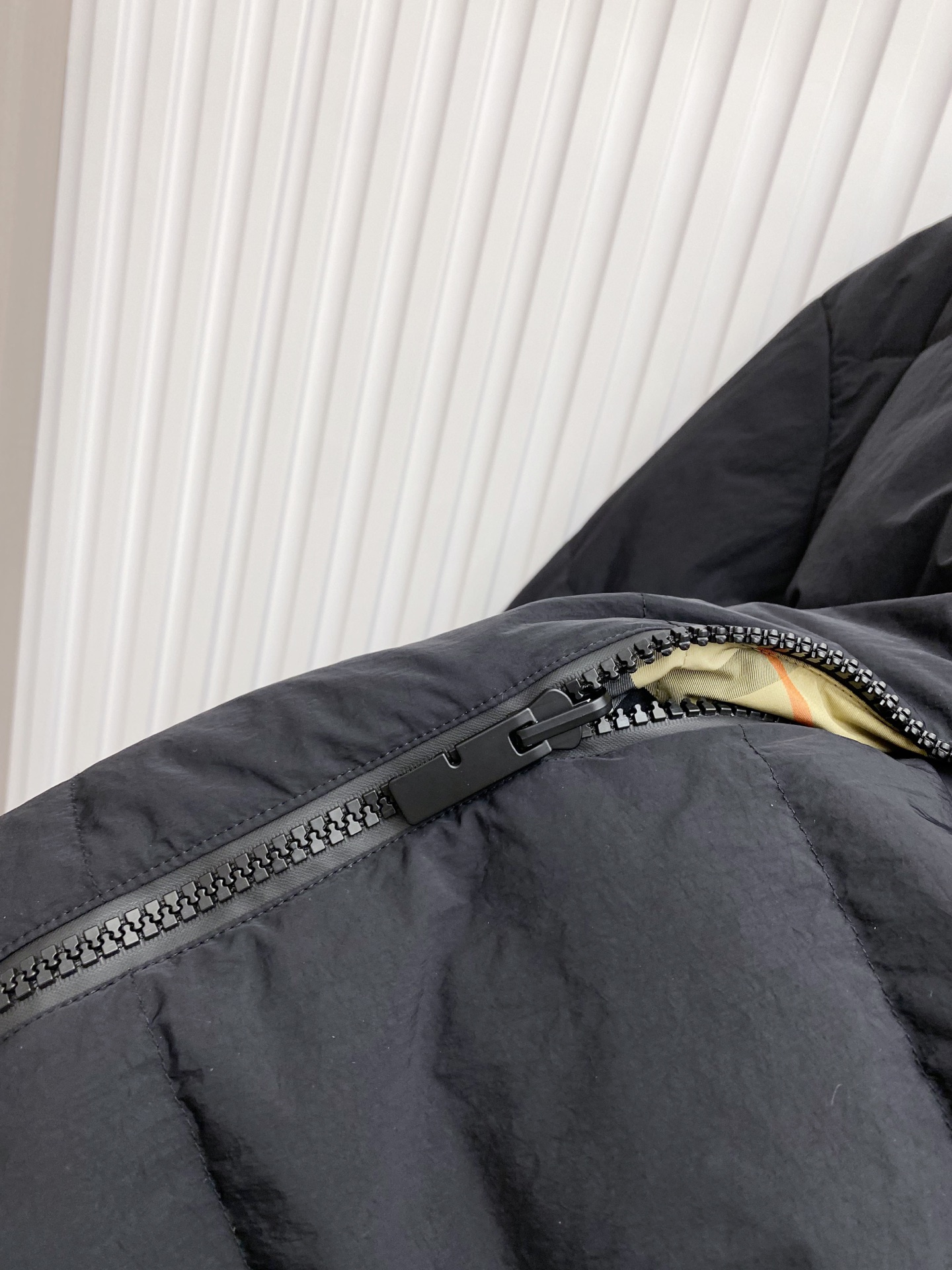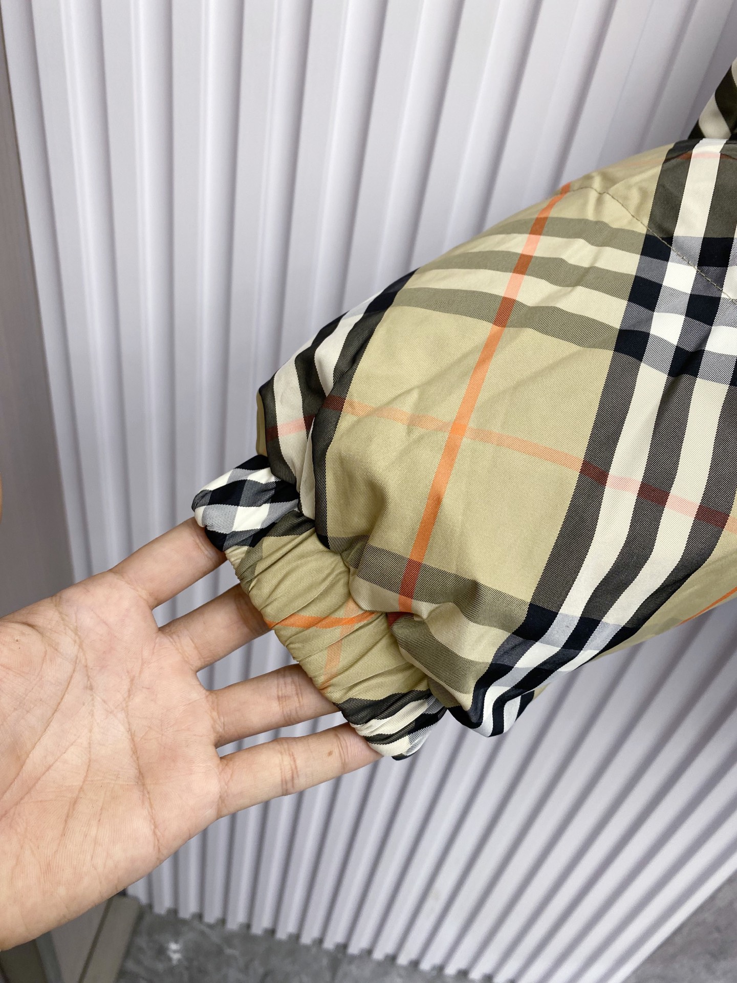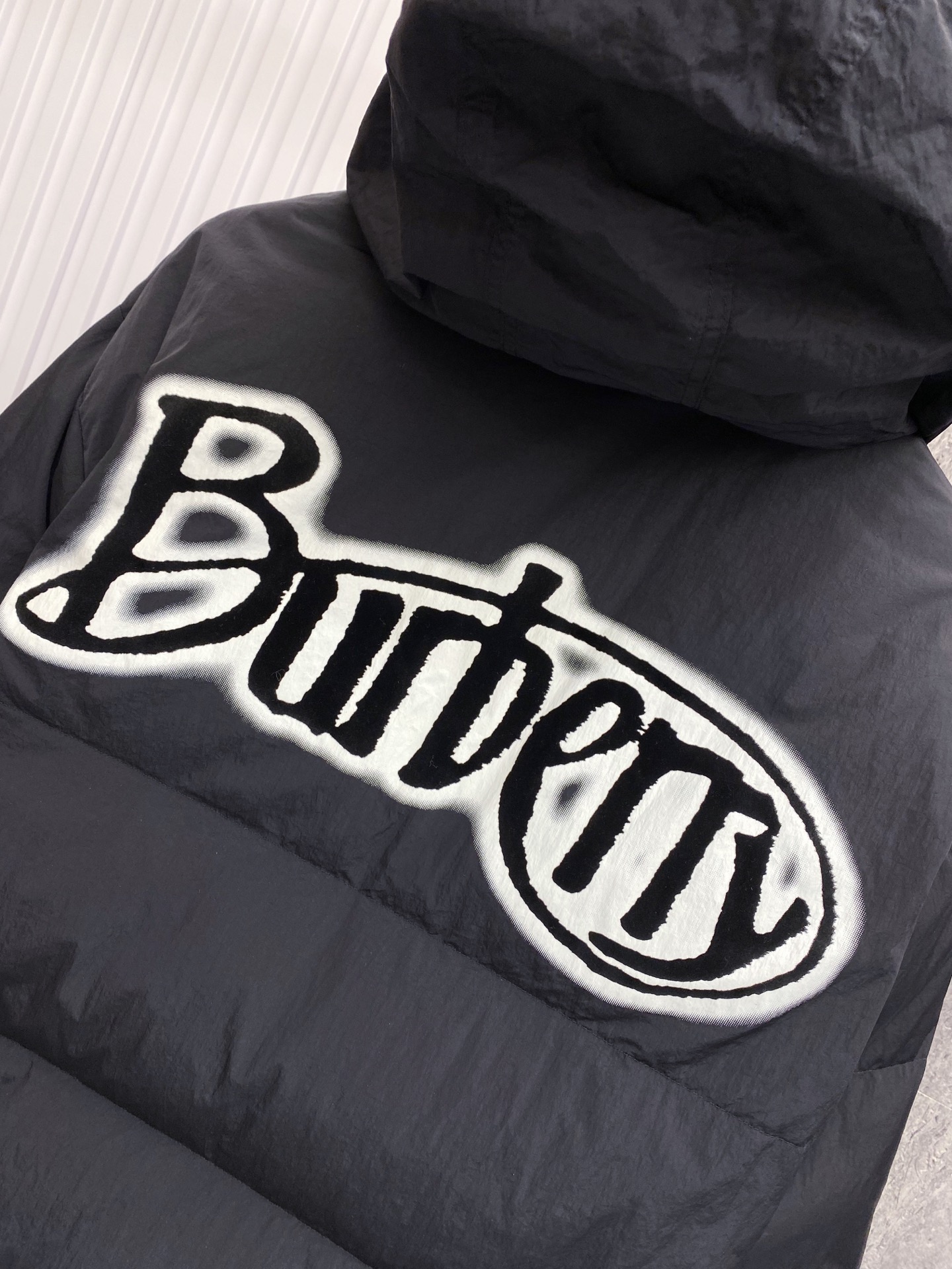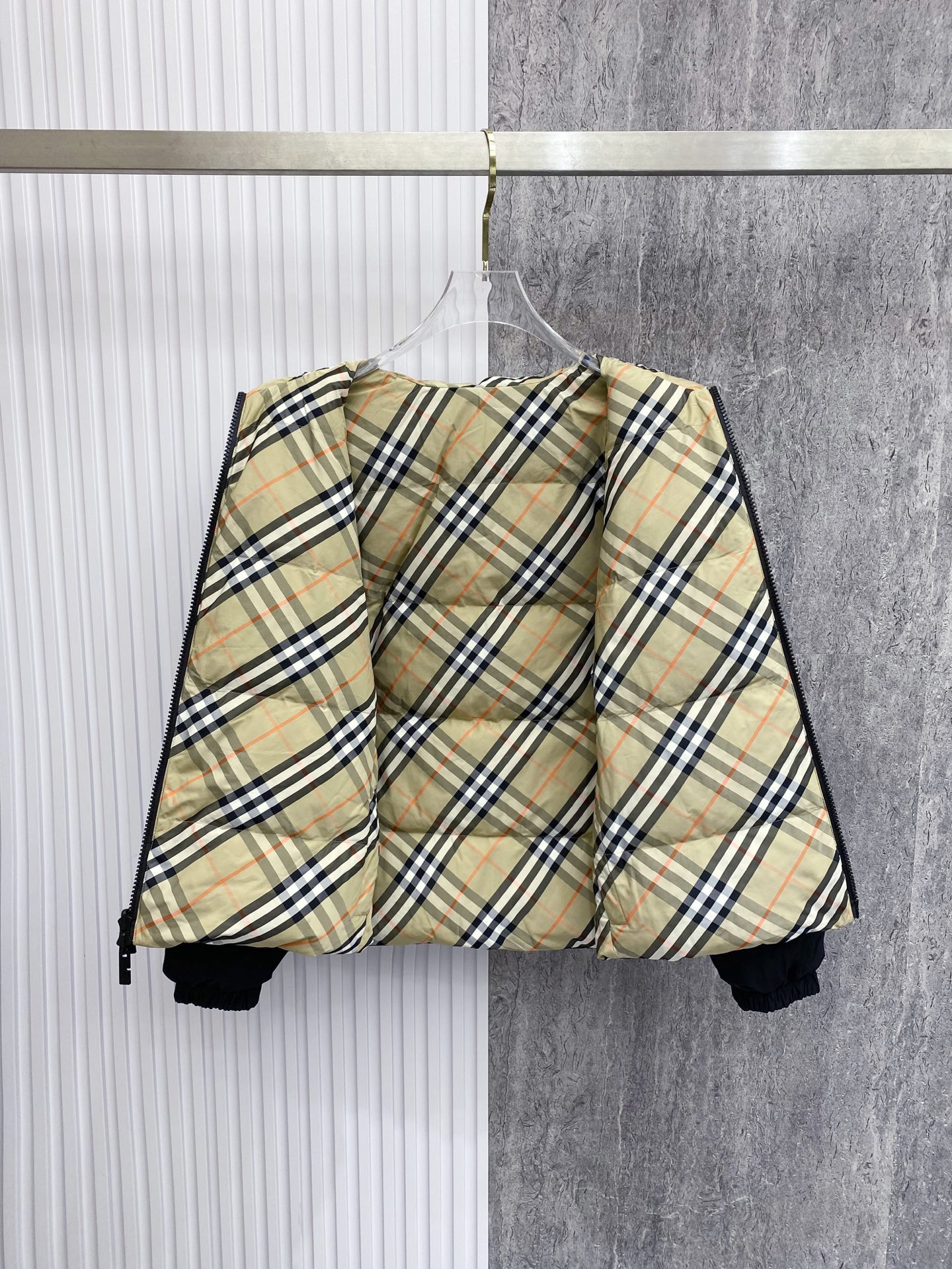 Details: Double-Sided Stand-Up Collar Down Jacket Made of Eco-Friendly Fabric with Logo Badge