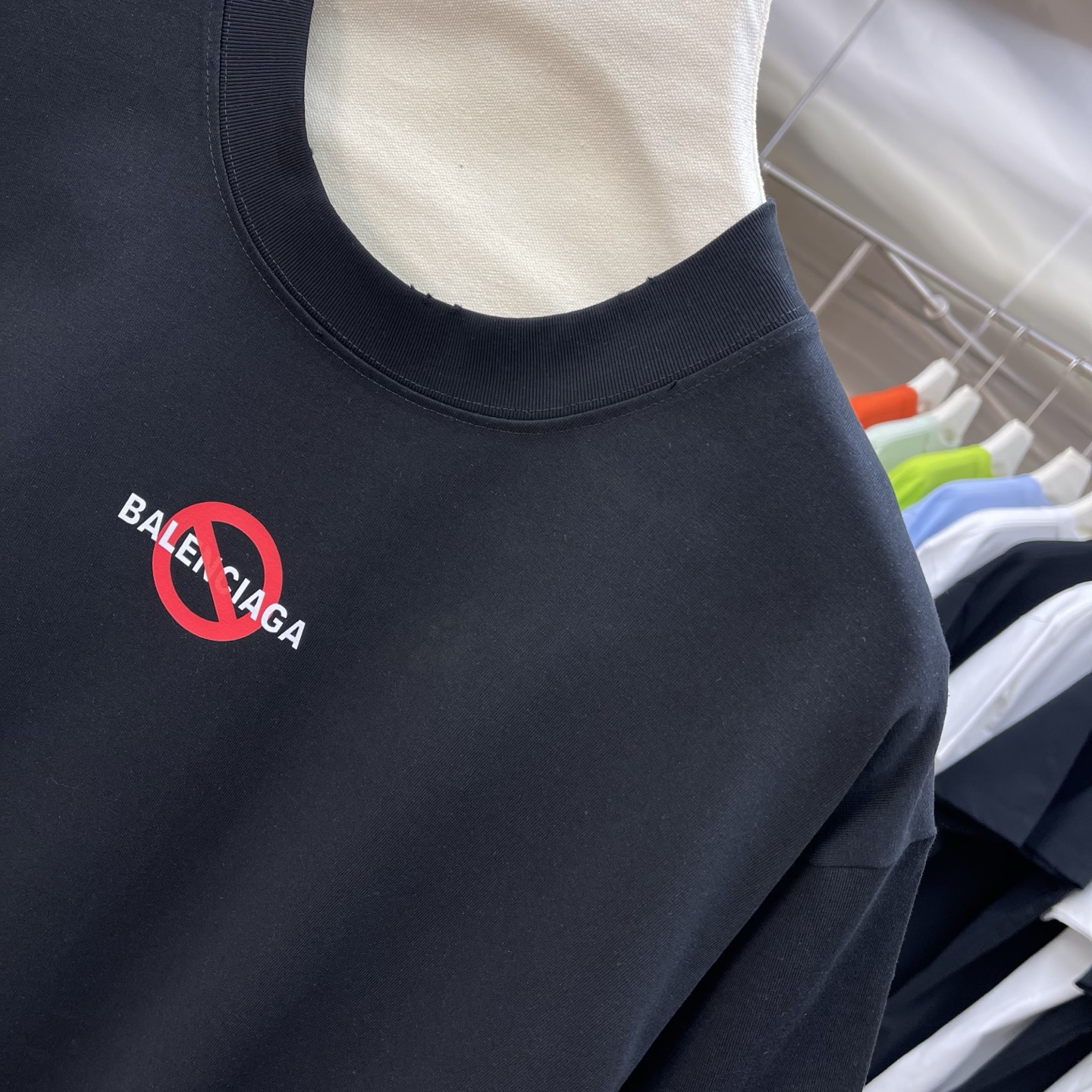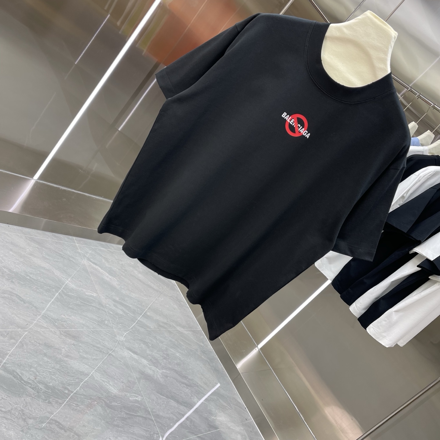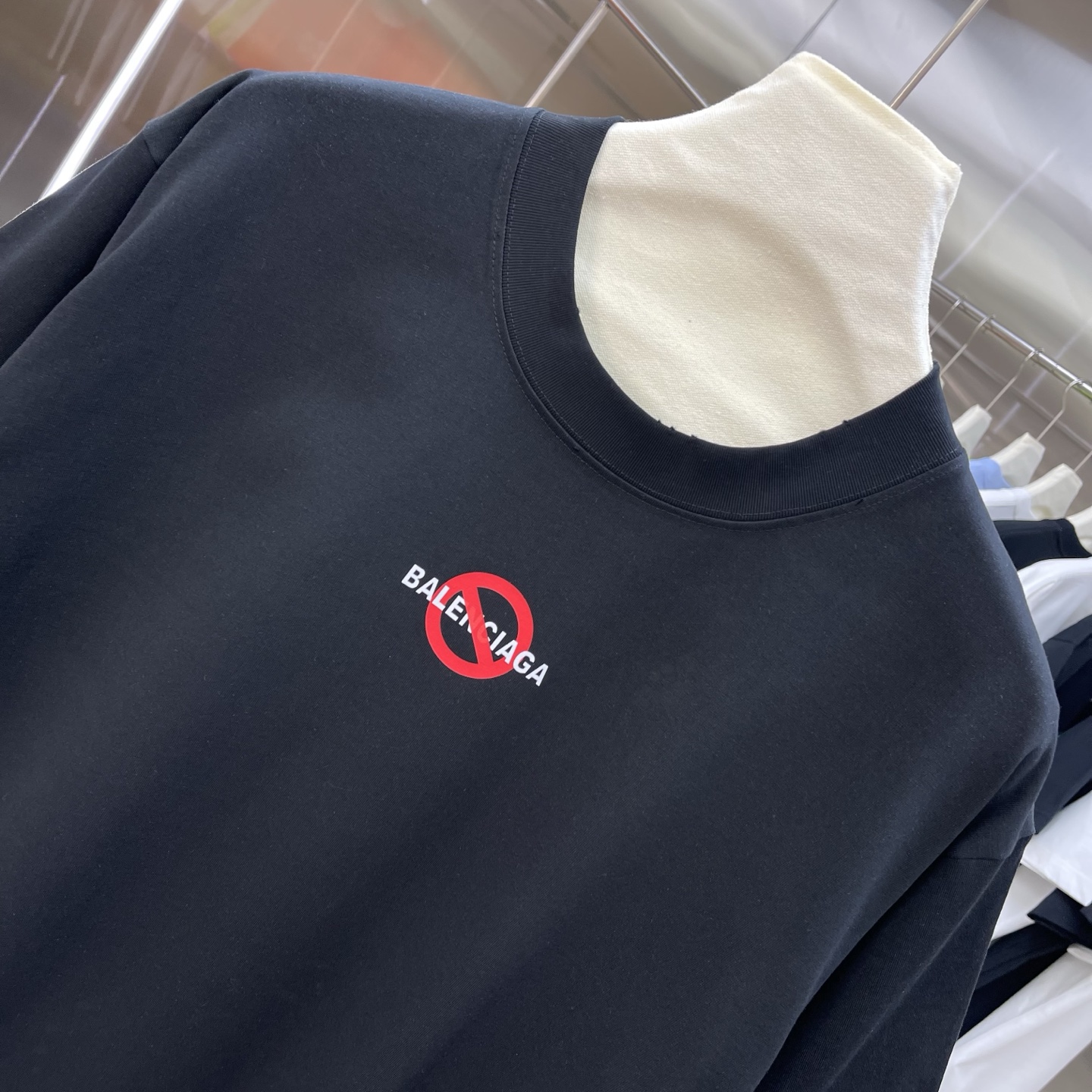 Details: New short-sleeved T-shirt, 320g, frayed round neck, black and white