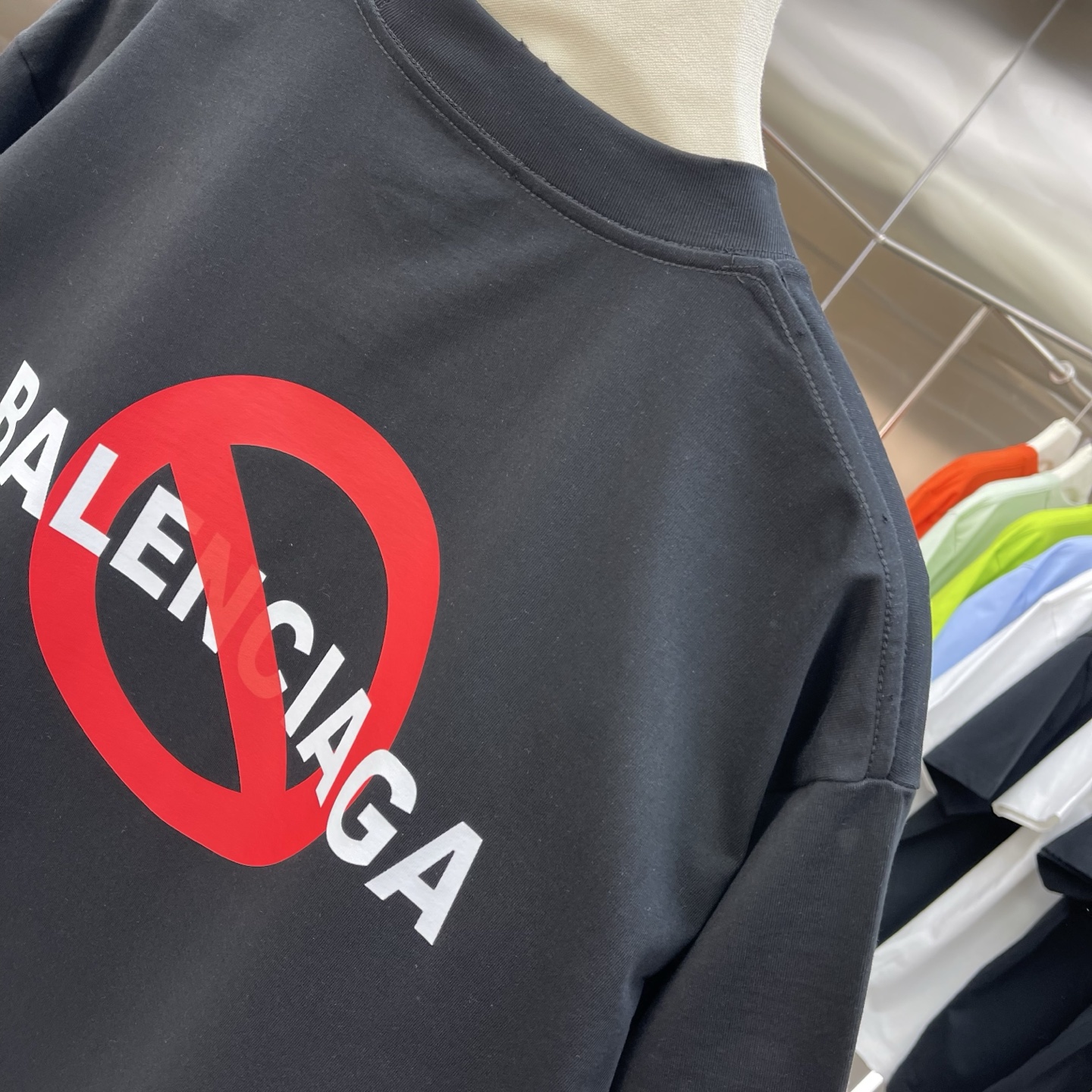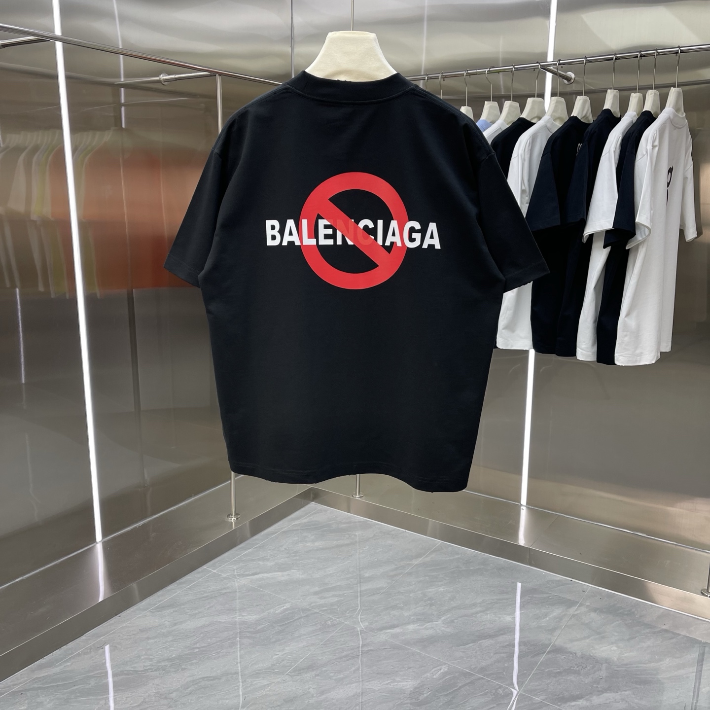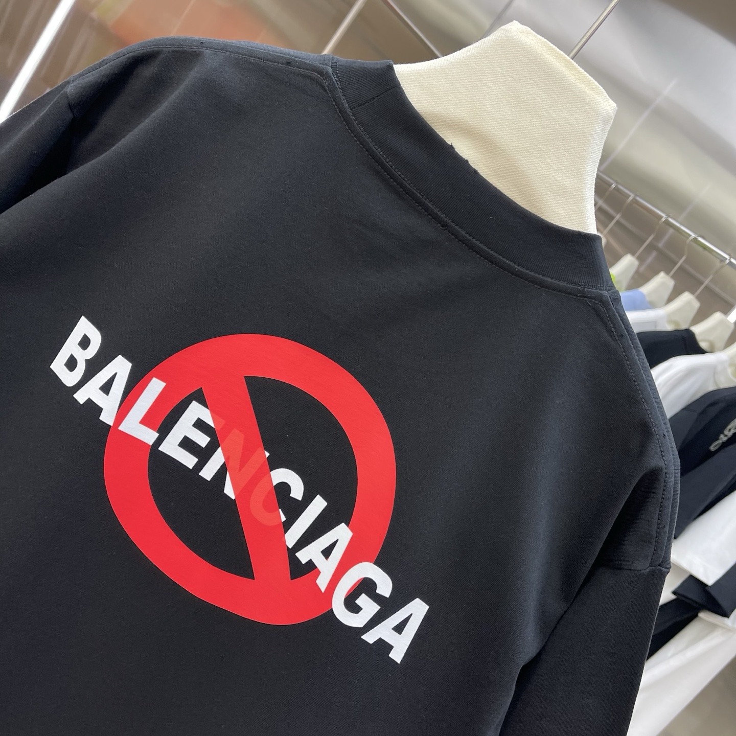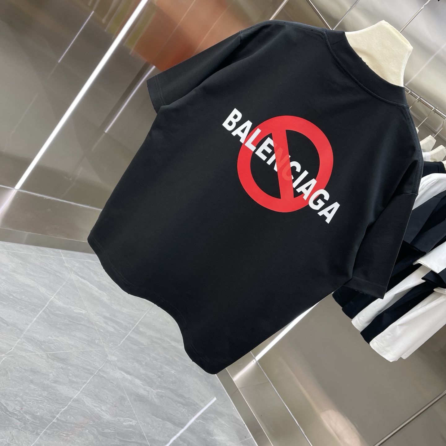 Details: New short-sleeved T-shirt, 320g, frayed round neck, black and white