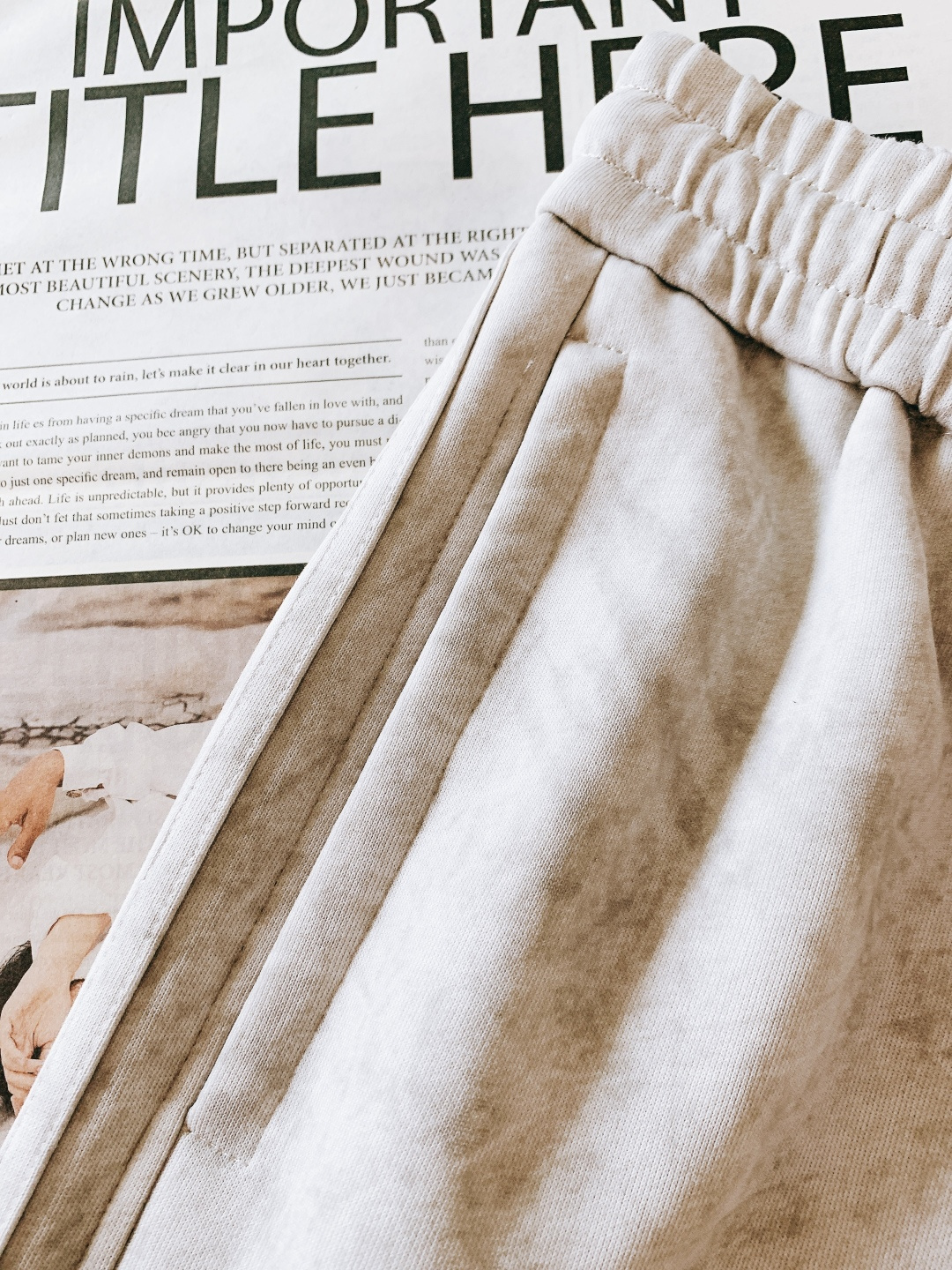 Details: Drawstring casual pants made of soft fabric, no color - change, neat style