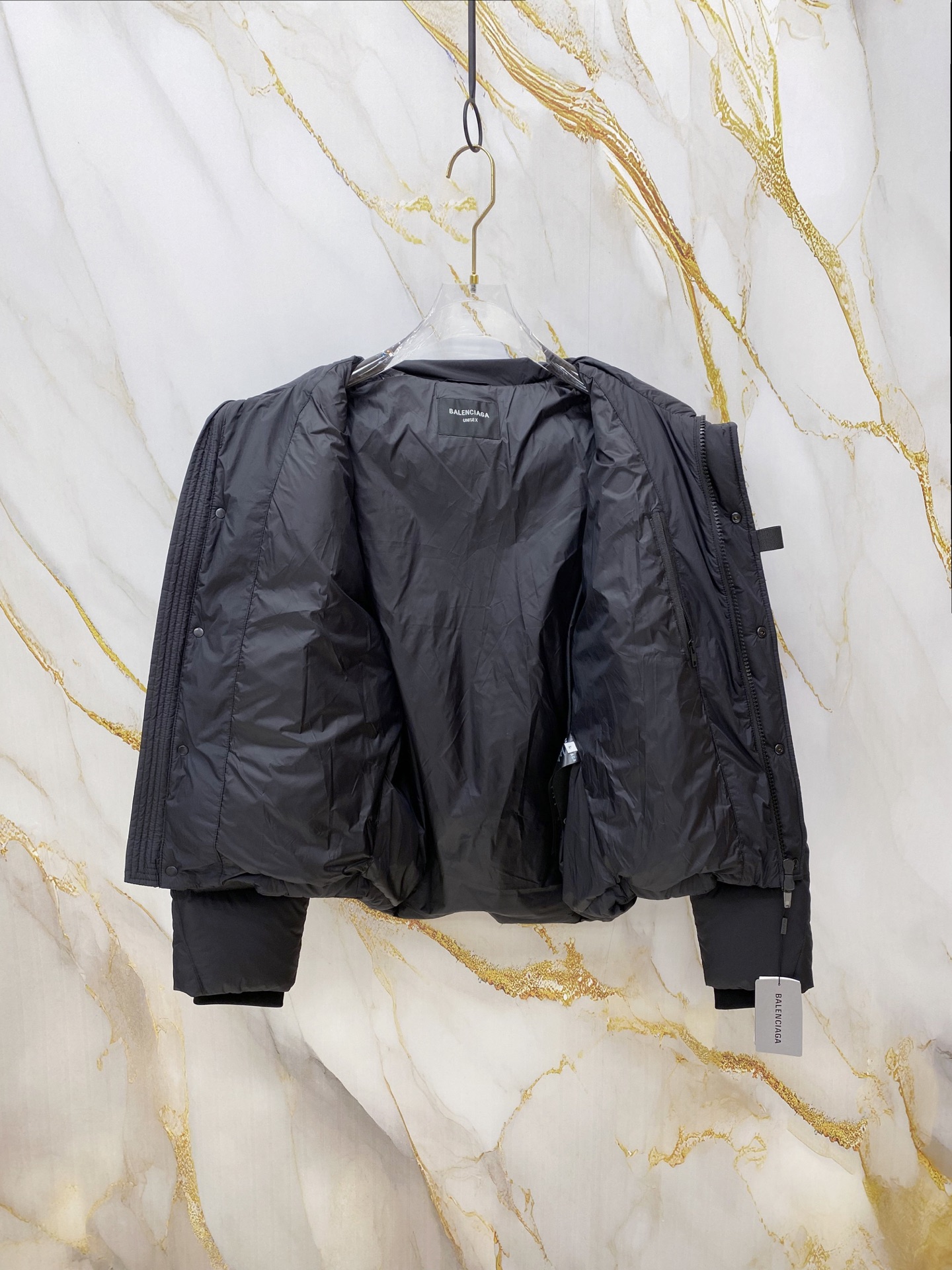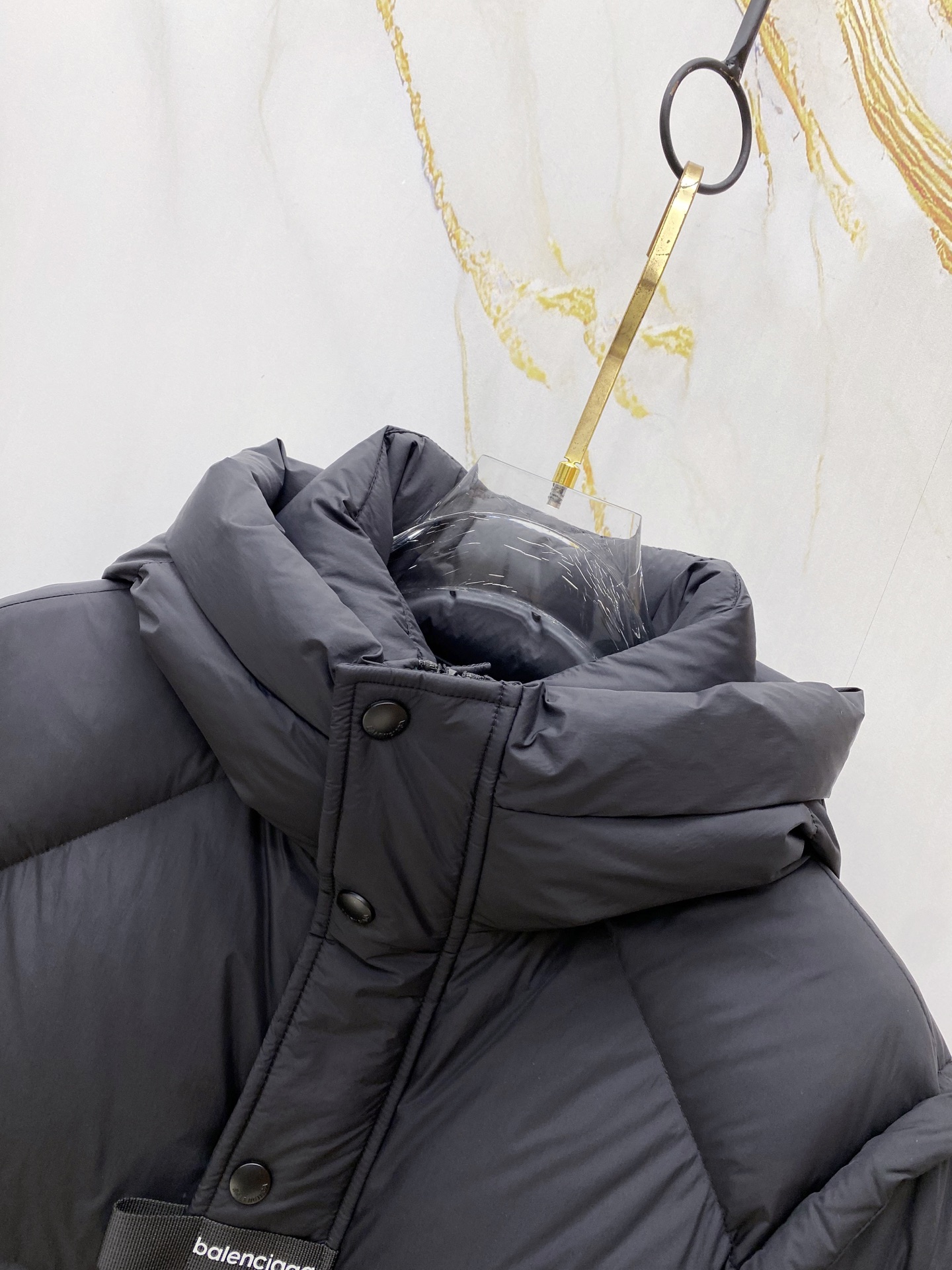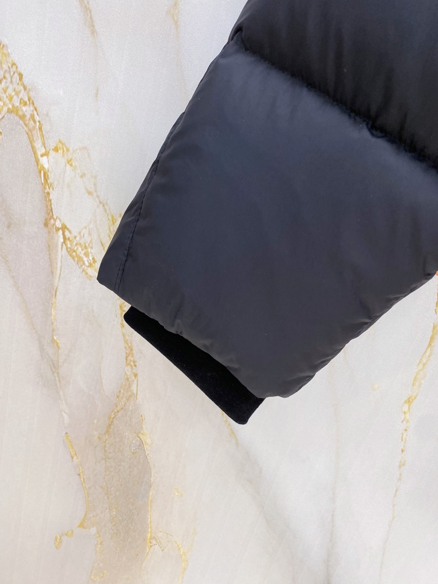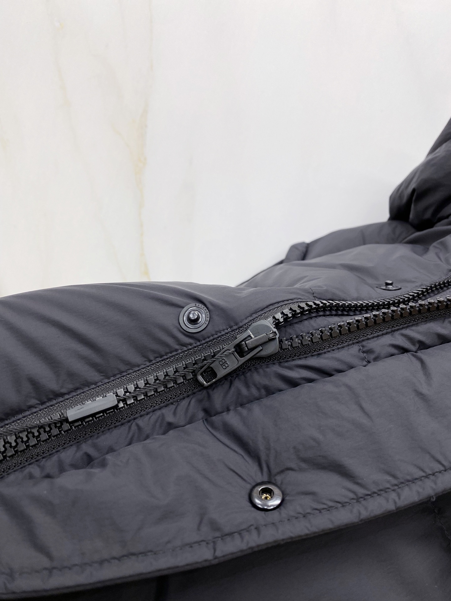 Details: Matte hooded down jacket made of high-density fabric. It is wind-resistant and lightweight, with a quilted design, a brand logo, and hidden zip pockets. It has a relaxed fit.