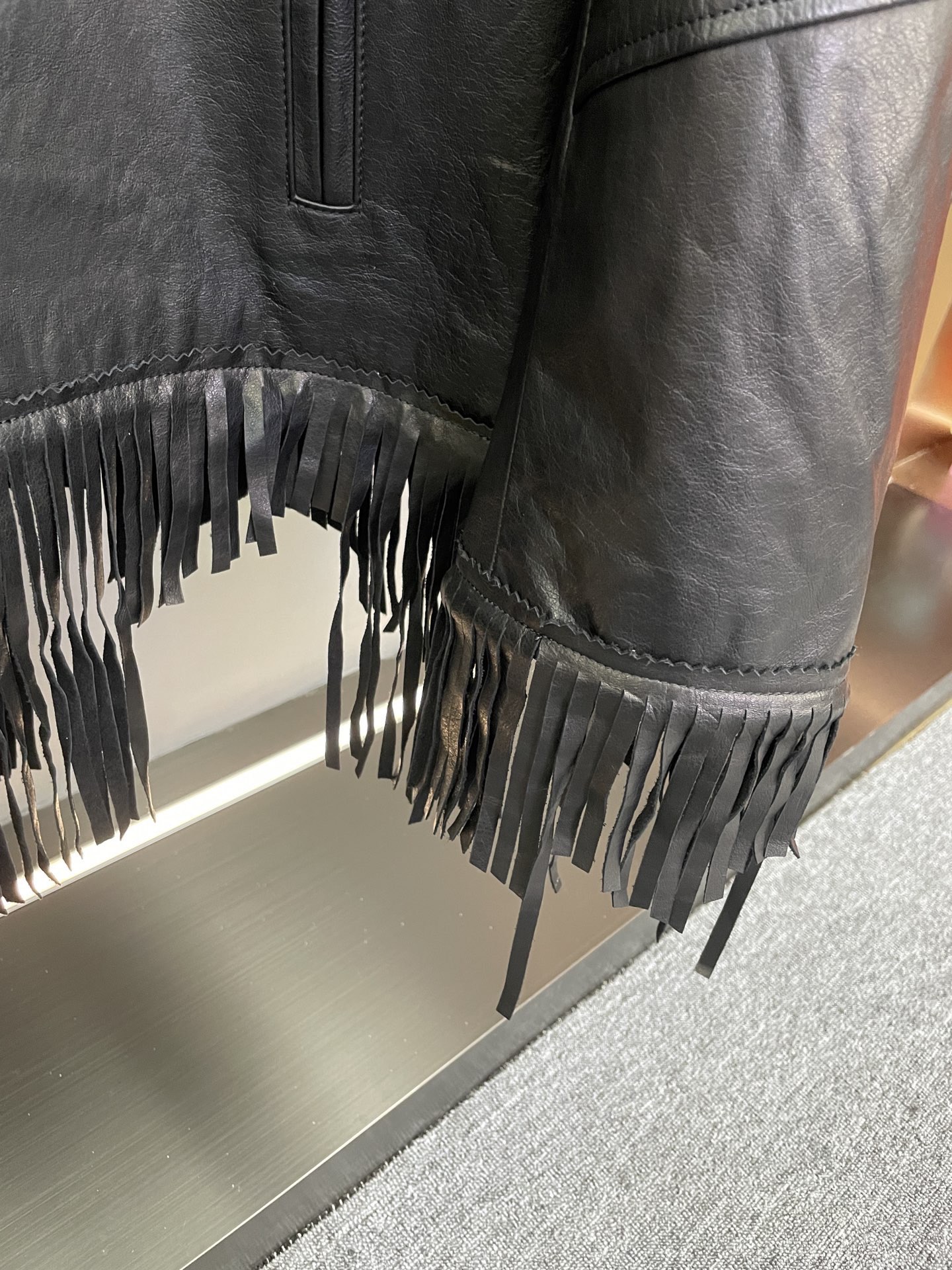 Details: Unisex sheepskin jacket with a silk-like texture and large fringe details, offering a versatile and luxurious look for various occasions