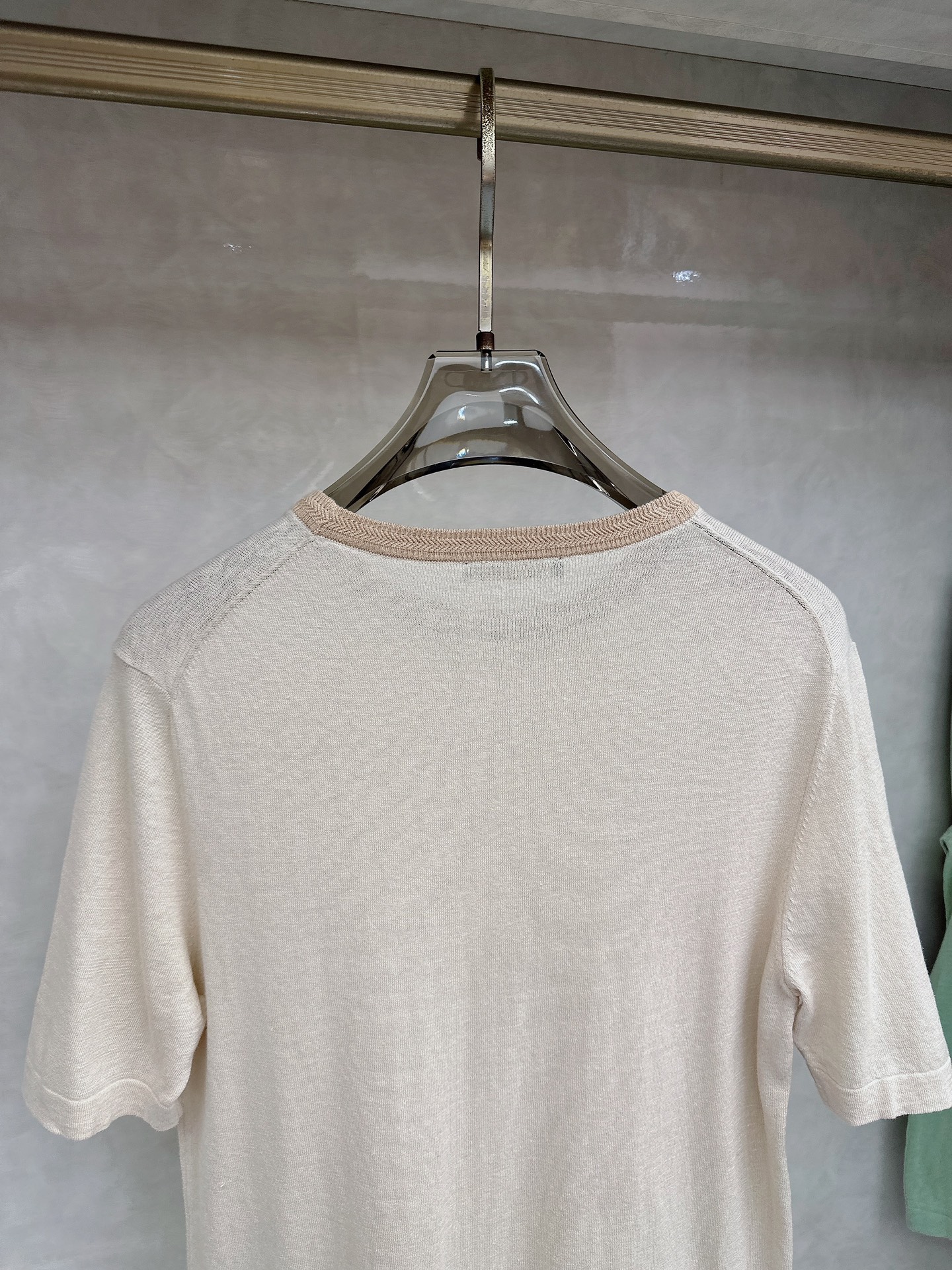 Details: New Round Neck Knit Short Sleeve Shirt - Imported Lightweight and Soft Fabric, Elegant Texture from Dyeing, Custom Ribbed Collar, Versatile and Comfortable for Casual and Business Wear