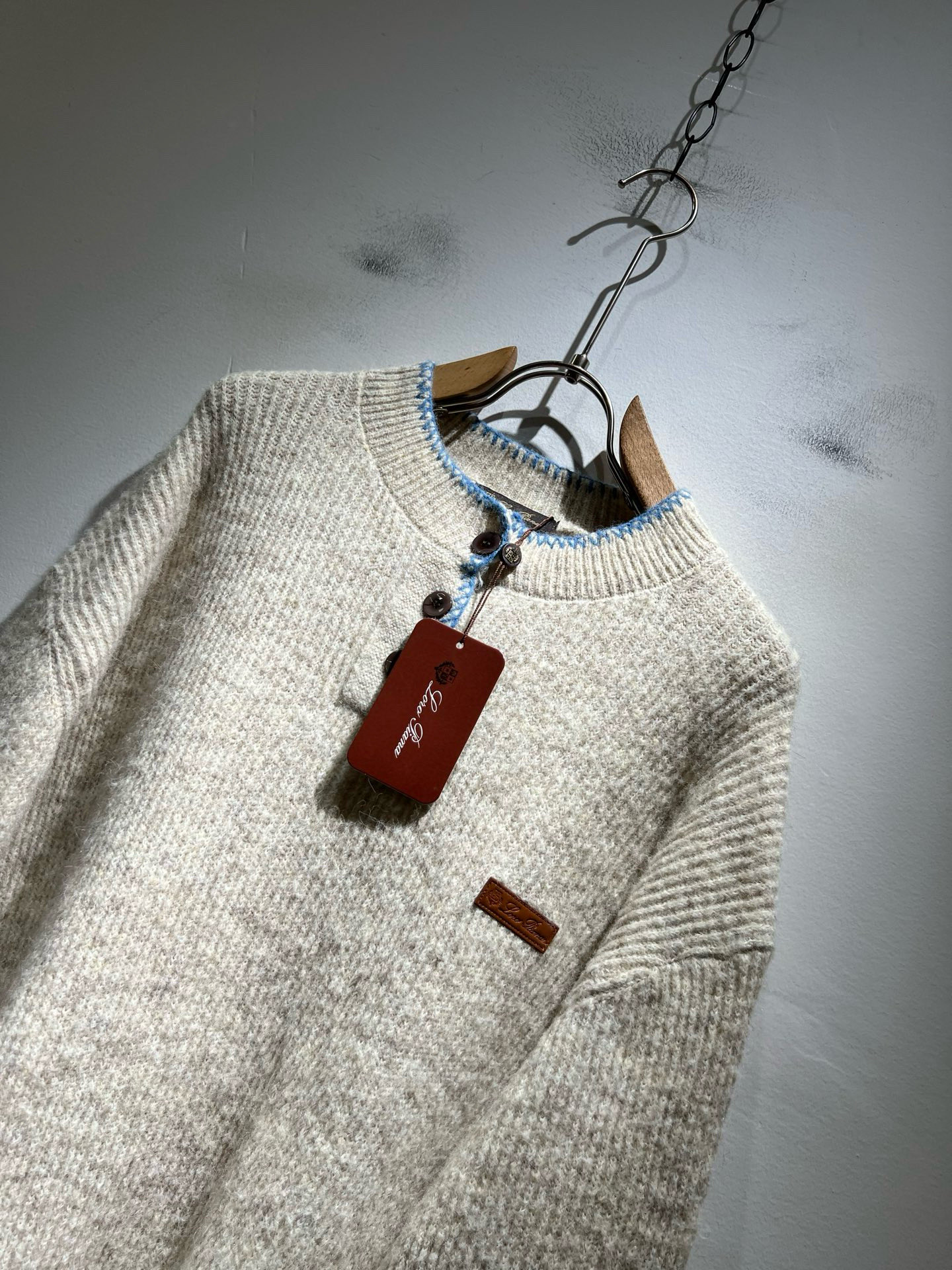 Details: A trade order knitted sweater with a chest logo badge, comfortable, breathable, and showcases a rich three-dimensional effect.