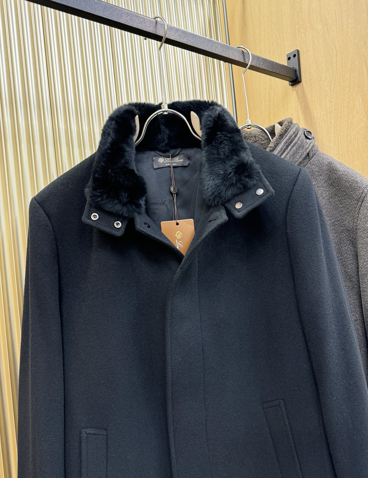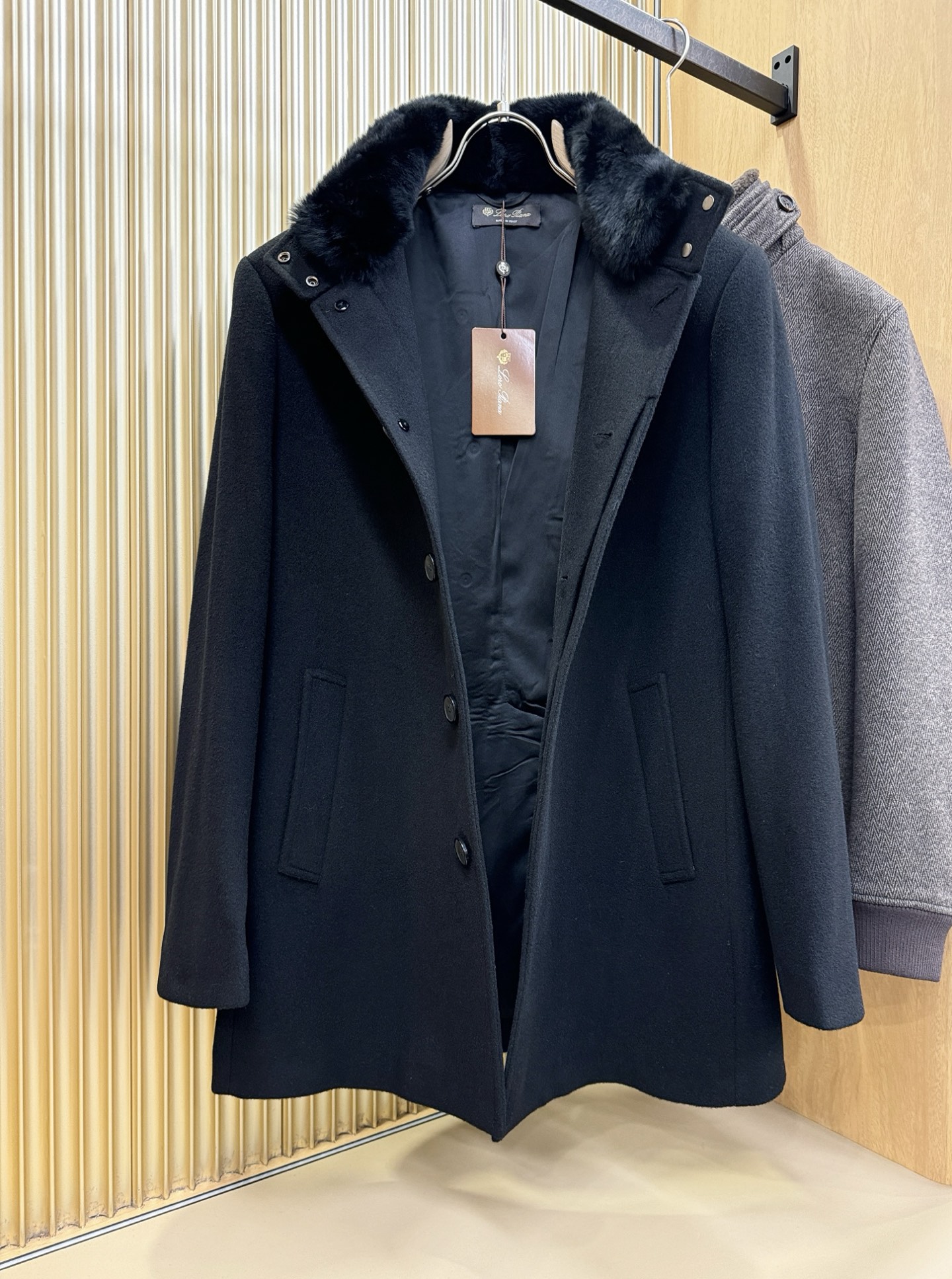 Details: 22839 - Elegant Cashmere Coat with Rabbit Fur Collar, Comfortable Wear