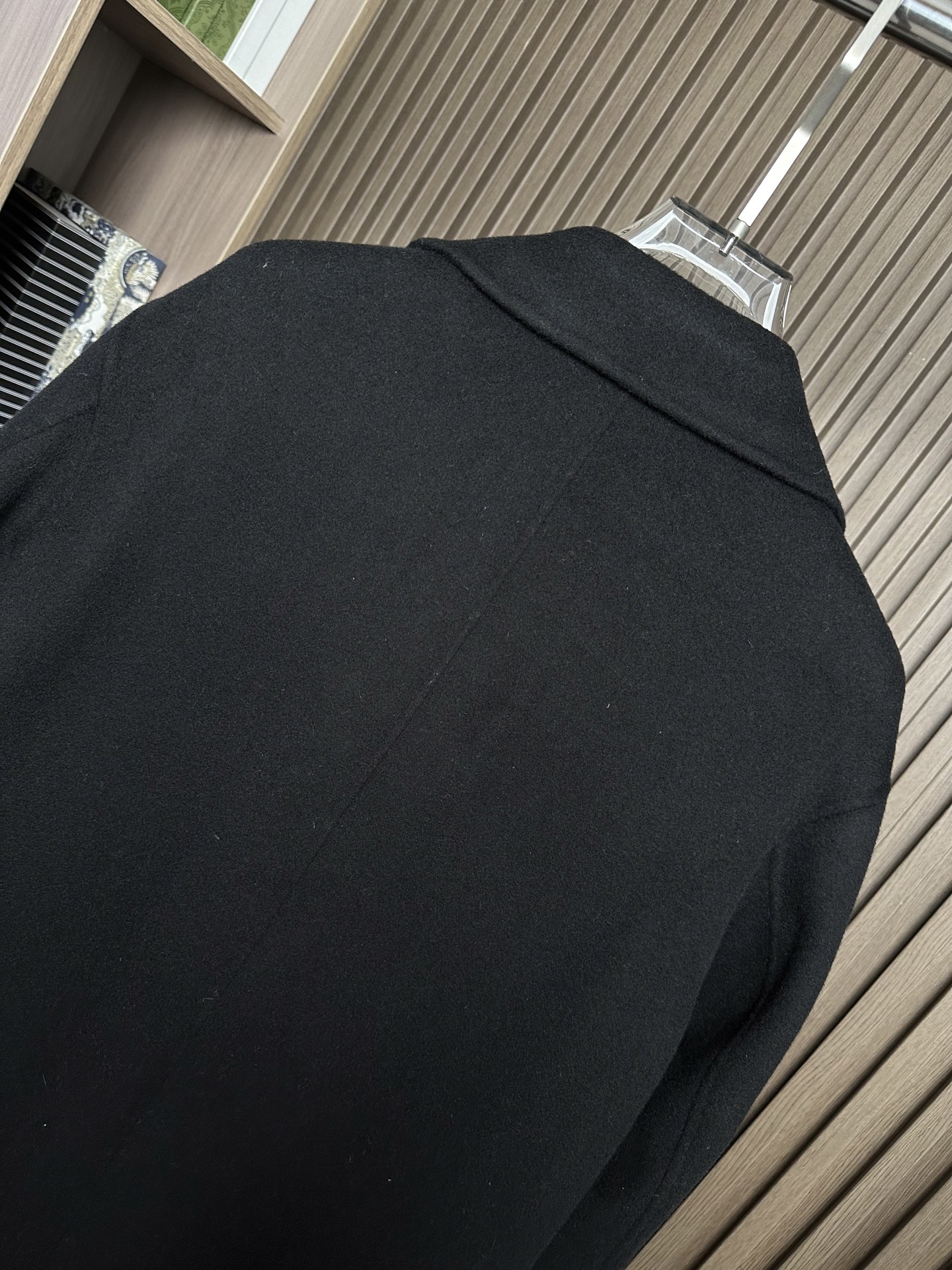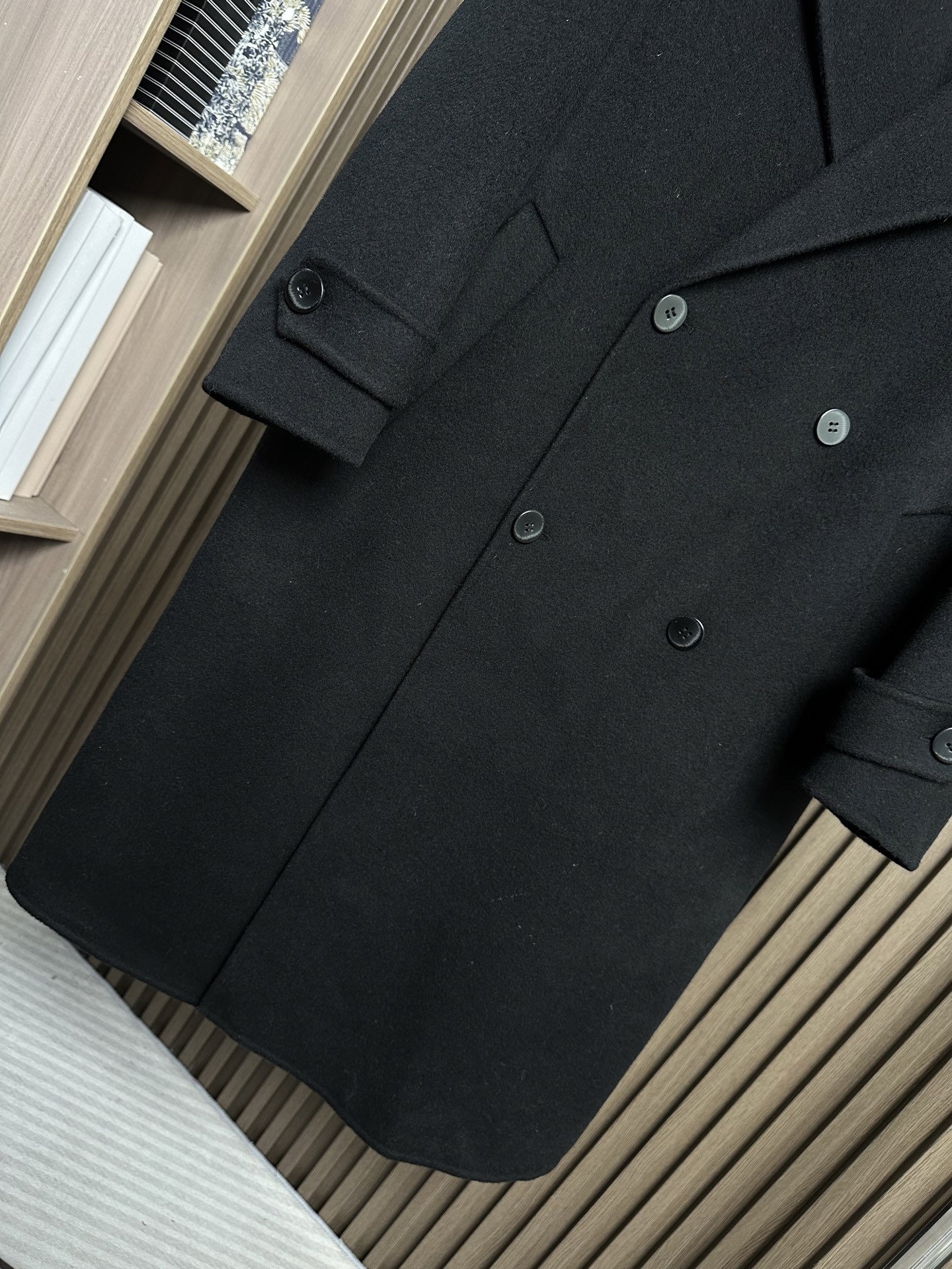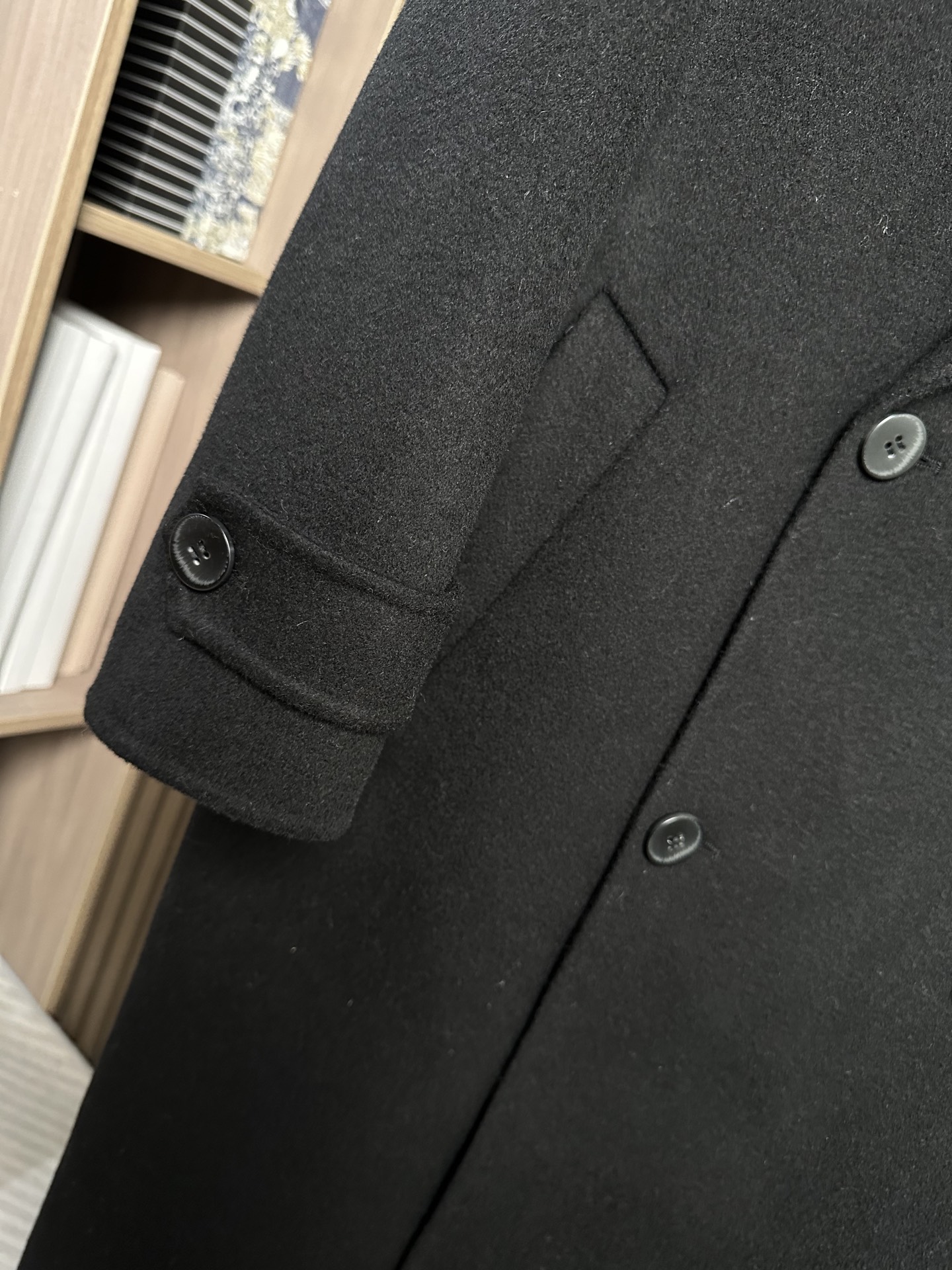 Details: Classic herringbone wool - cashmere blend coat in black and grey tones