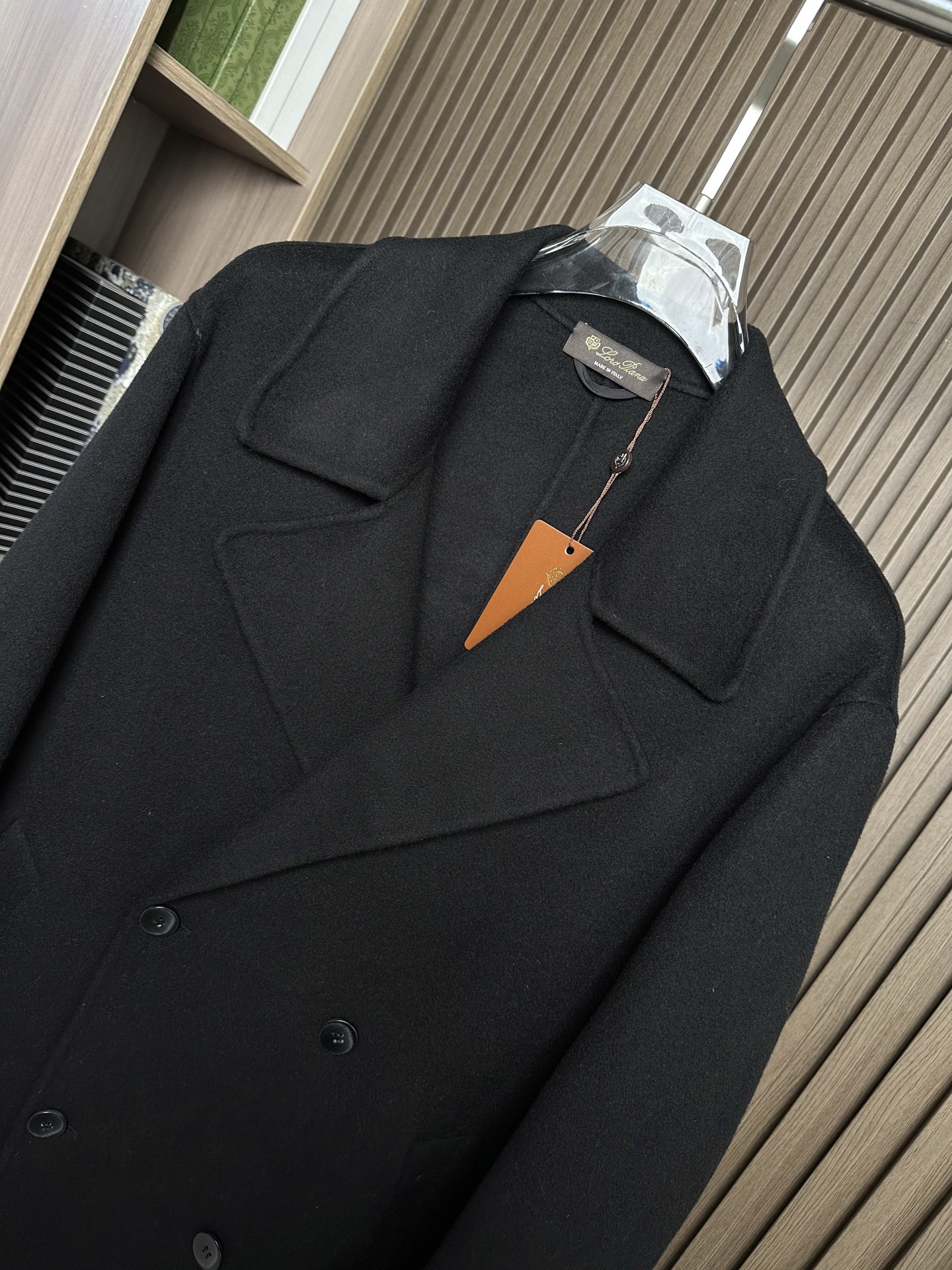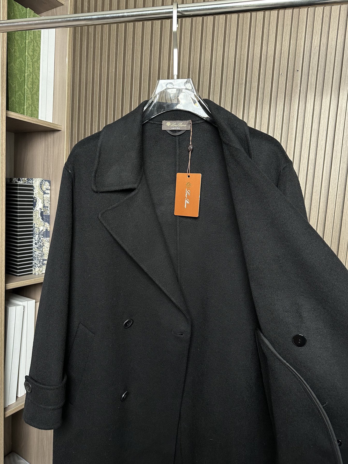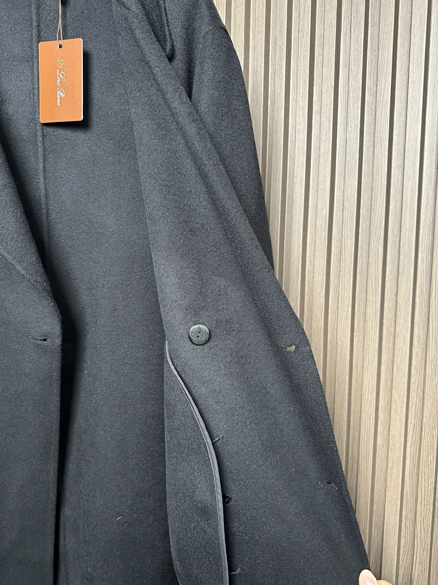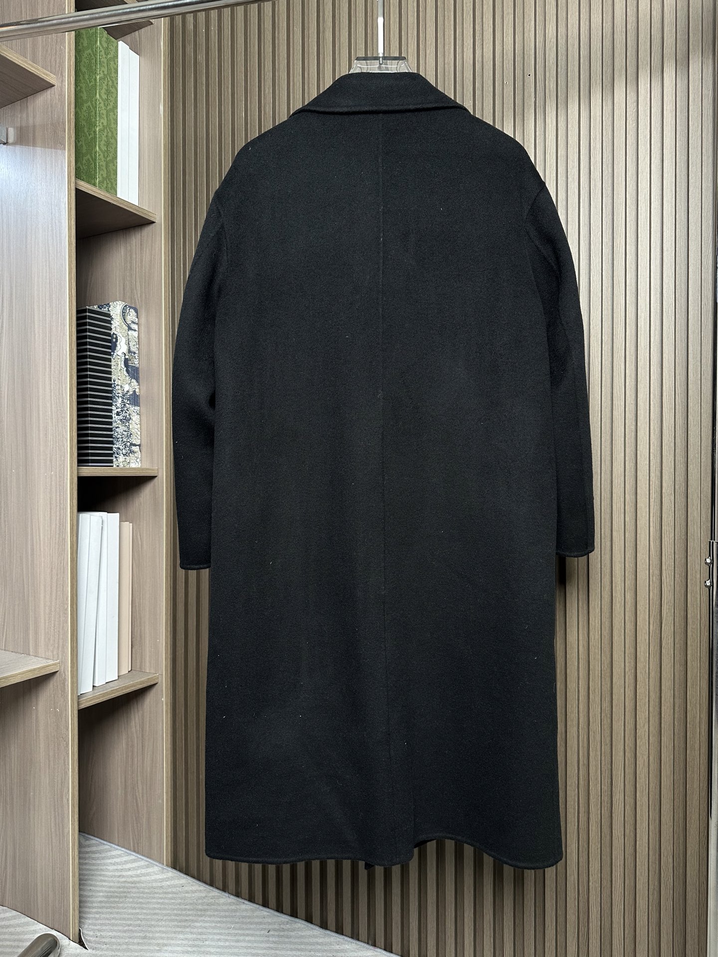 Details: Classic herringbone wool - cashmere blend coat in black and grey tones