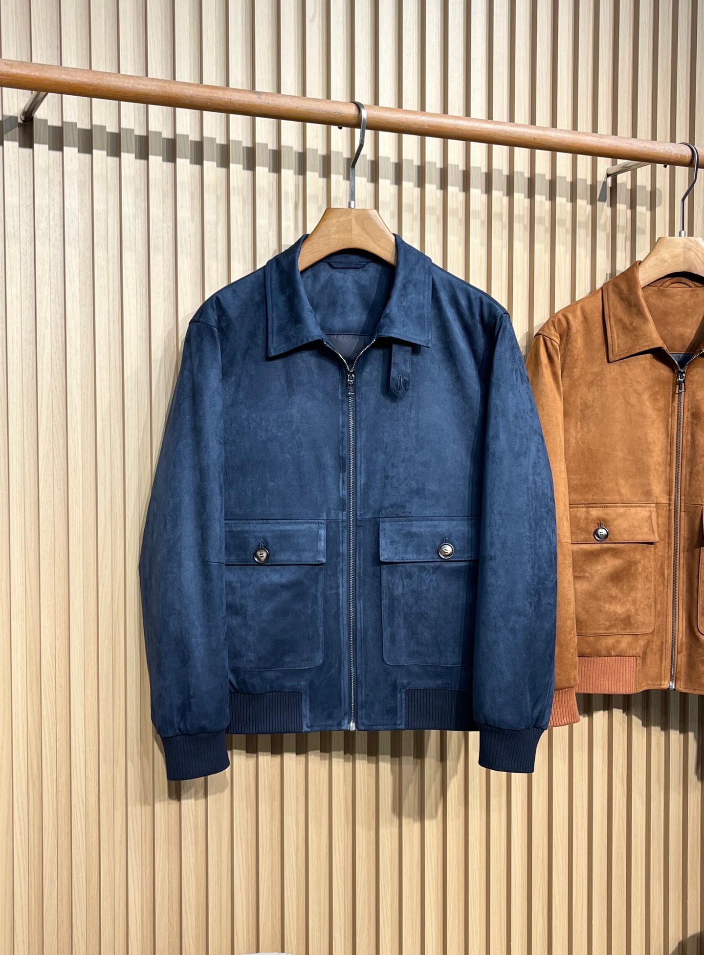 Details: Classic Suede Aviator Jacket Filled with 90% White Duck Down: Two Color Options