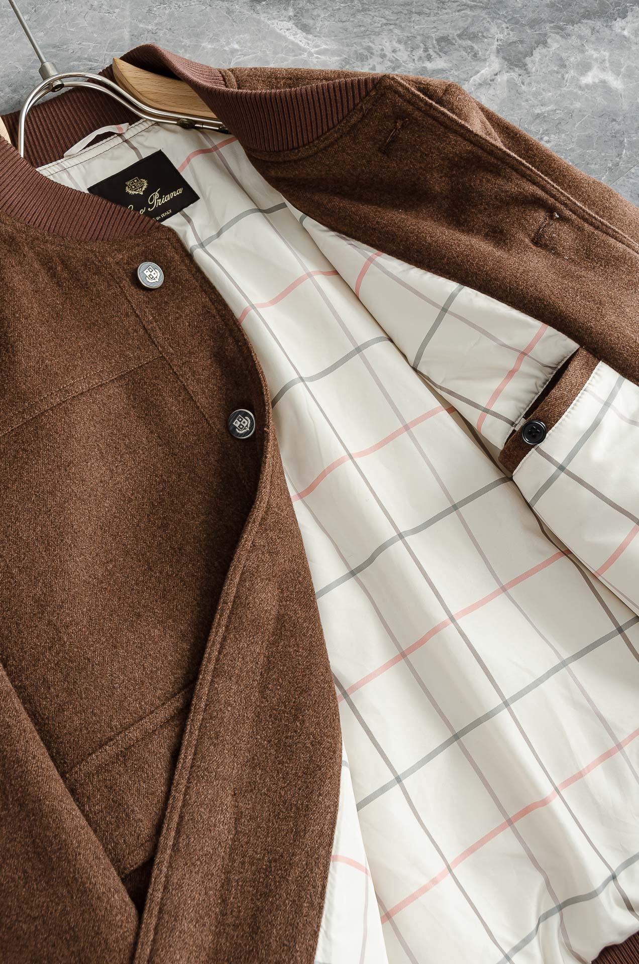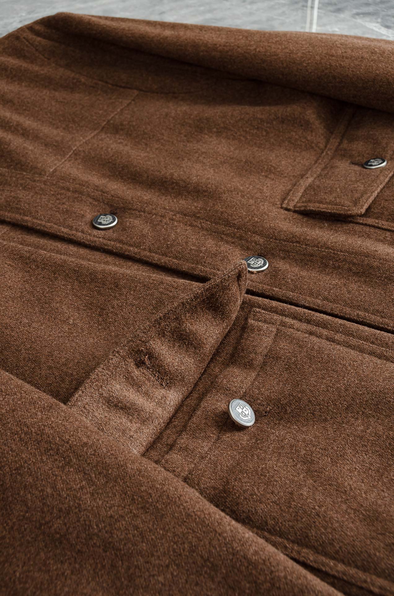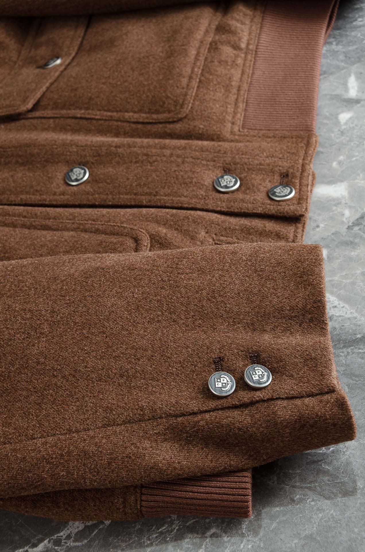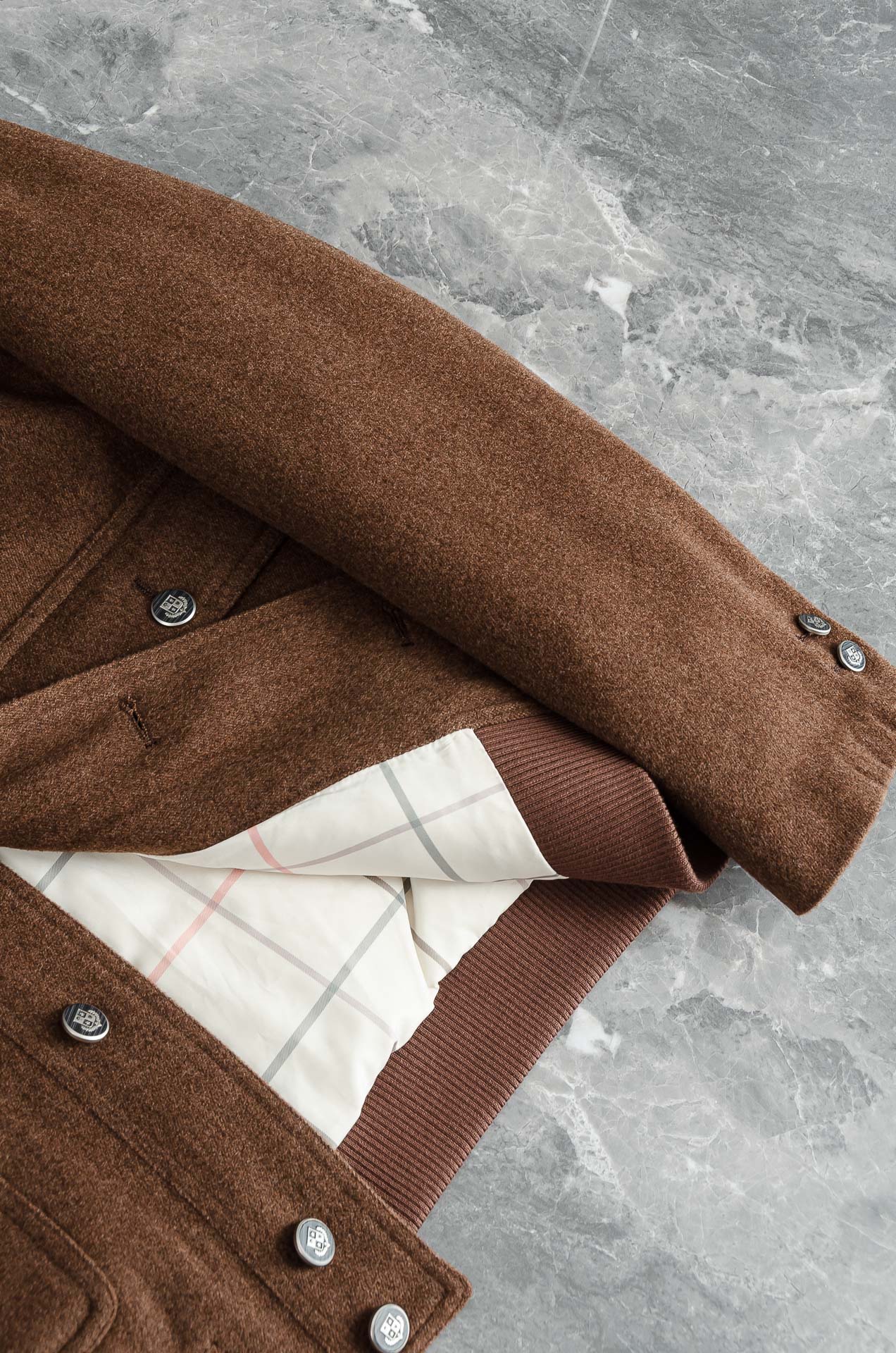 Details: Classic wool - blended down jacket with elegant design and comfortable lining.