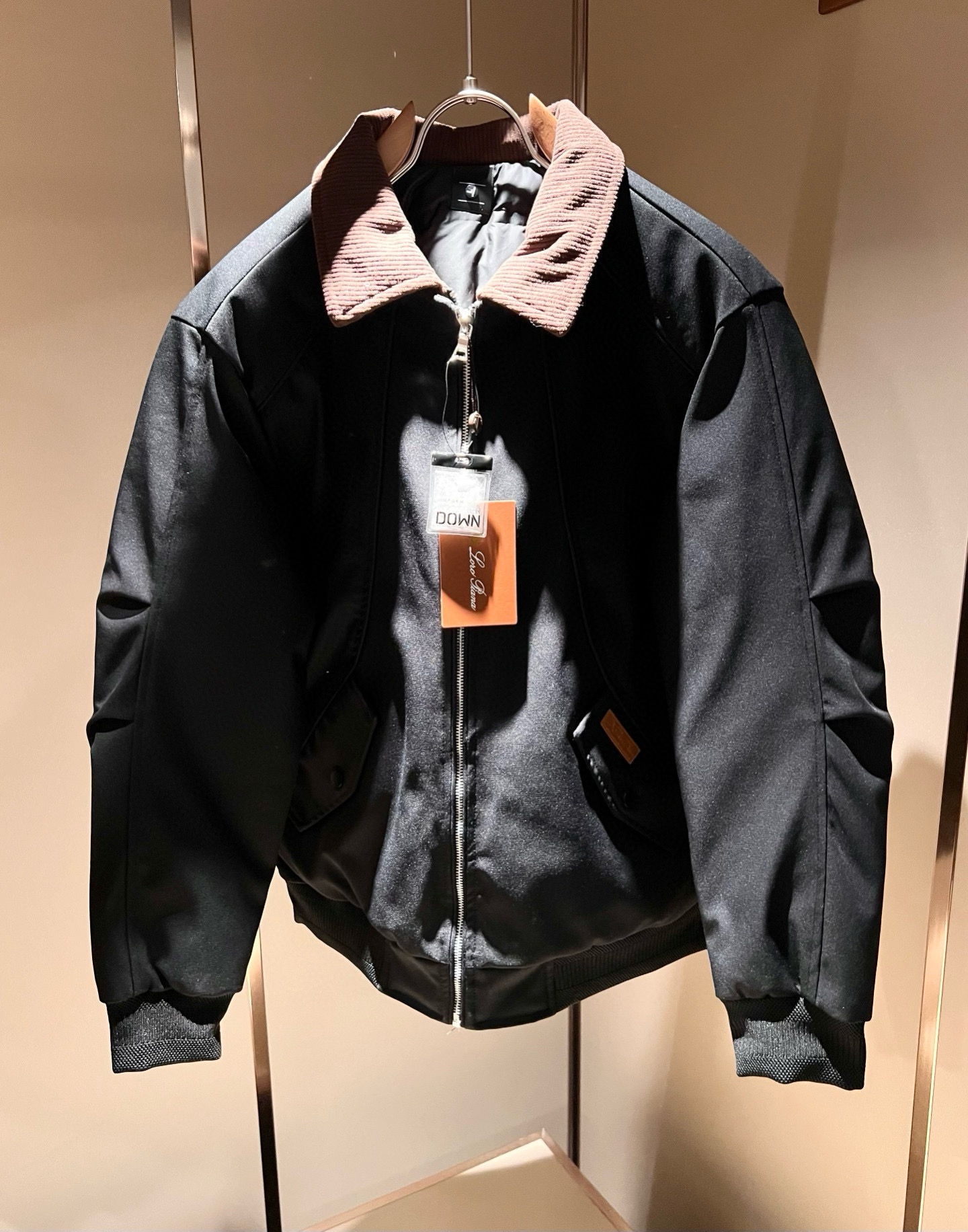 Details: Unisex down jacket filled with 95% white duck down, having a unique pattern