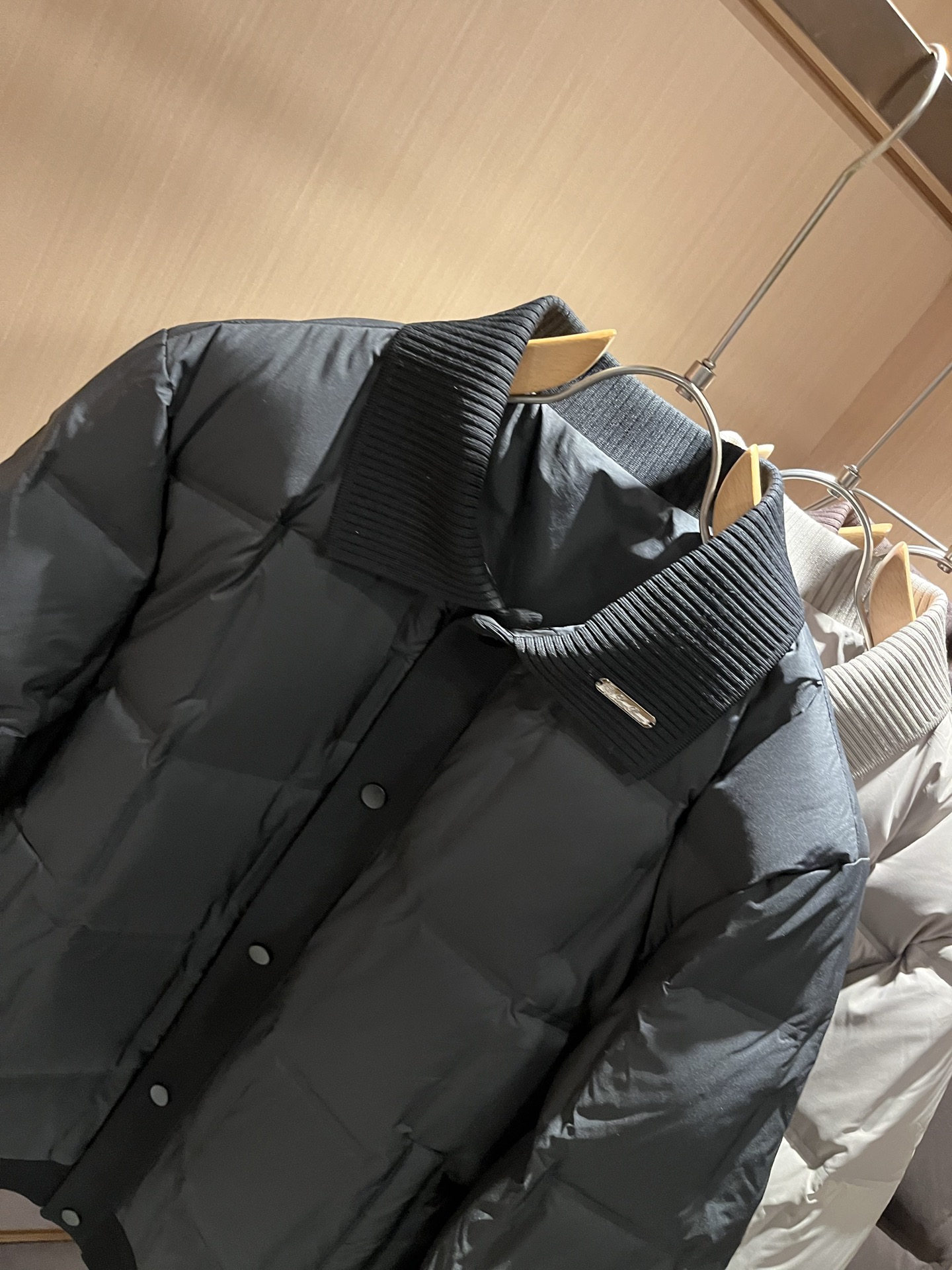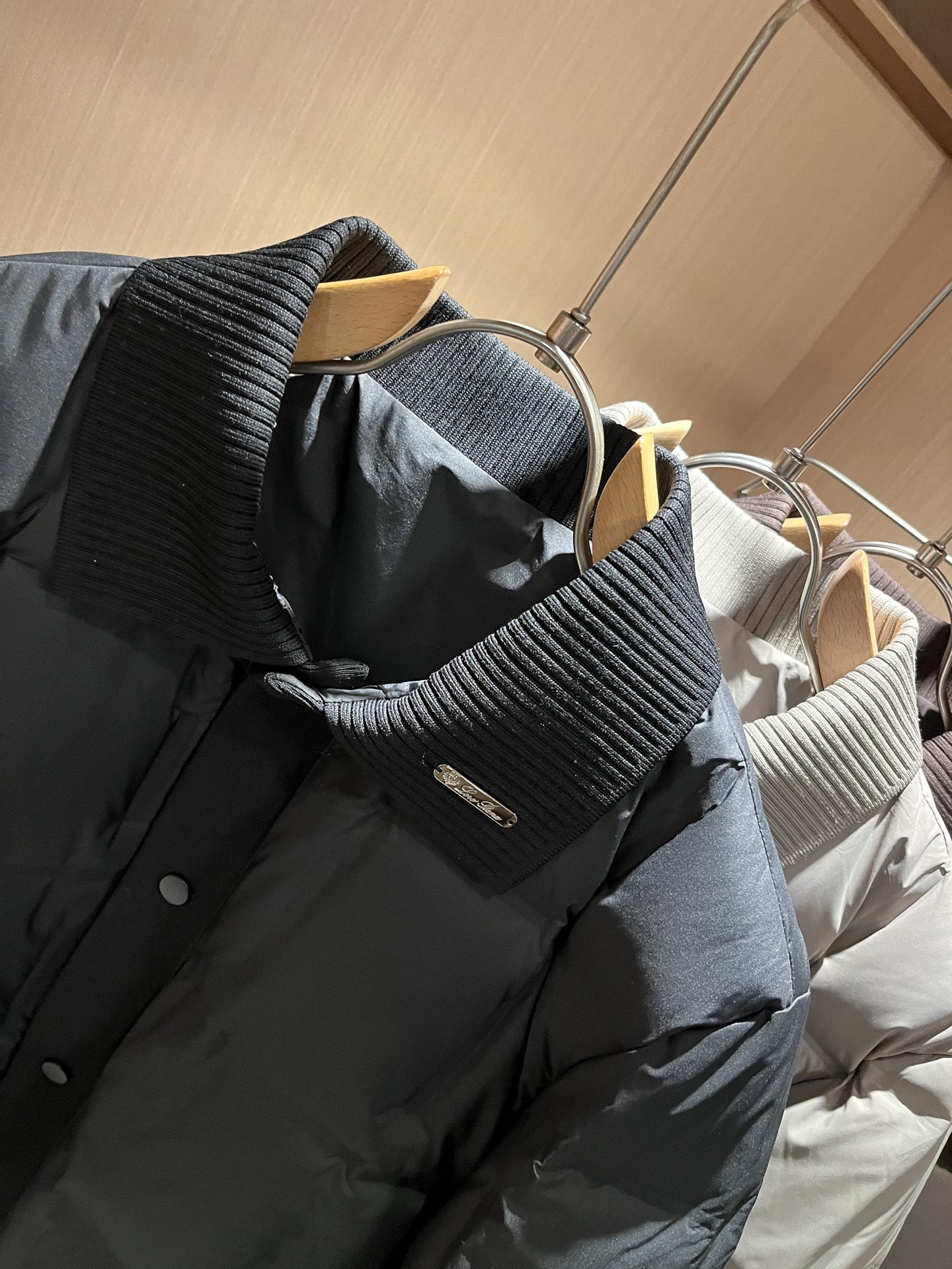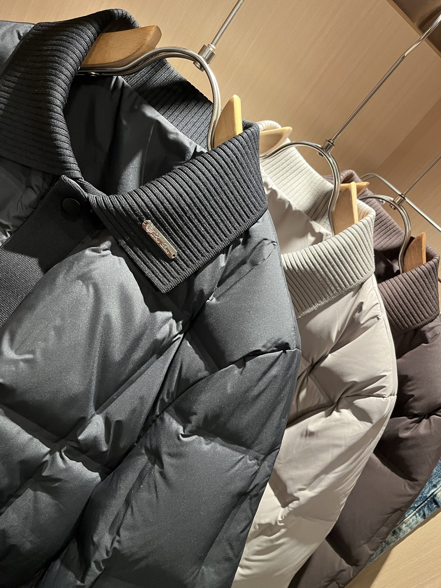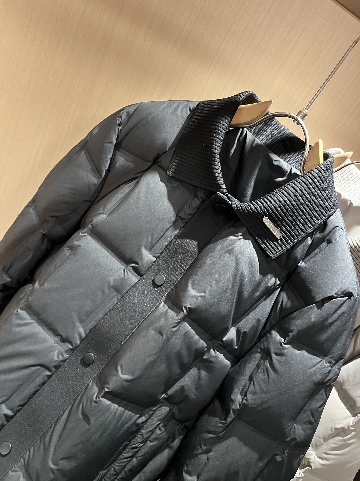 Details: Unisex down jacket with metal logo, filled with imported 95% white duck down
