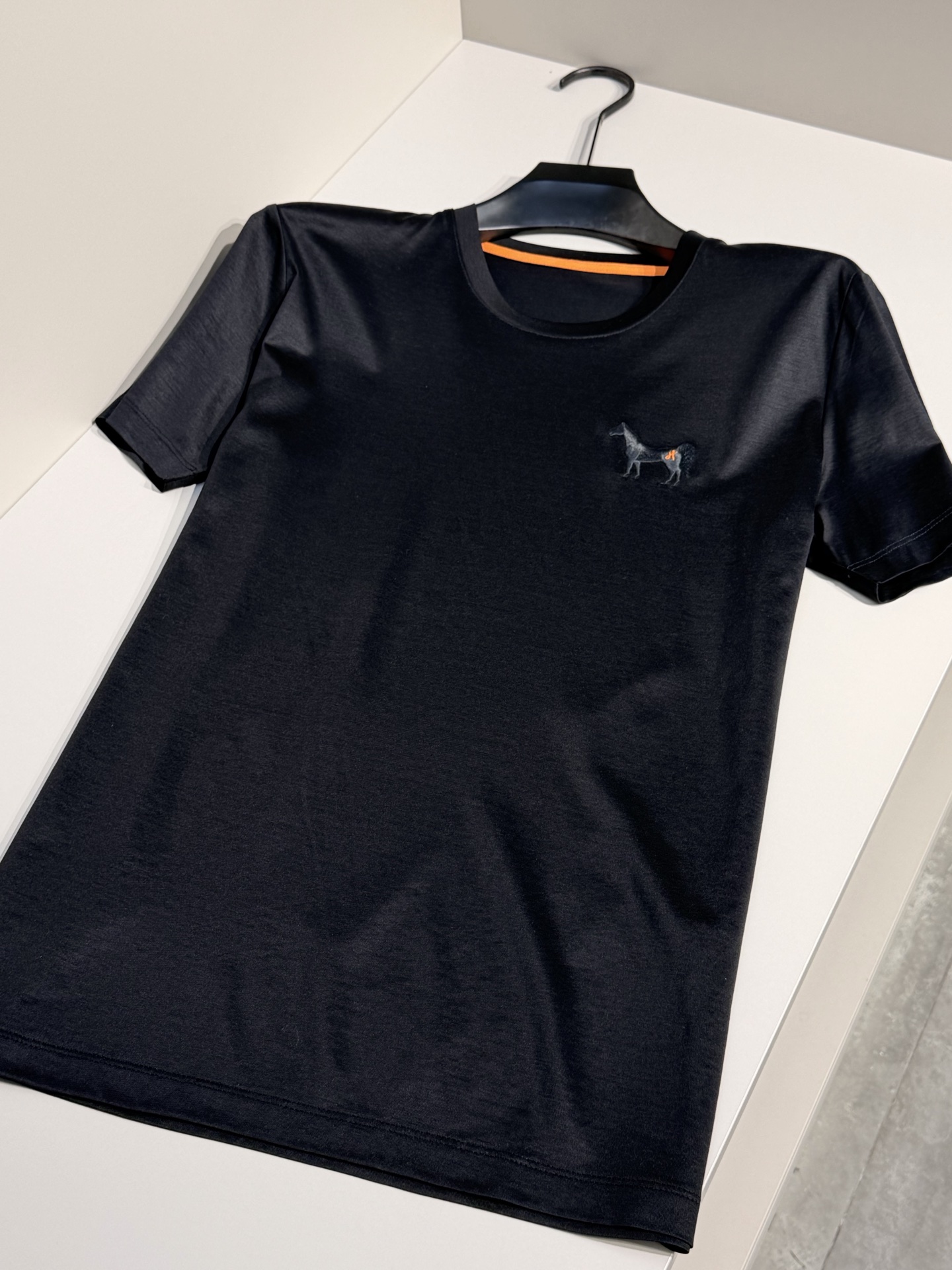 Details: Classic crew - neck T - shirt with 3D horse embroidery, crafted from premium fabric