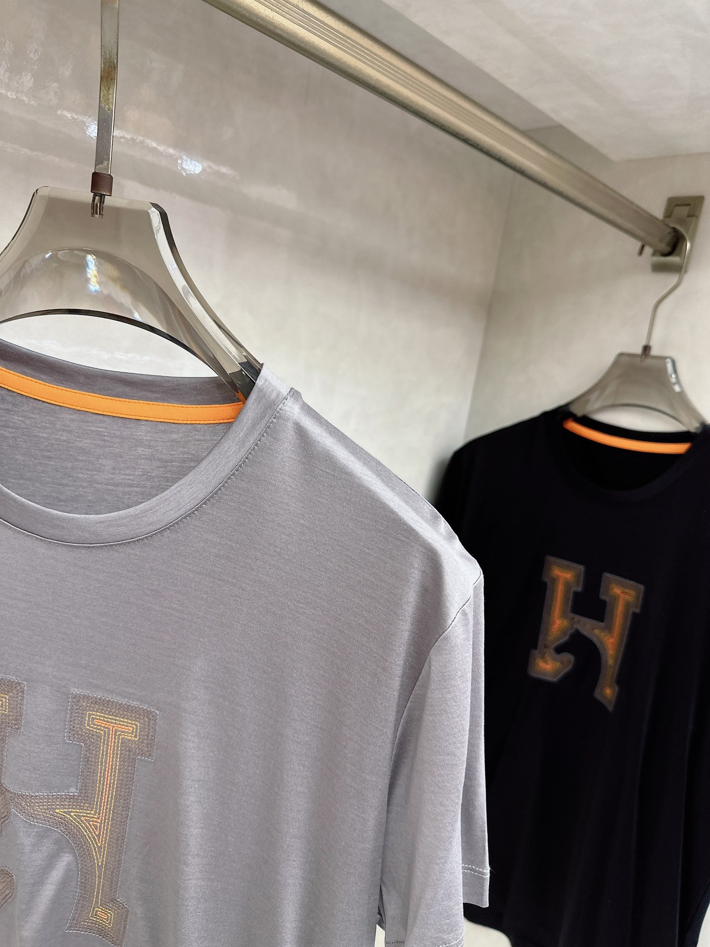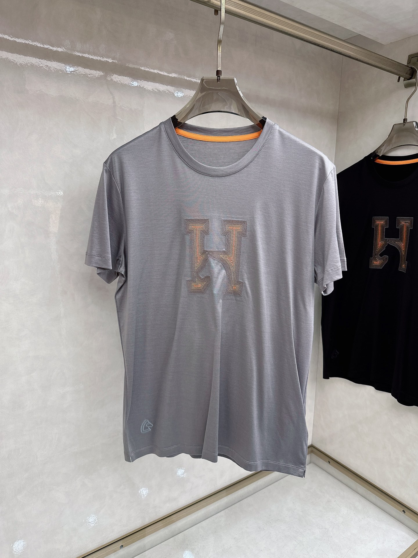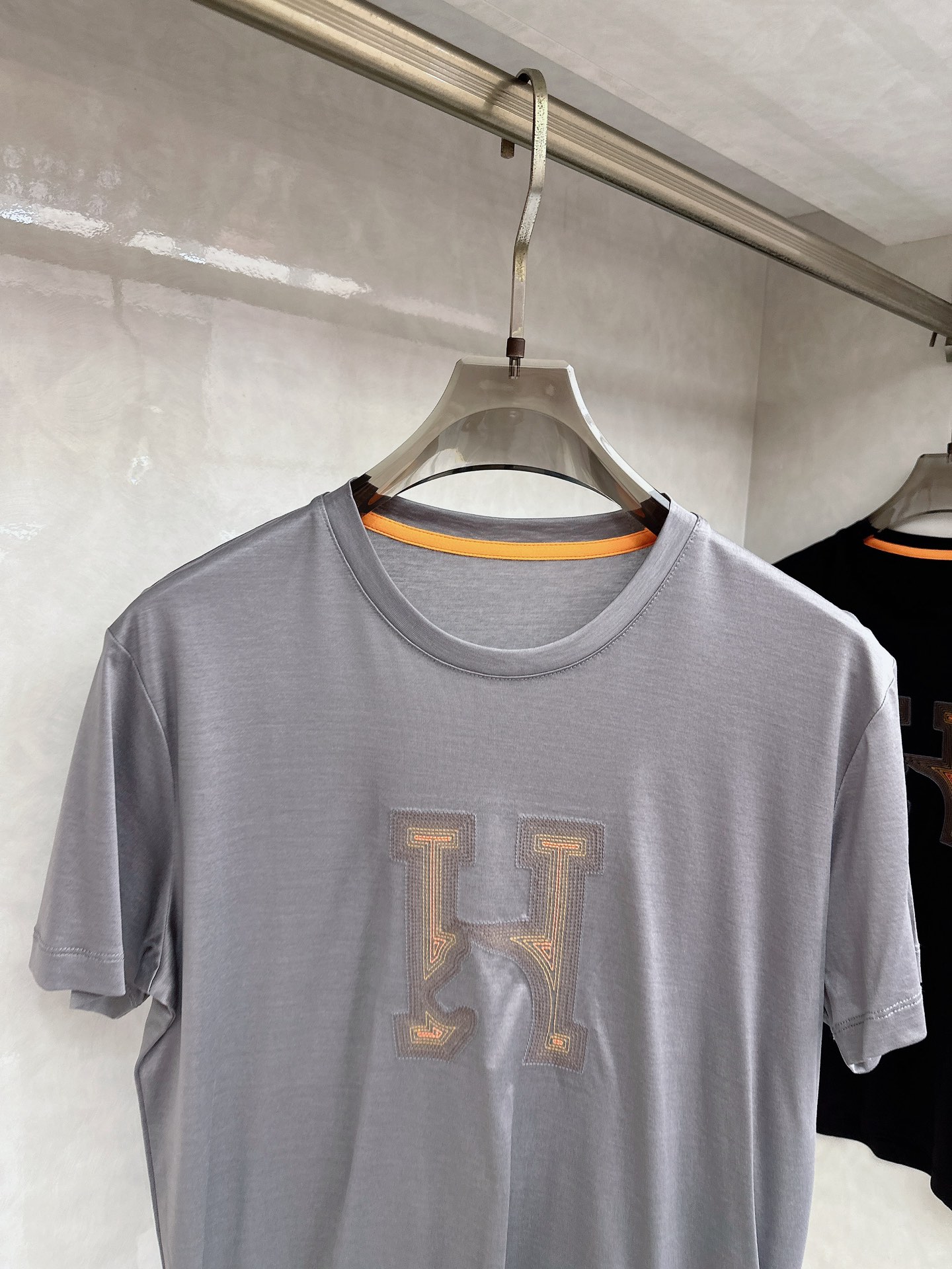 Details: Horsehead embroidery T-shirt with 3D embroidery and an orange accent. It is comfortable.