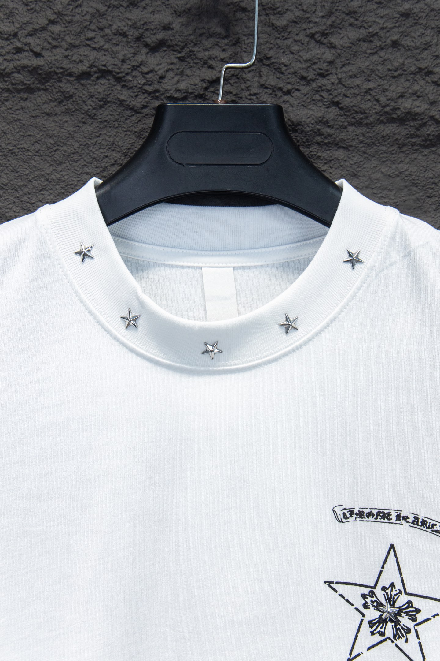 Details: Custom-Dyed Fabric T-Shirt with Graffiti Print and Hand-Nailed Hardware: Unique Appearance