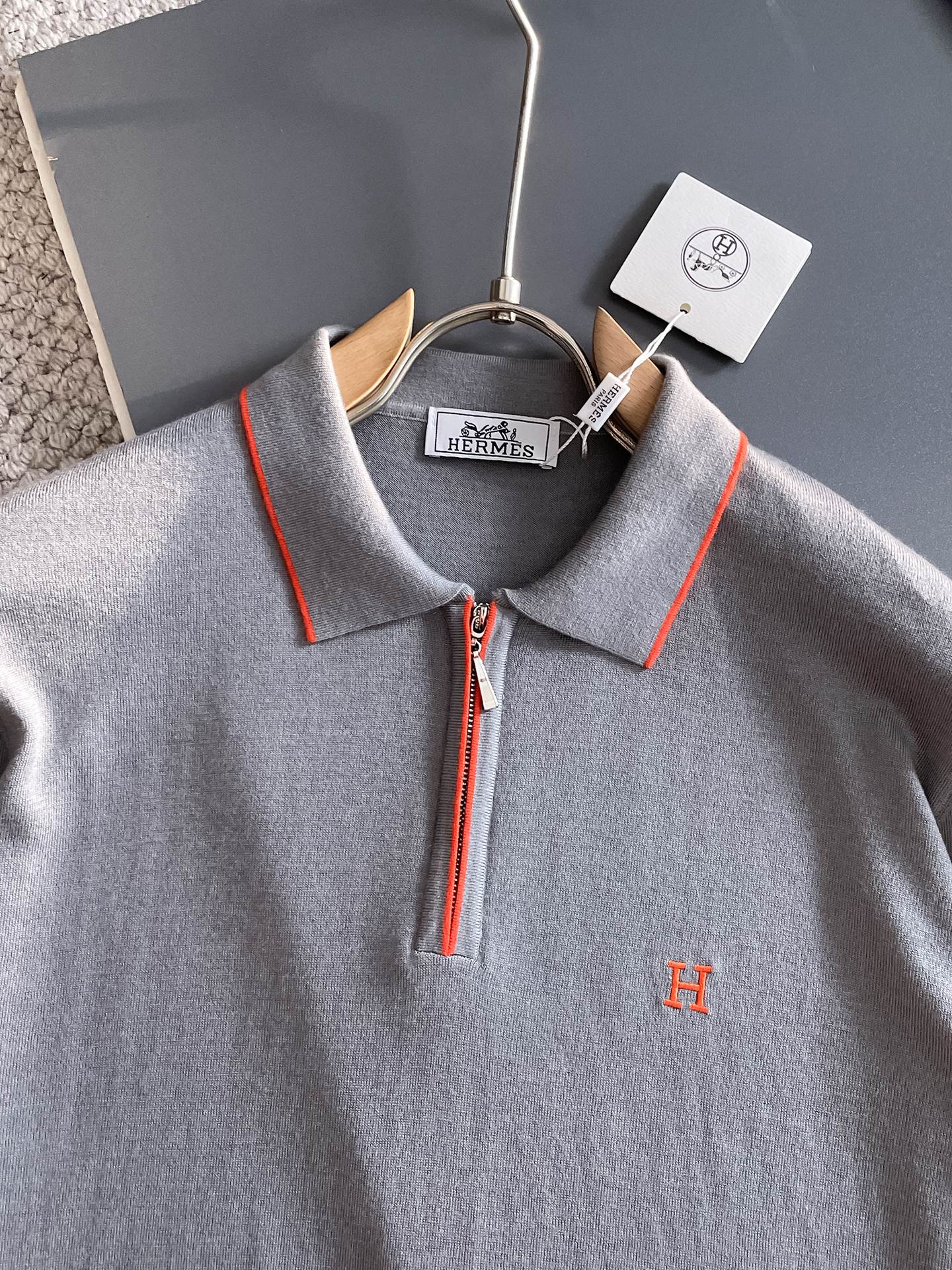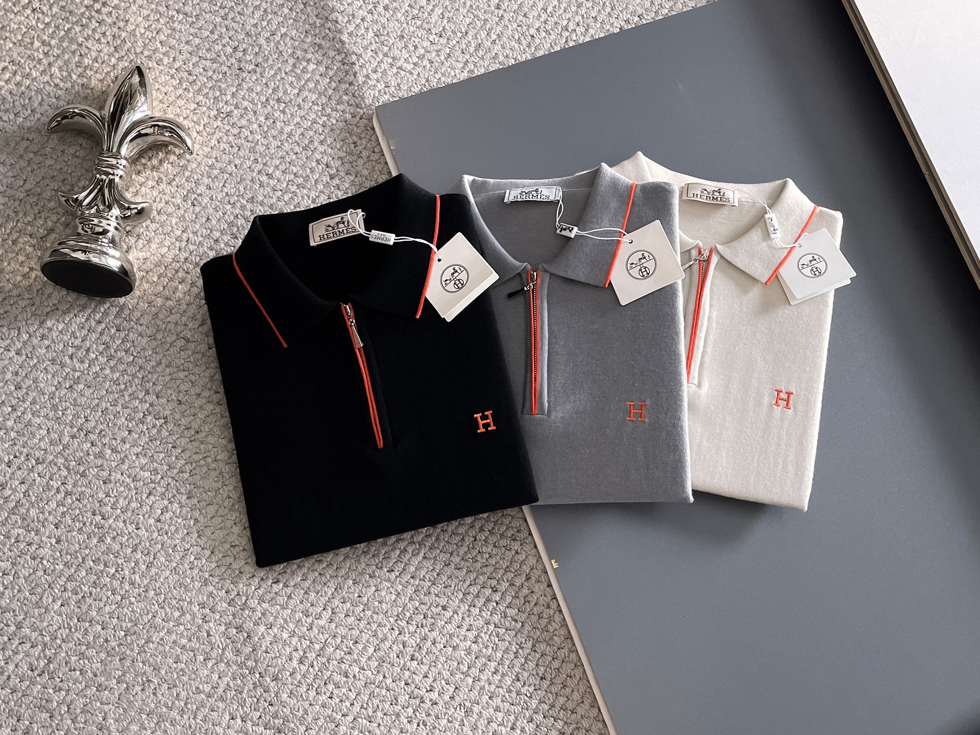 Details: Classic collar knitted polo sweater series made of imported fabric, with elegant texture, custom ribbed collar, being versatile and comfortable.