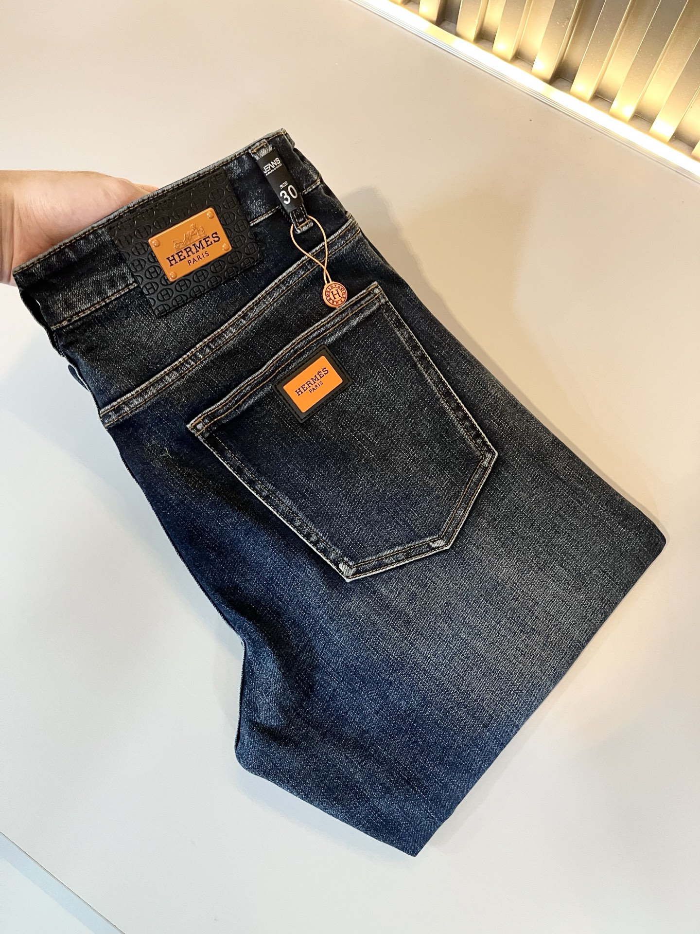 Details: Premium denim with unique wash, classic logo, and well - tailored