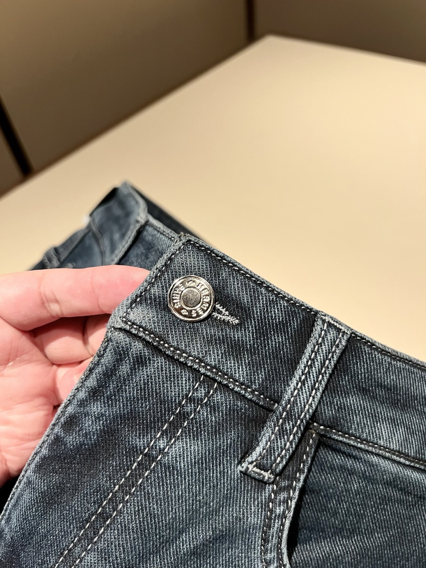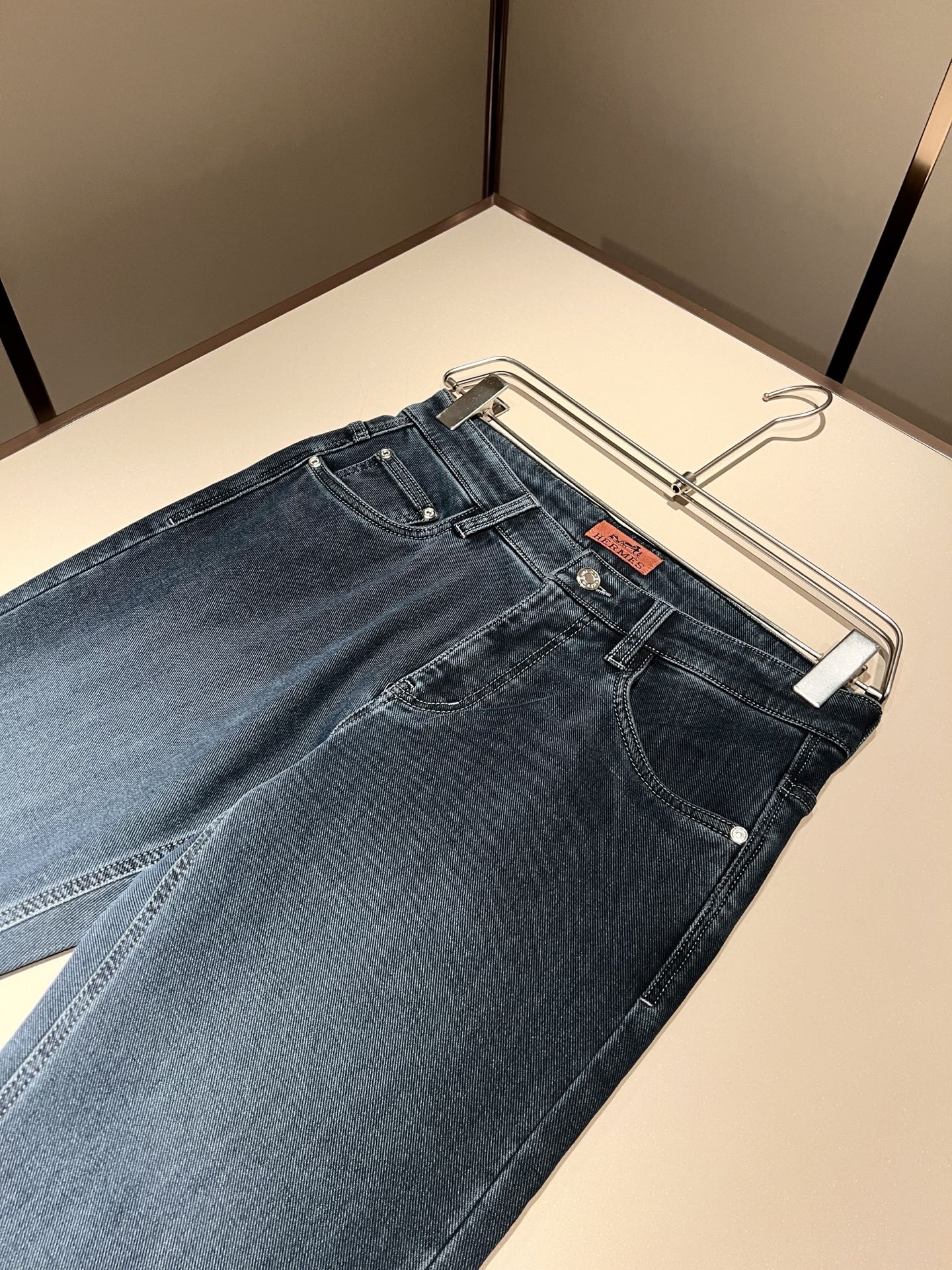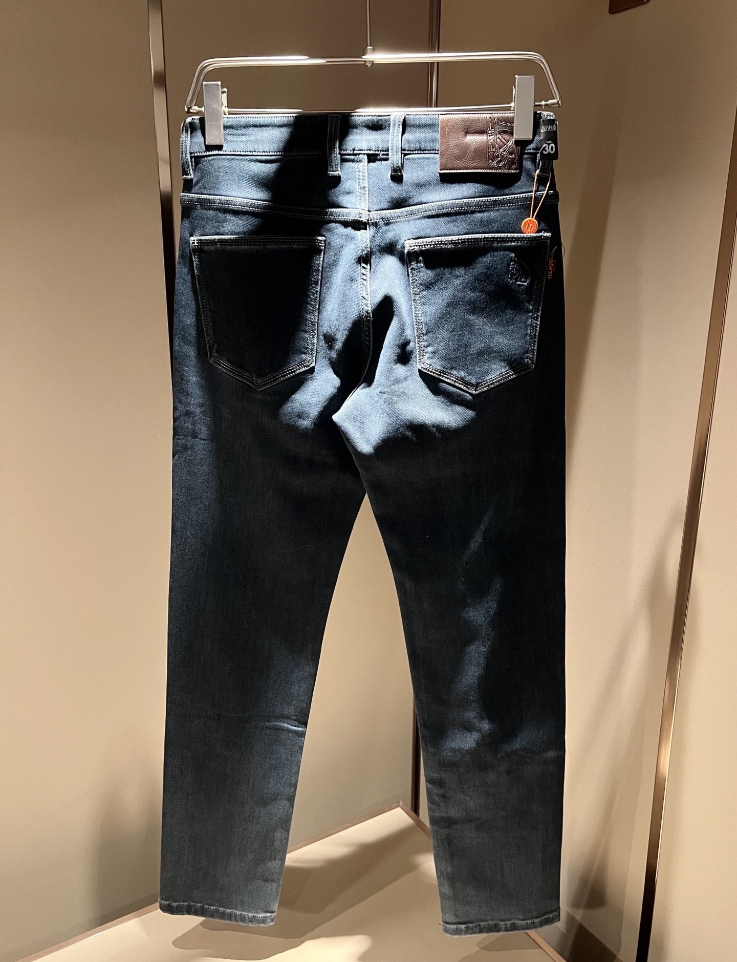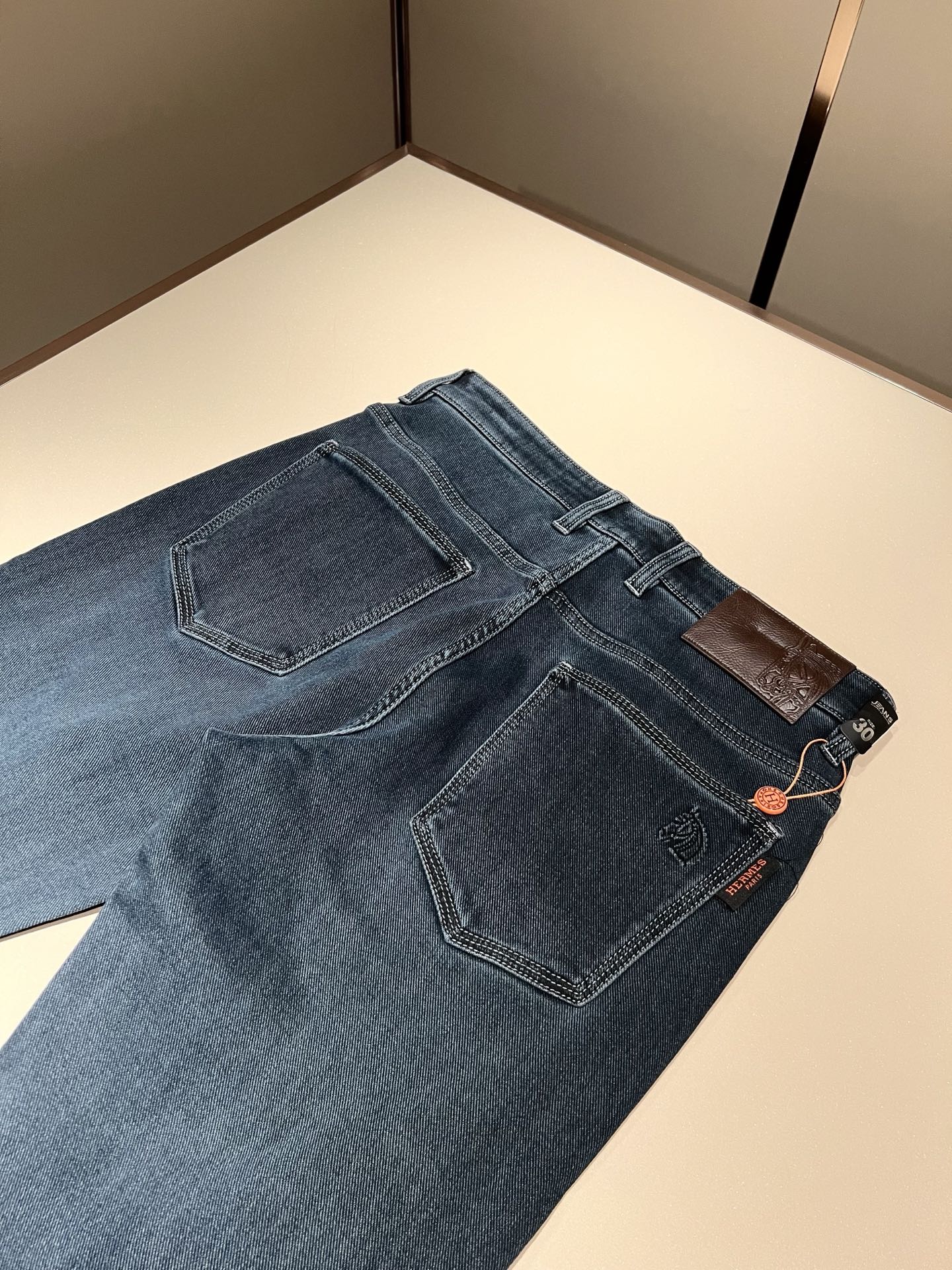 Details: Denim jeans with a logo waist tag, eco-friendly wash, and versatile color