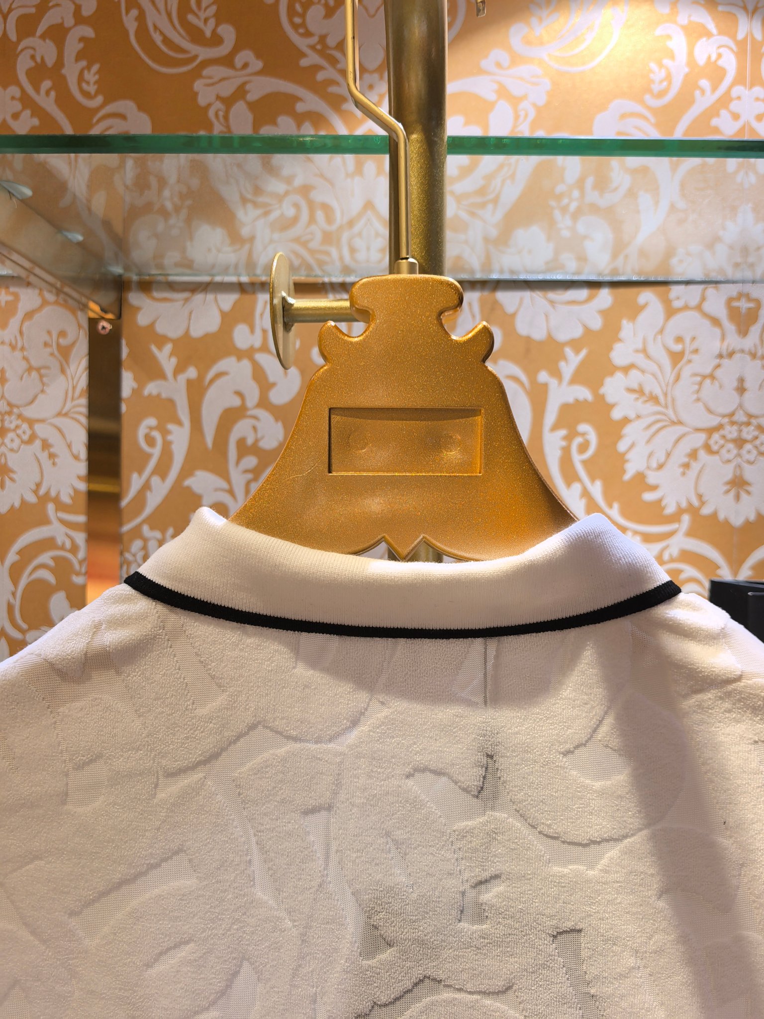 Details: Knitted polo shirt with letter jacquard, breathable and in multiple colors