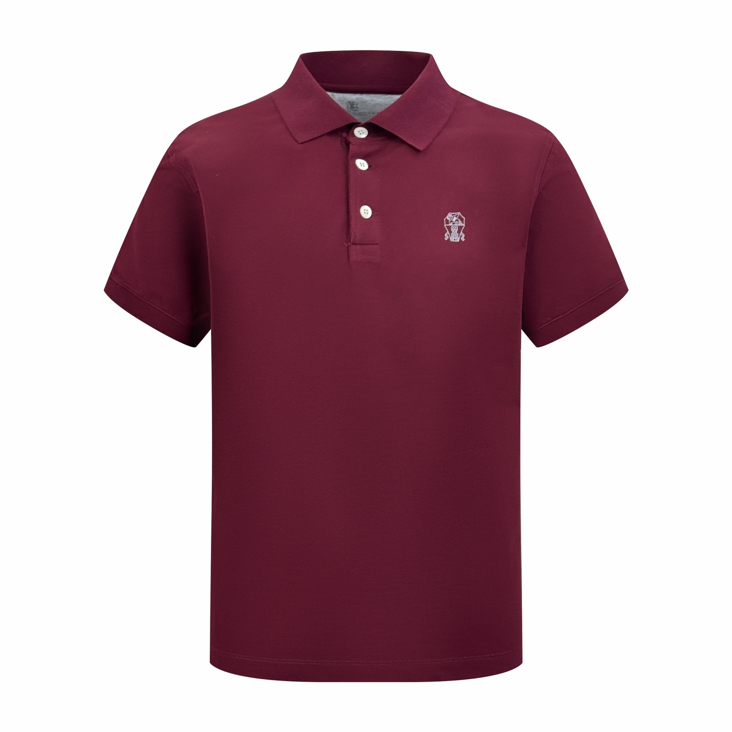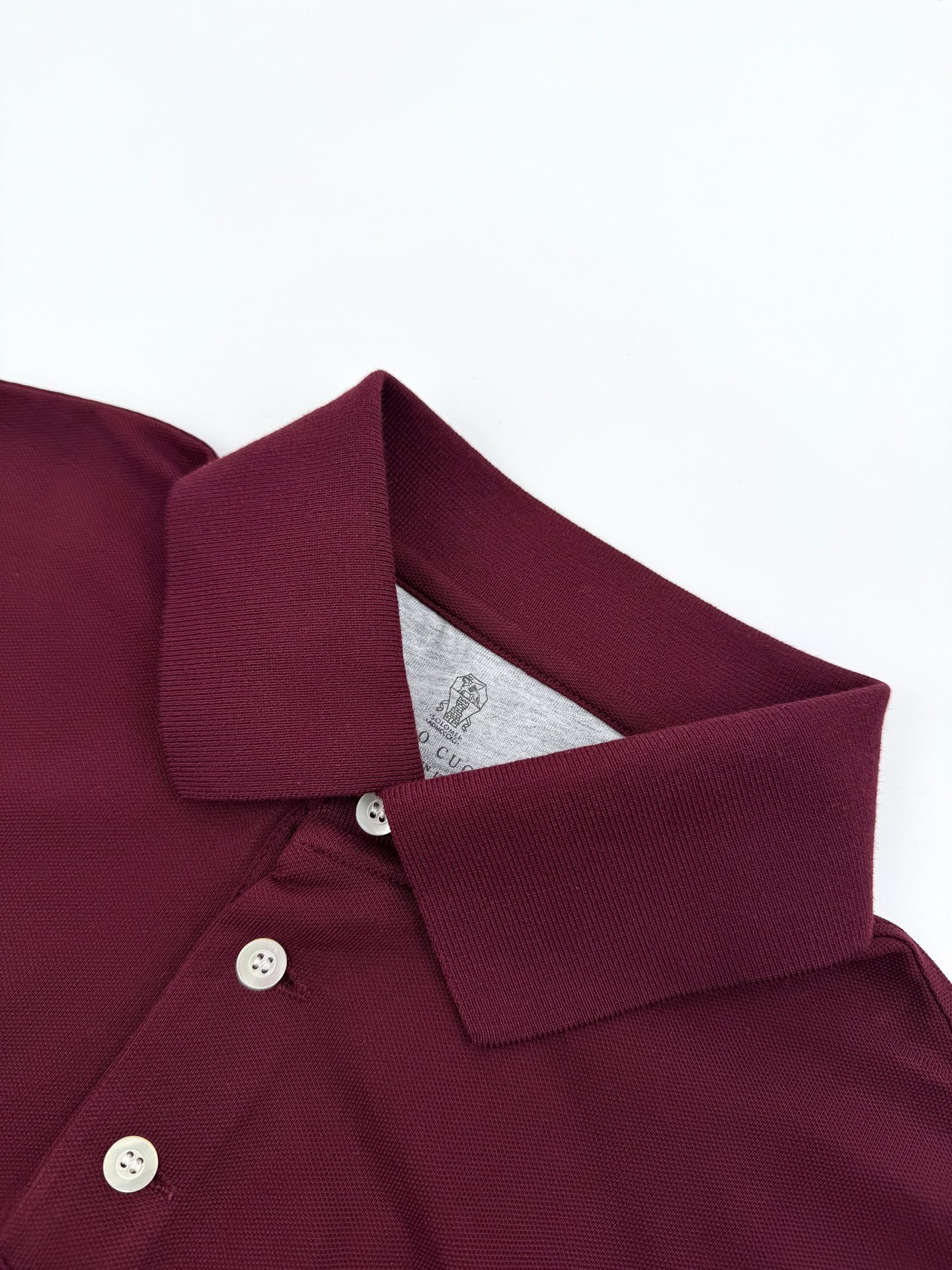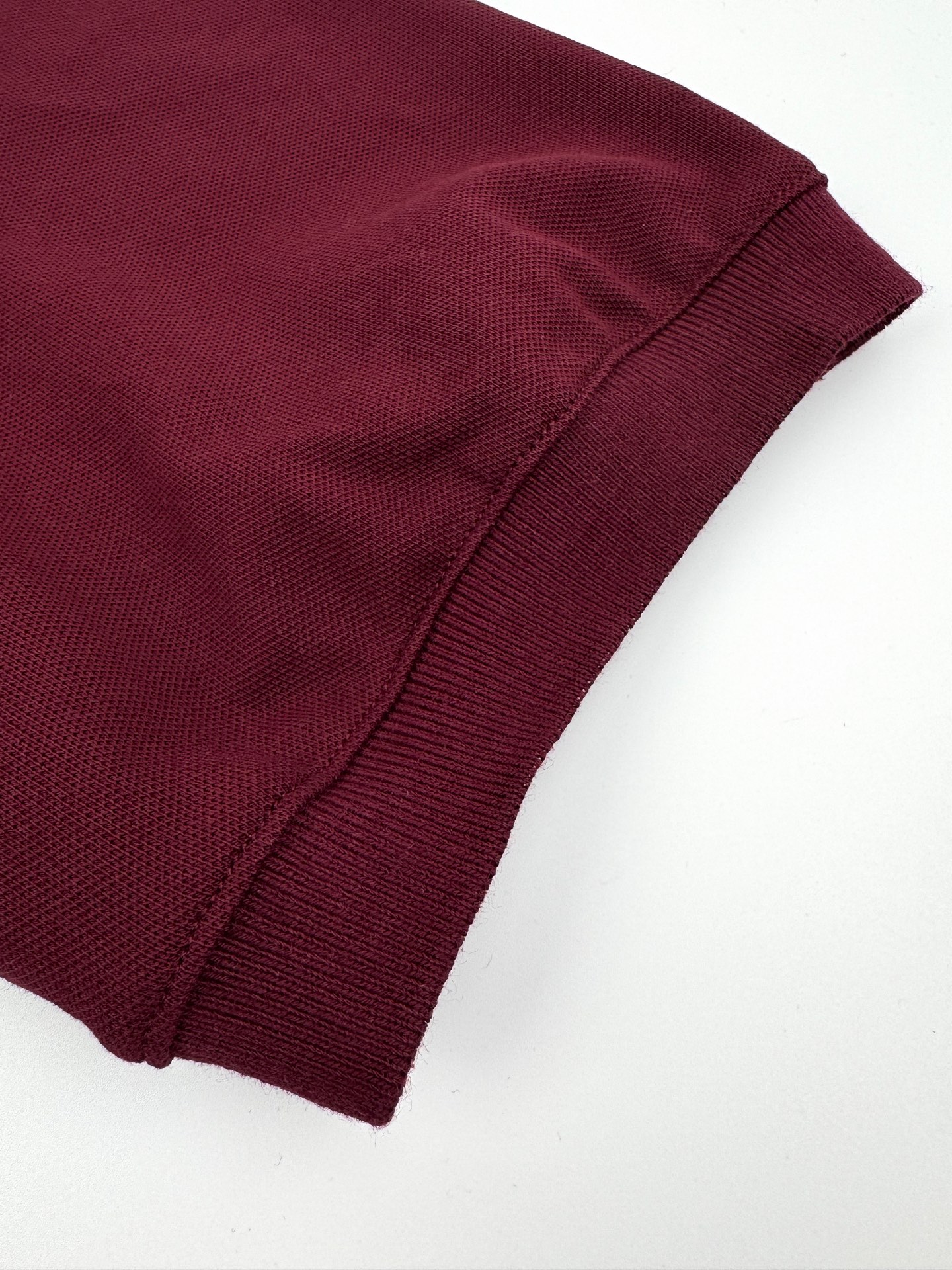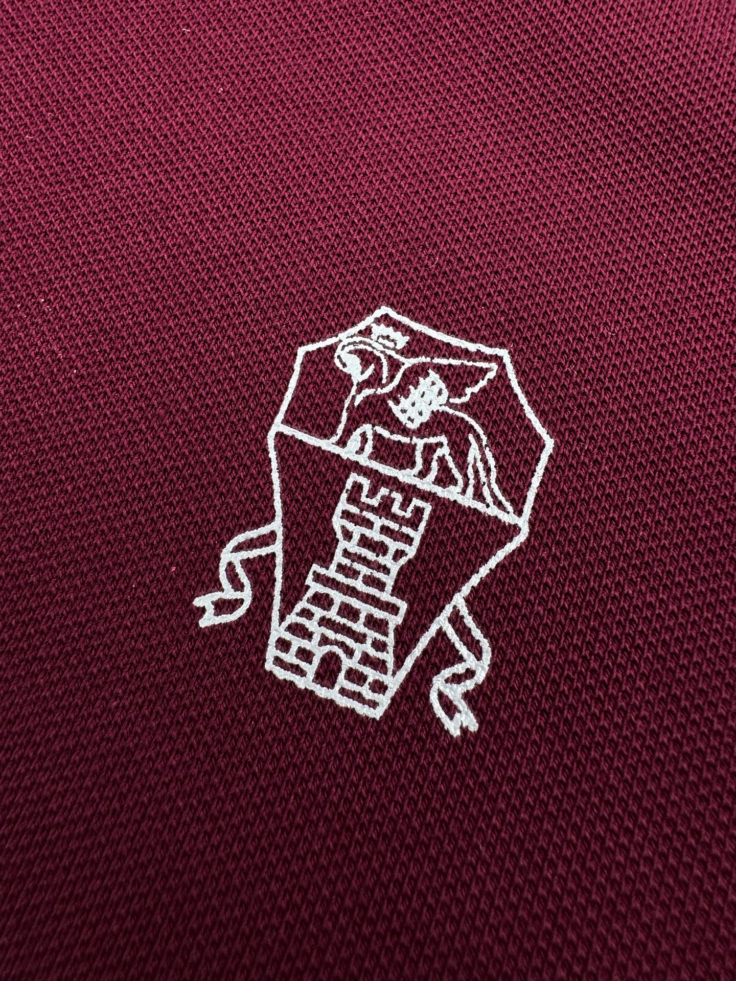 Details: Polo shirt with logo print in earthy red, made of custom fabric, with good durability