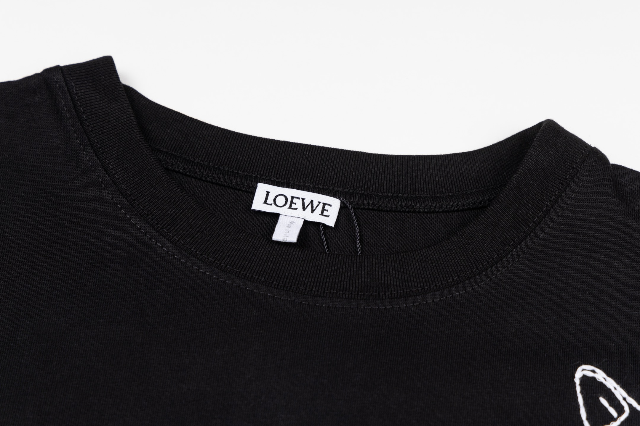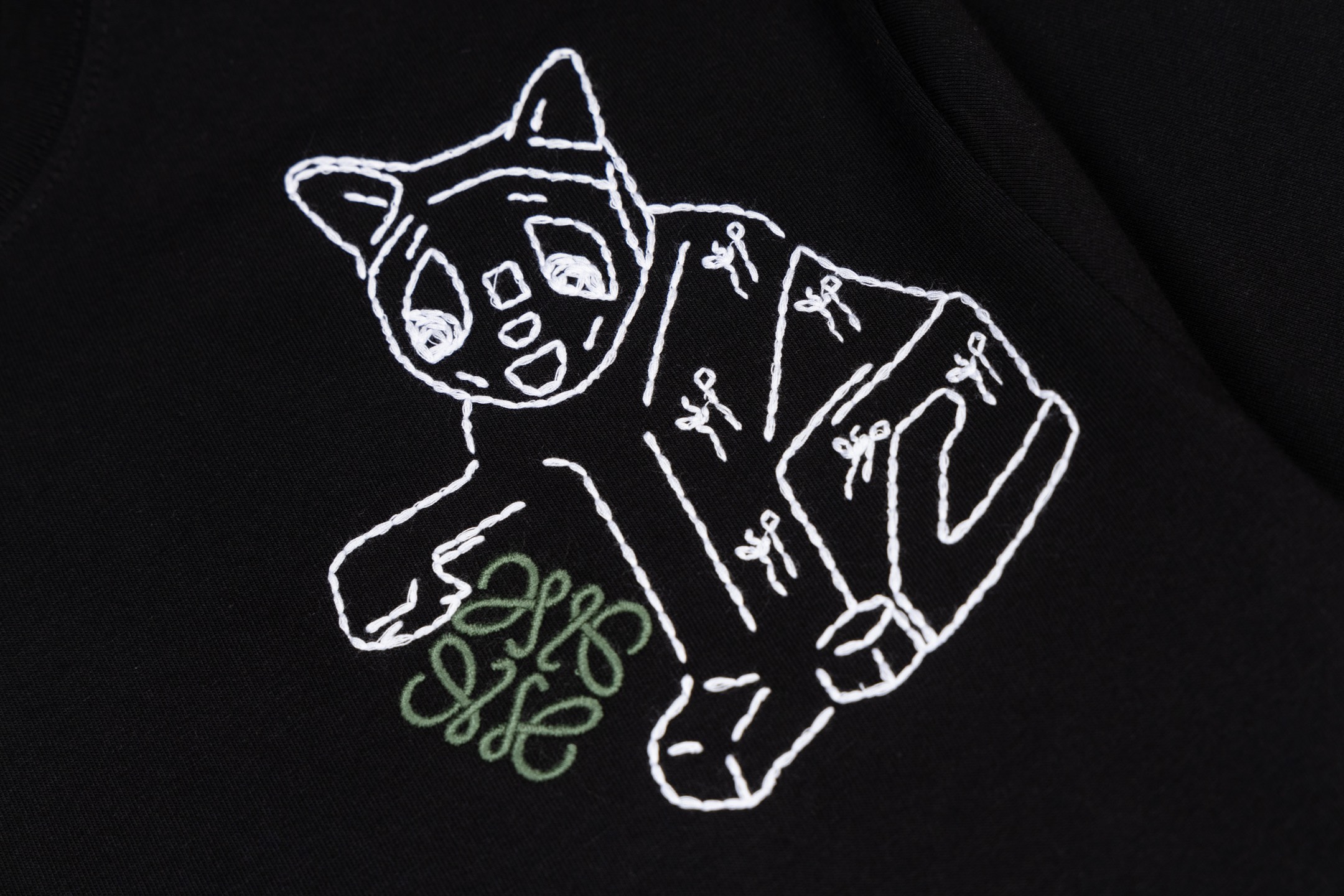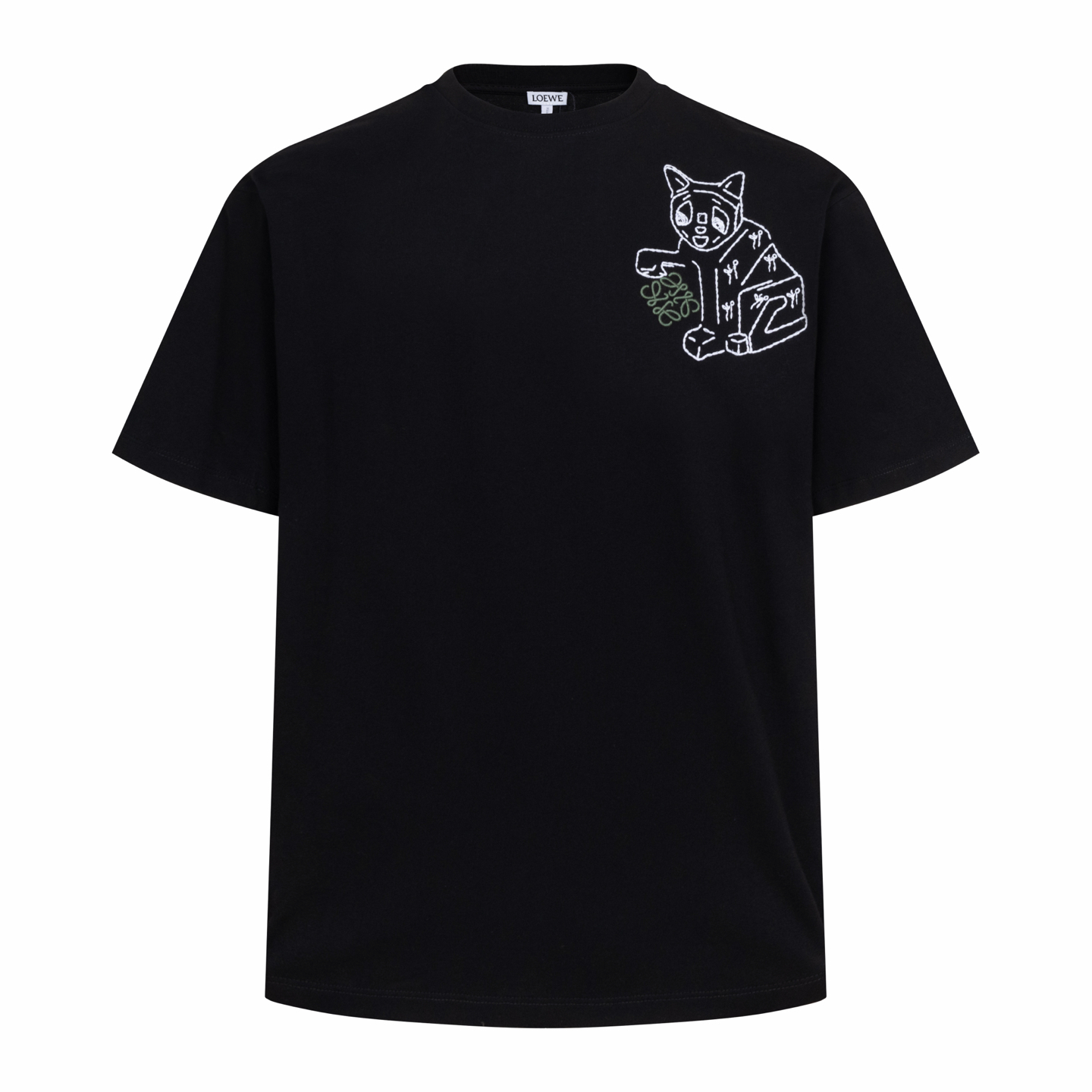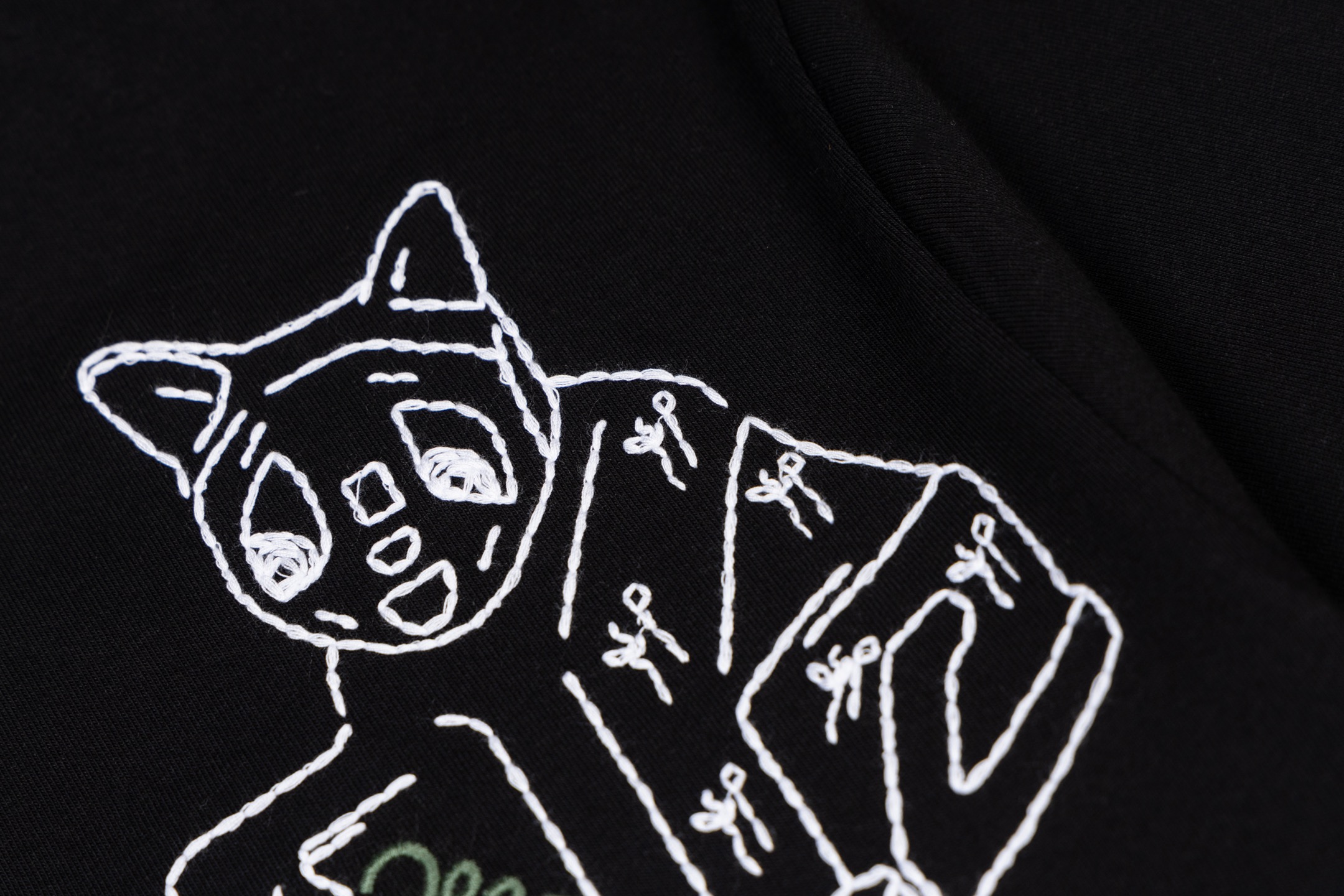 Details: Black round-neck short-sleeve top with cat embroidery, soft and well-crafted