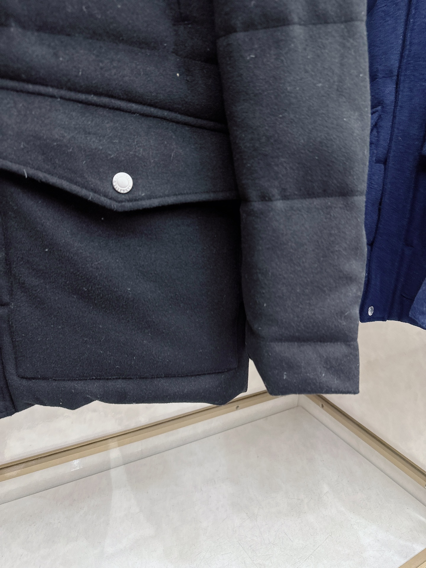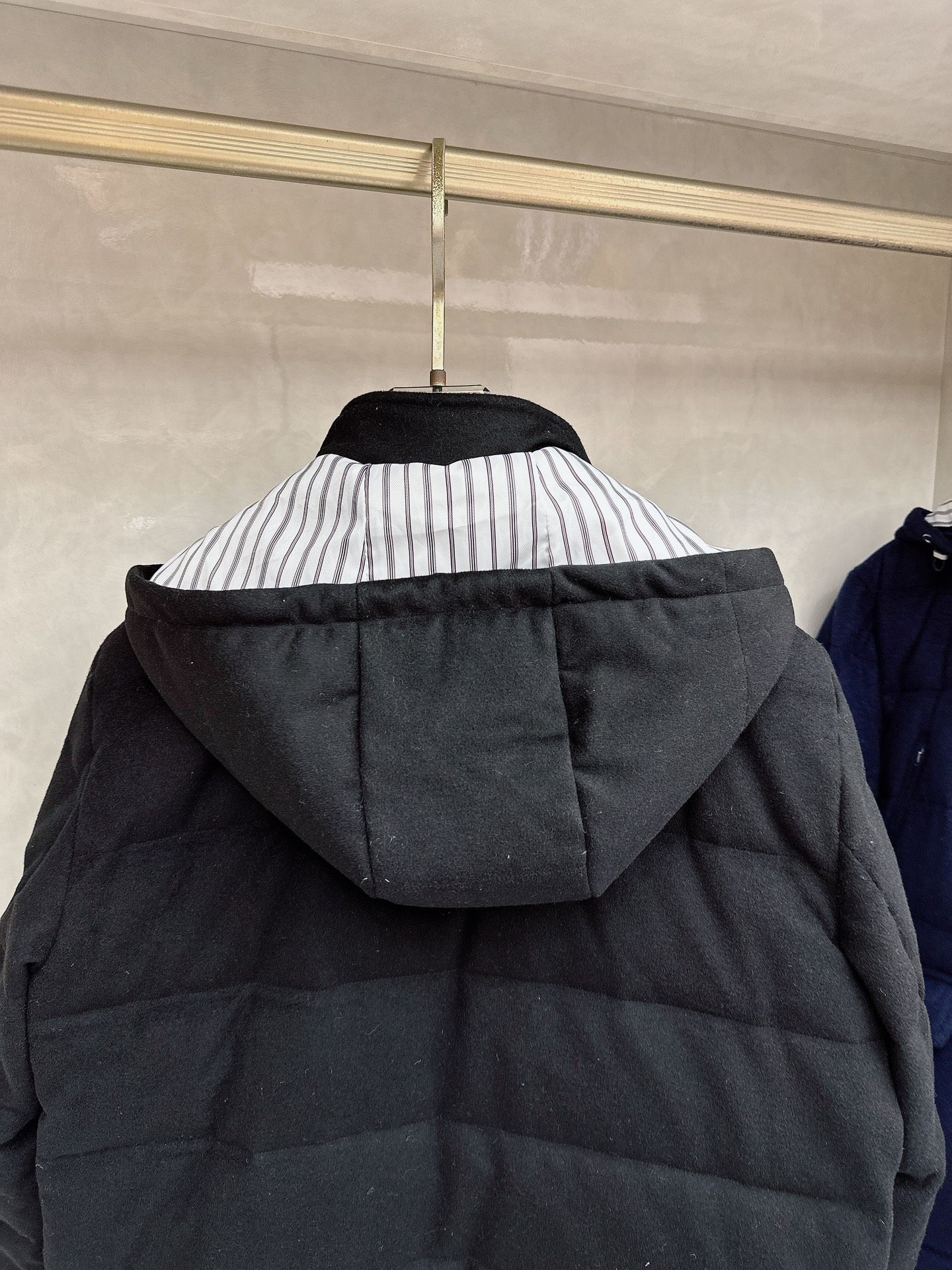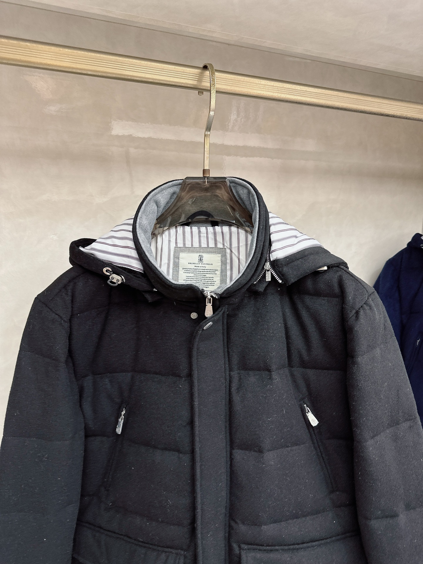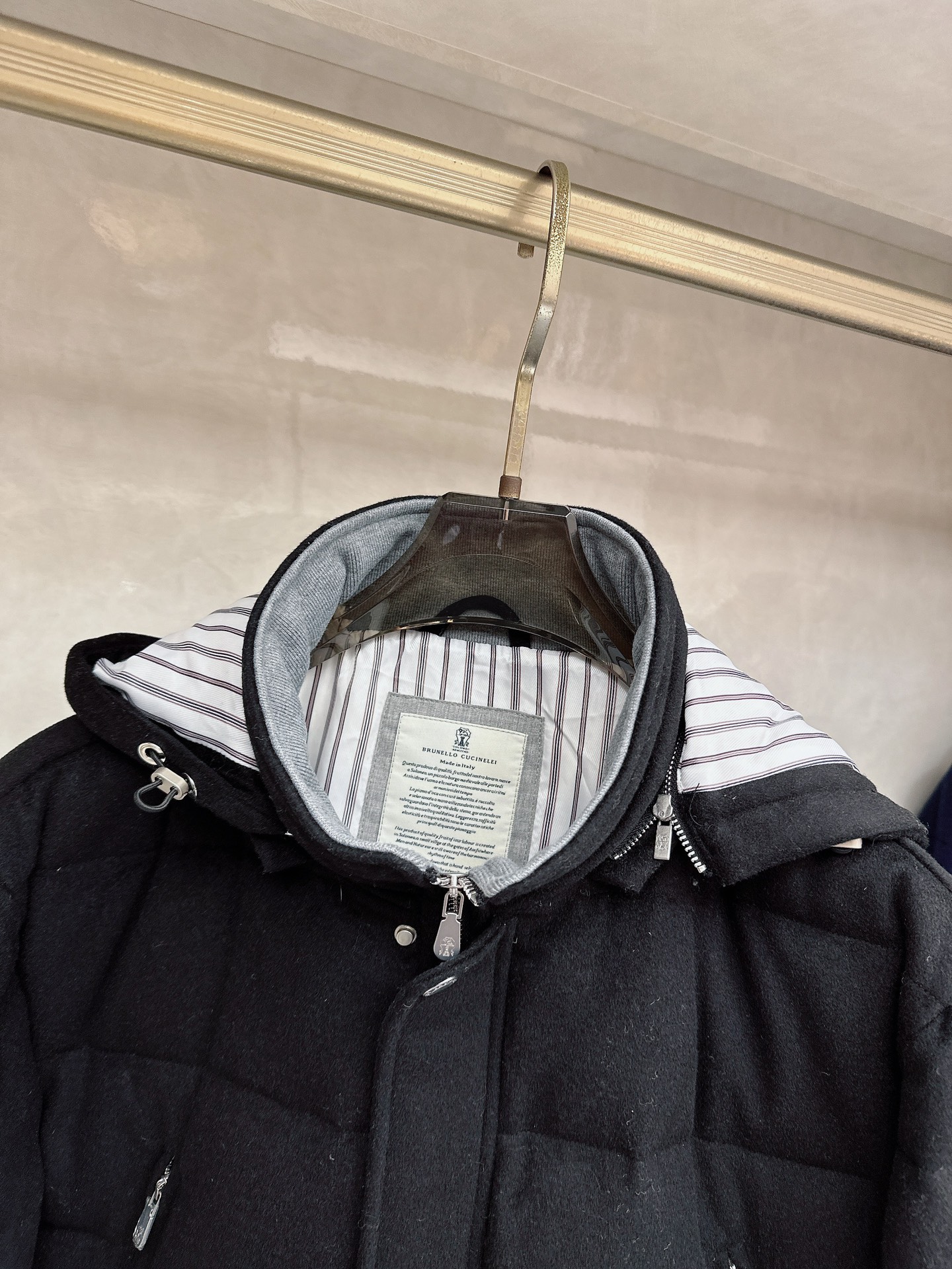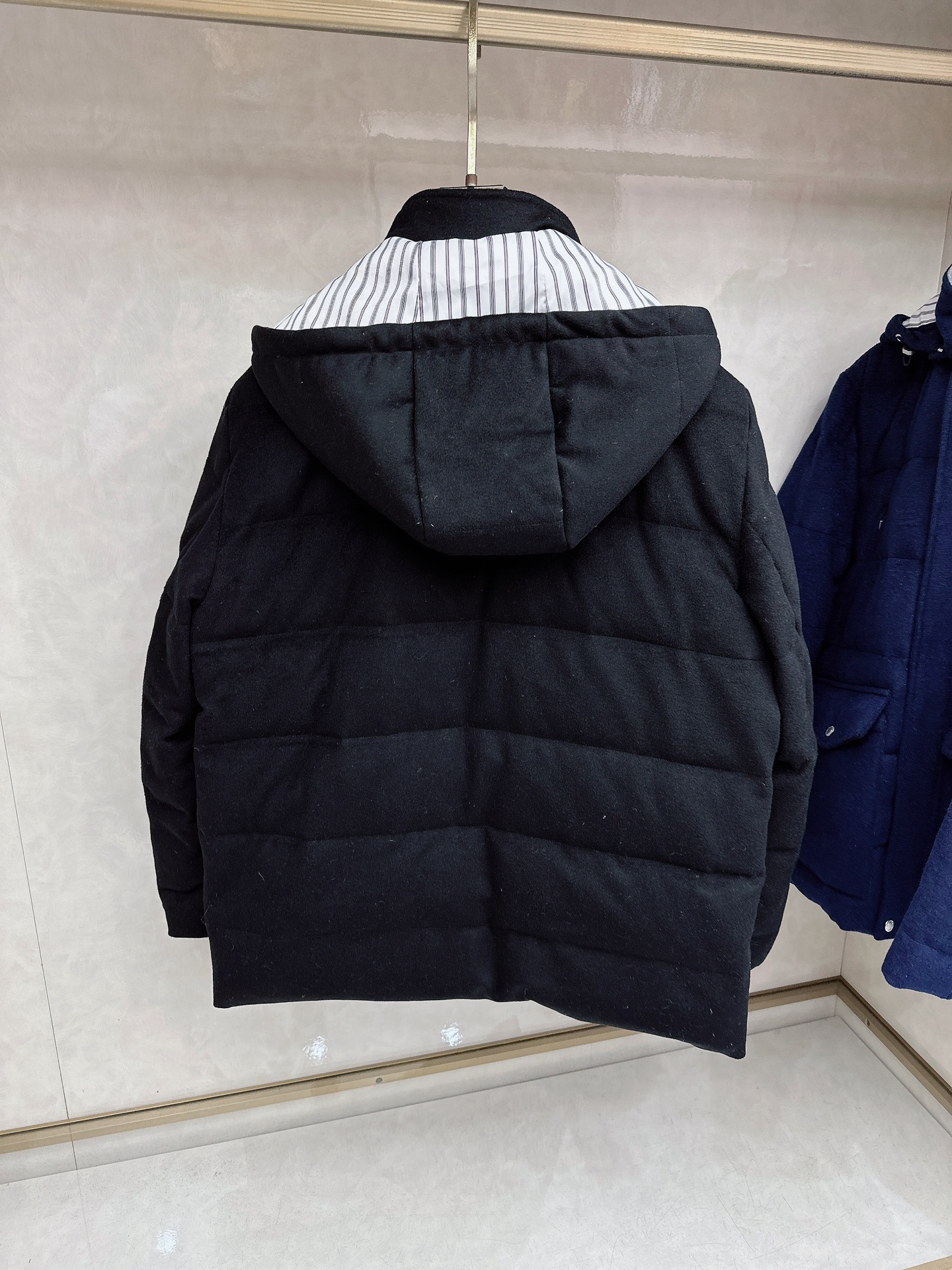 Details: Wool-Cashmere Blend Down Jacket: High-Quality Details in Black, White, Blue