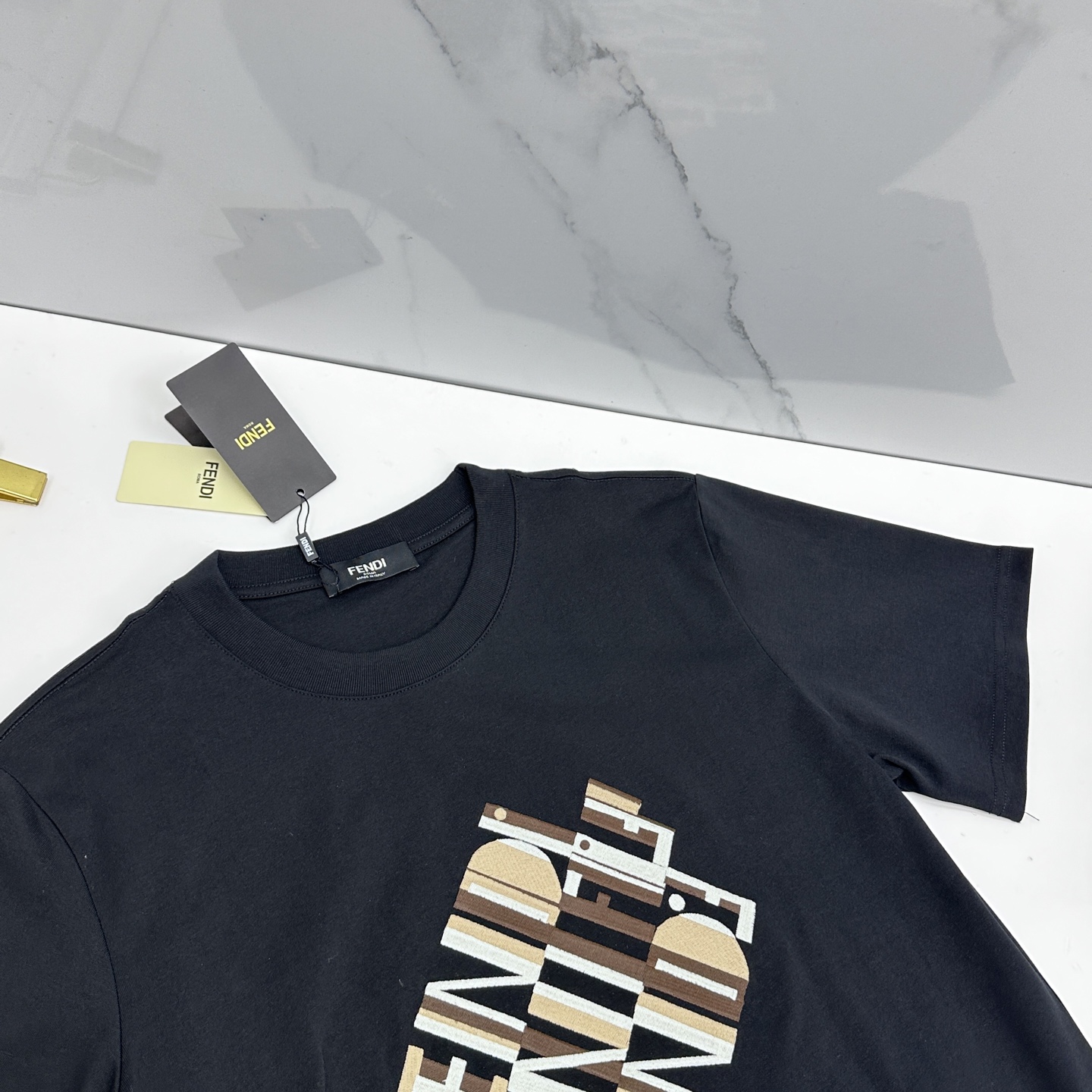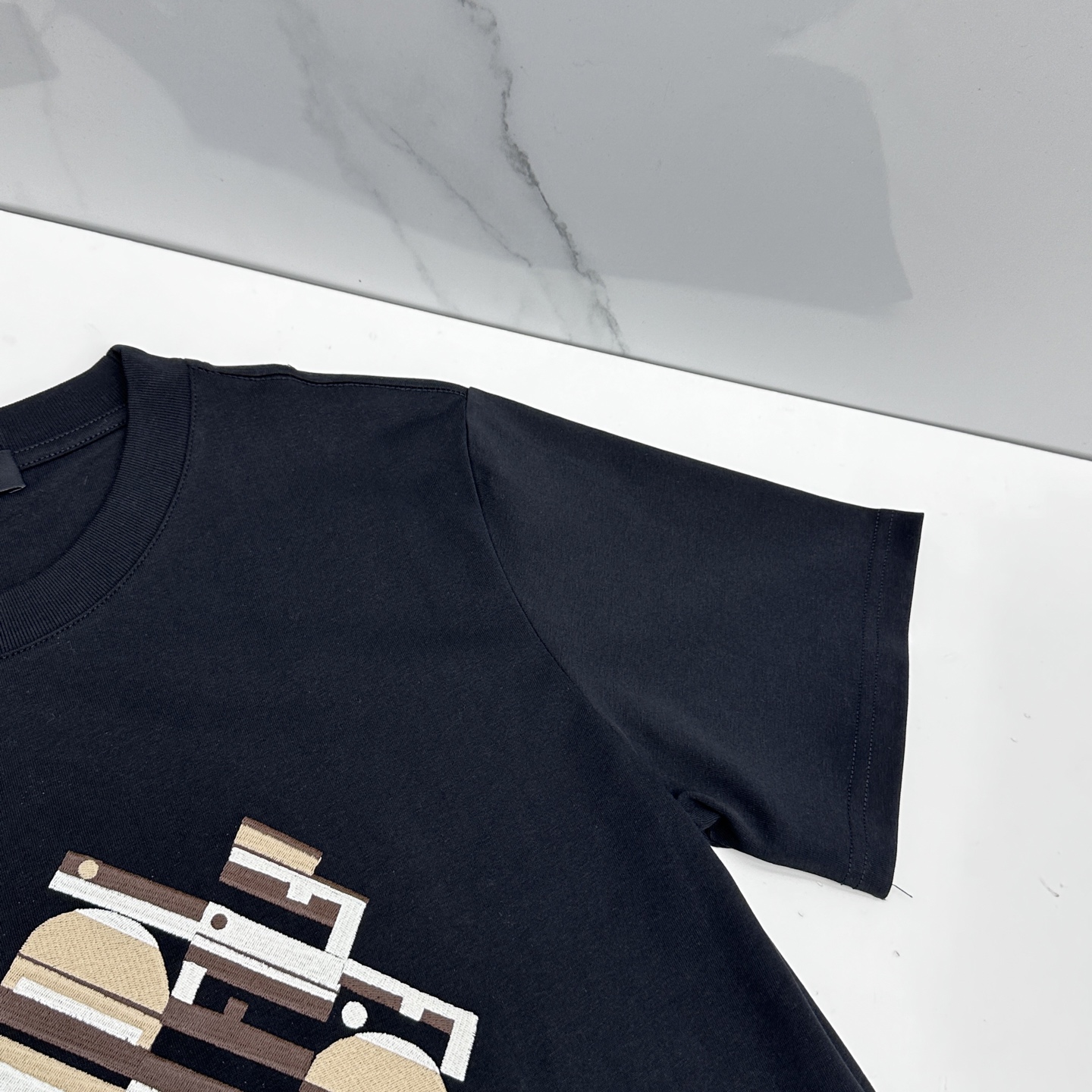 Details: Short-sleeved top with heavy logo embroidery, made of cotton fabric, in a trendy style.