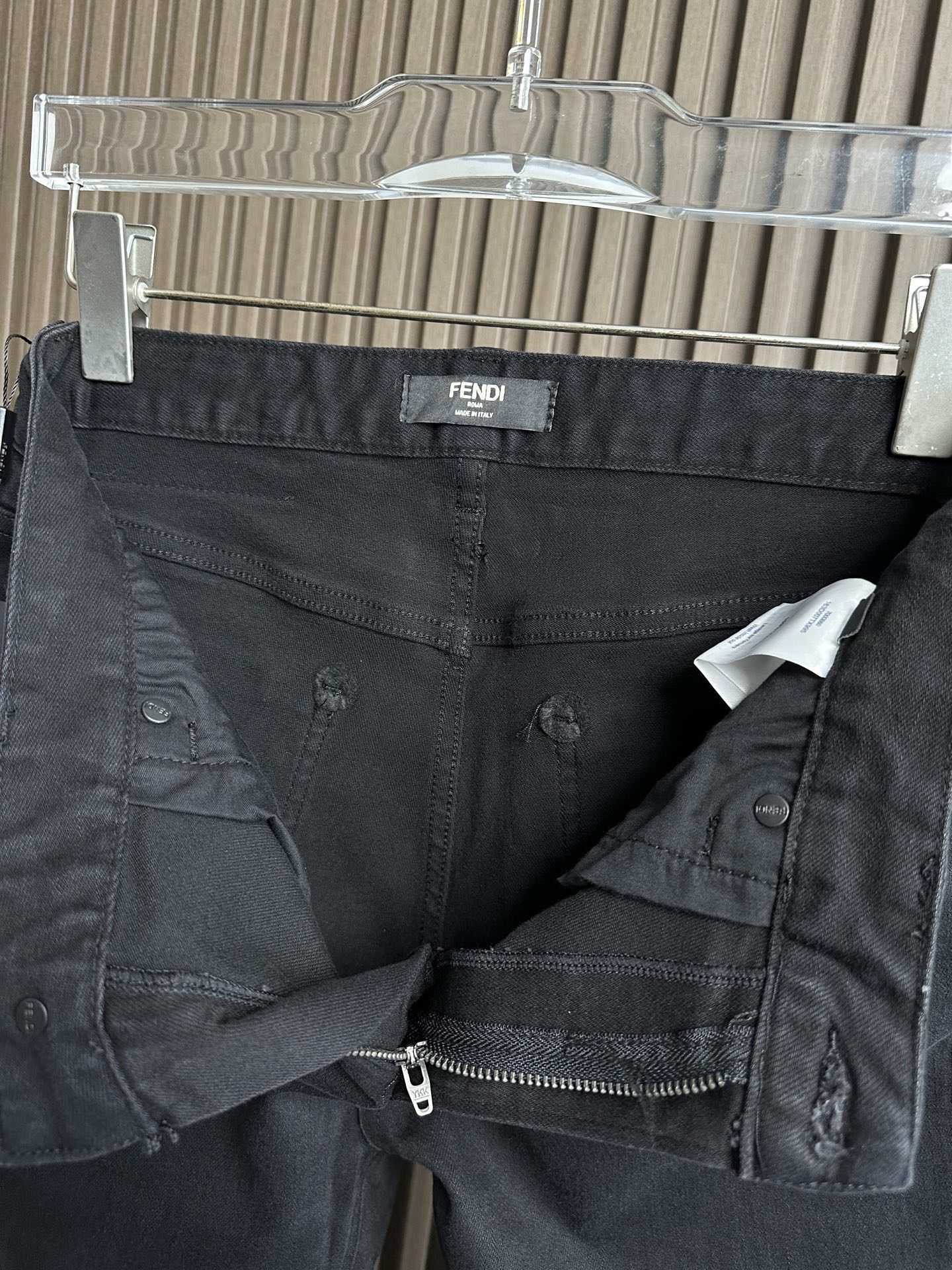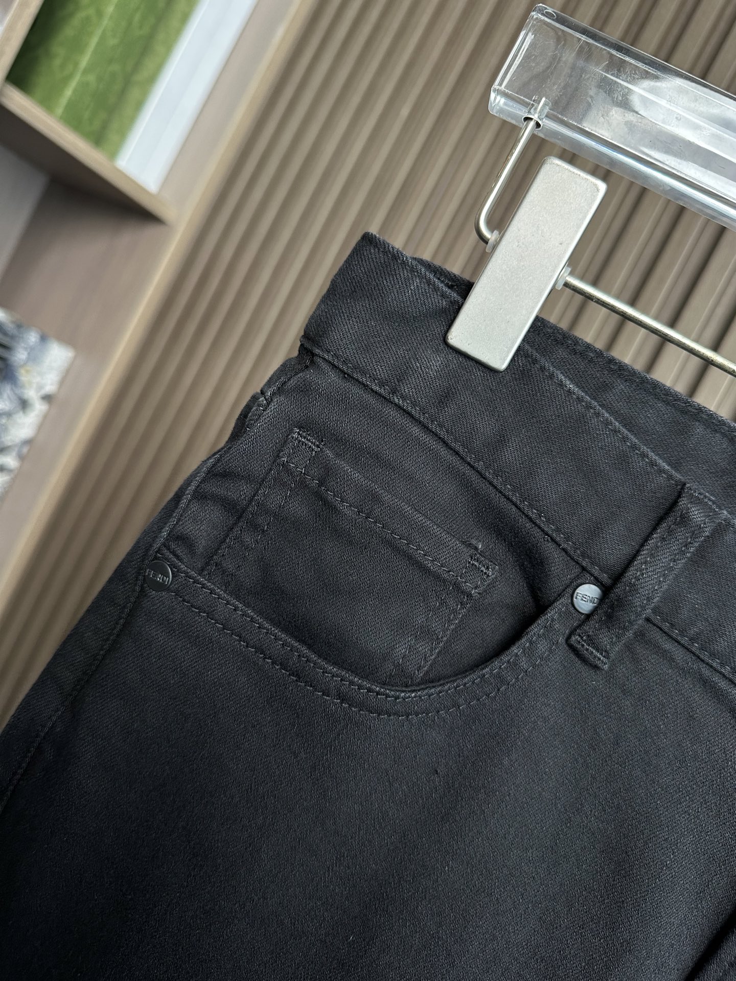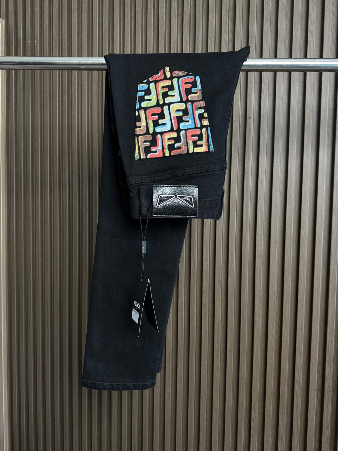 Details: New stretchy jeans with a small straight fit and a colorful logo print on the back pocket, suitable for various styles.