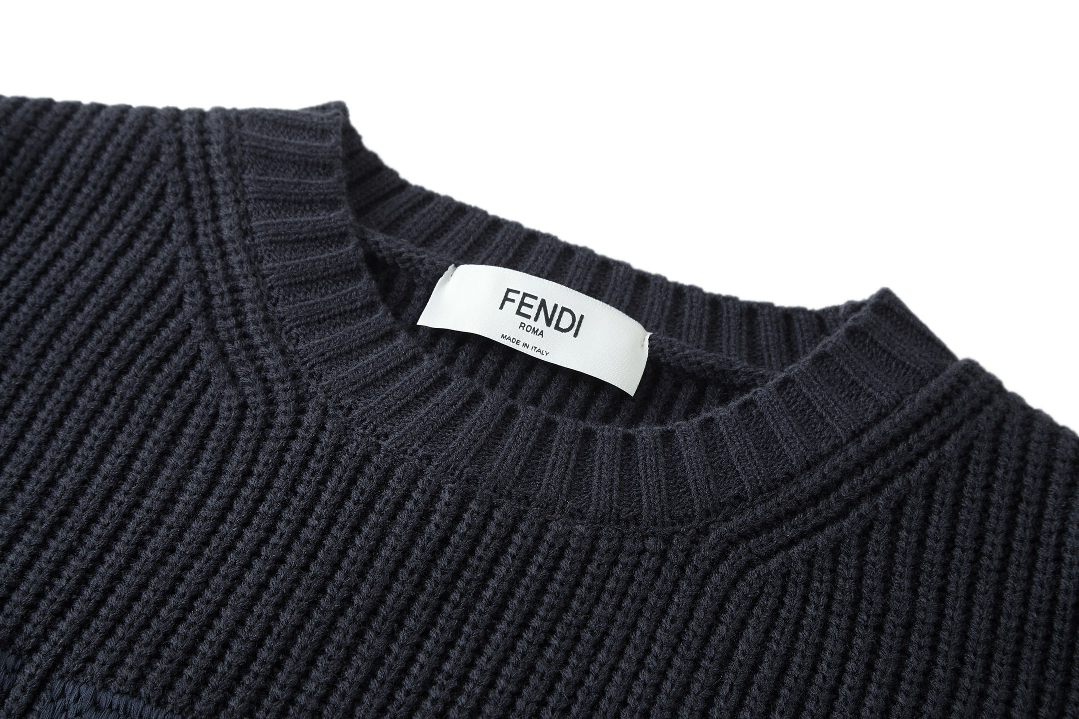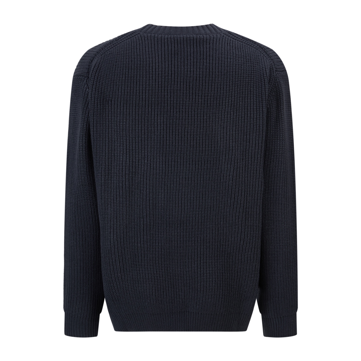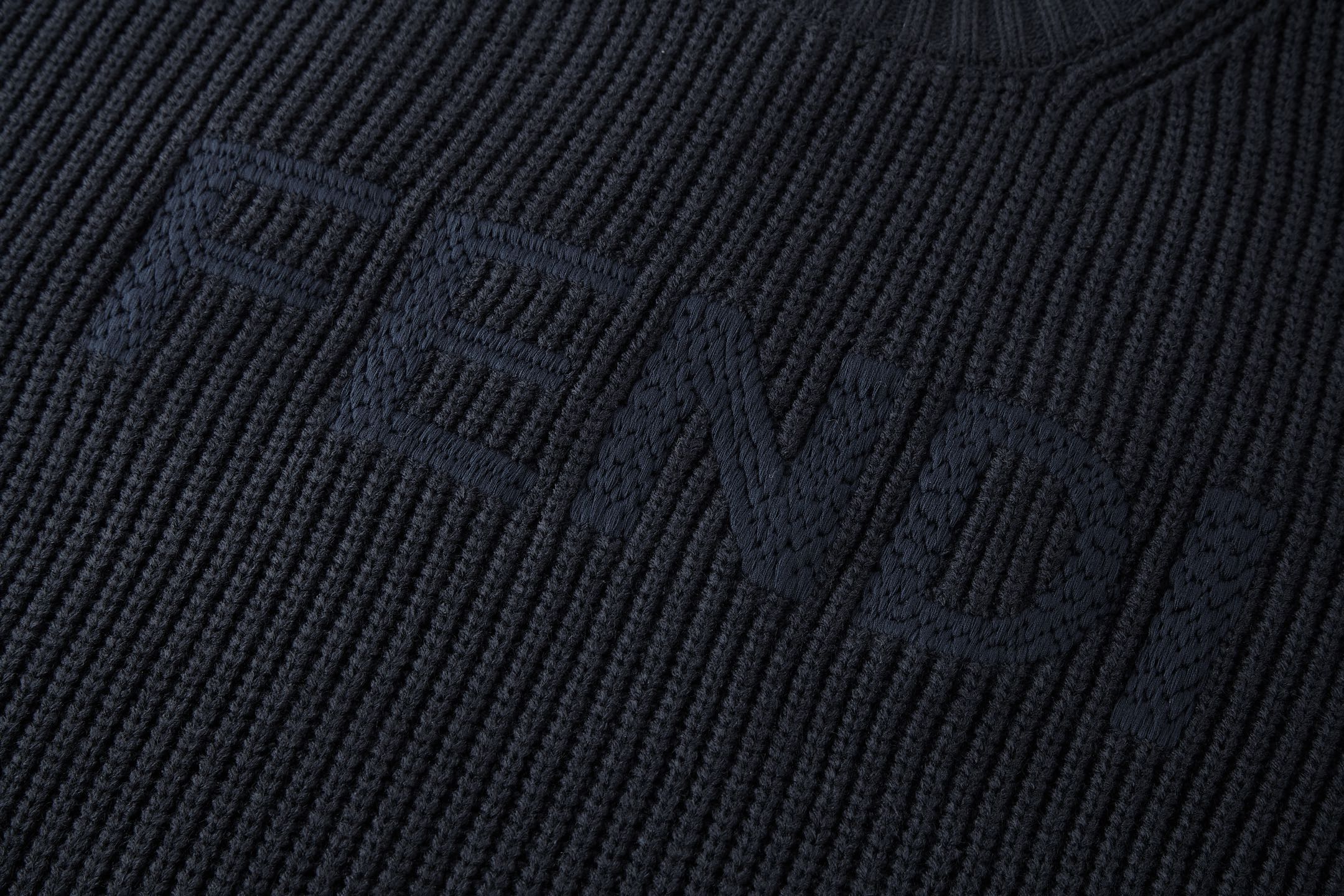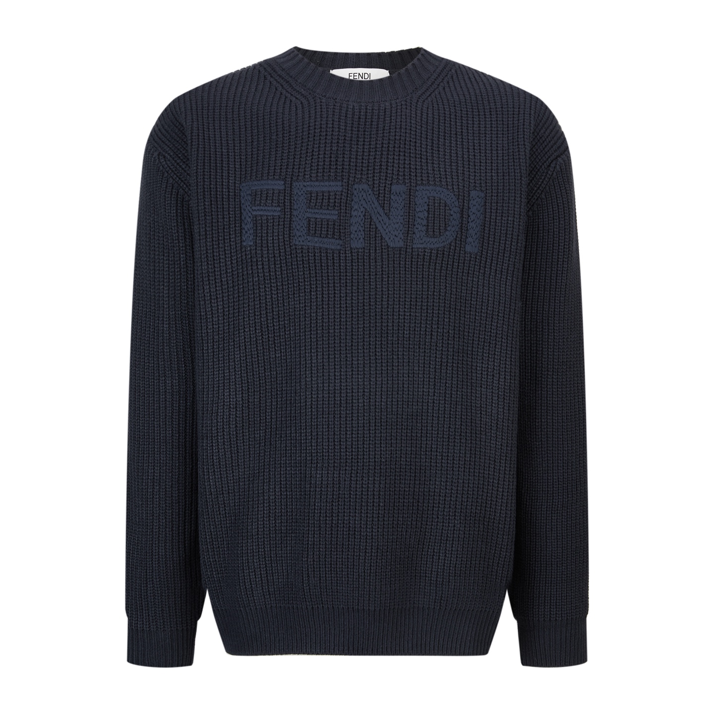 Details: Blue wool - cotton blend crew - neck sweater with letter embroidery
