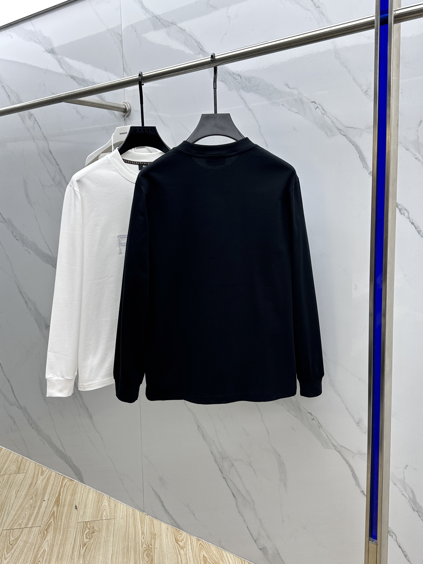 Details: Long - sleeve cotton round - neck T - shirt with logo embroidery, comfortable and versatile