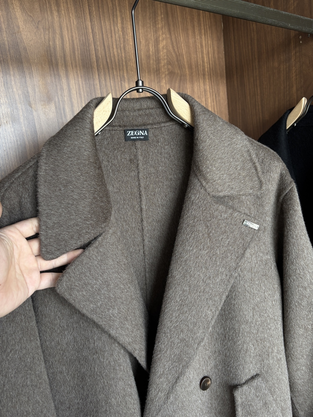Details: Classic herringbone wool-cashmere blend coat in dark gray or light brown