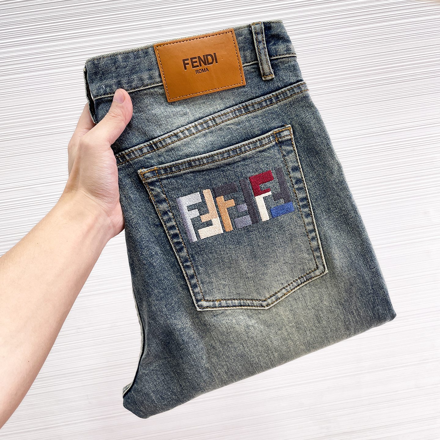Details: Replica jeans with original hardware logo, exquisite embroidery, soft and resilient denim for a stylish and comfortable look