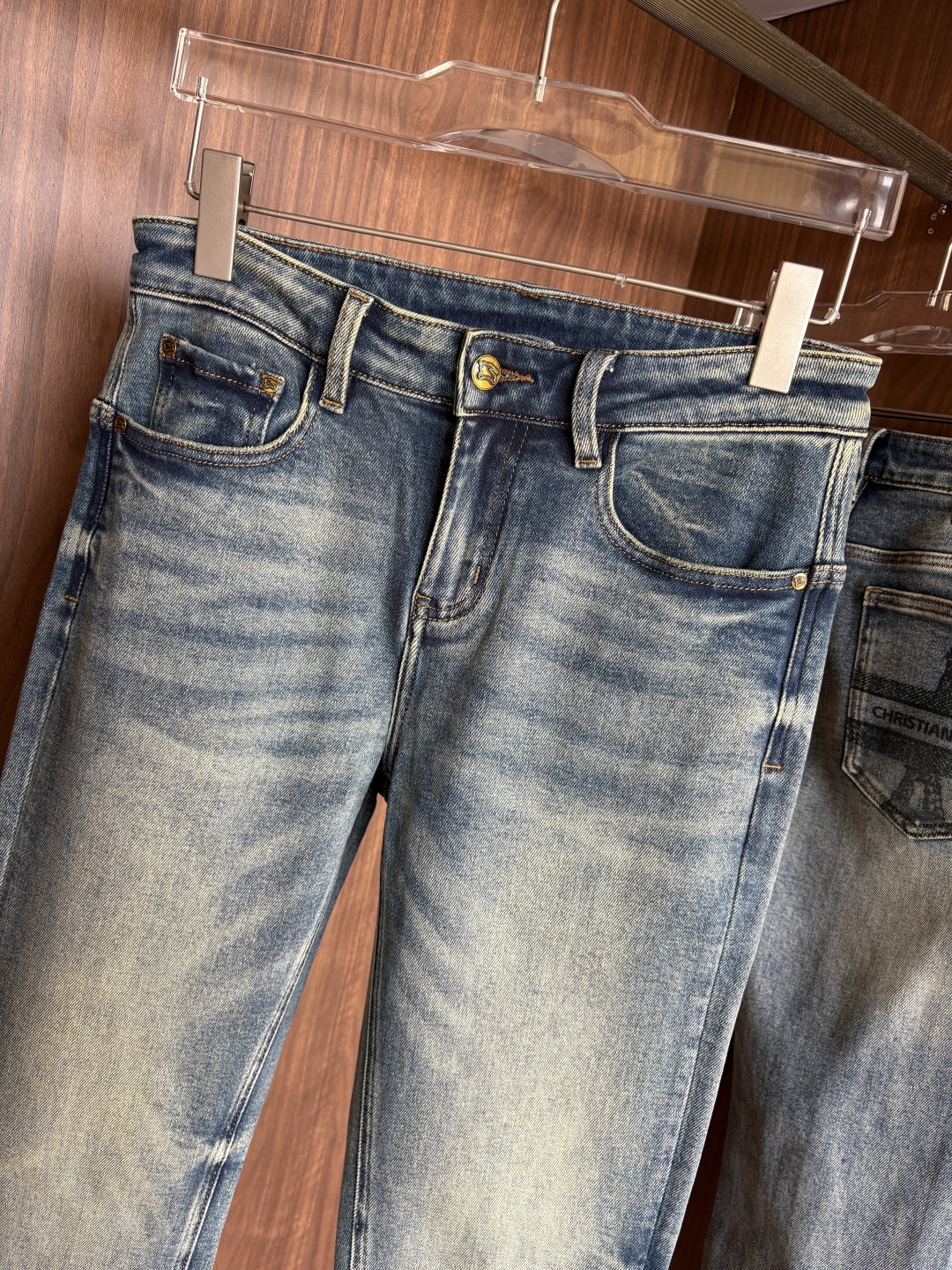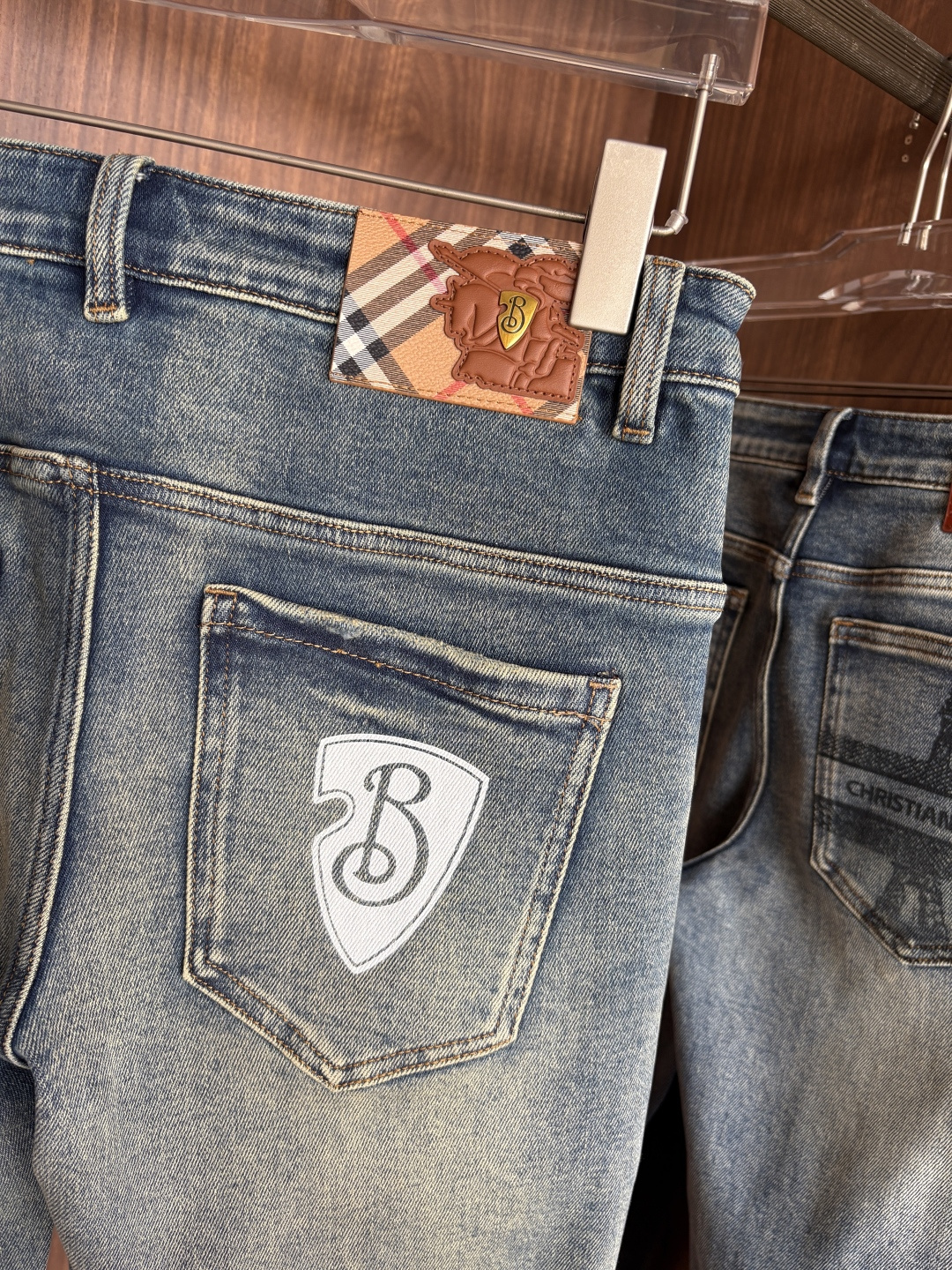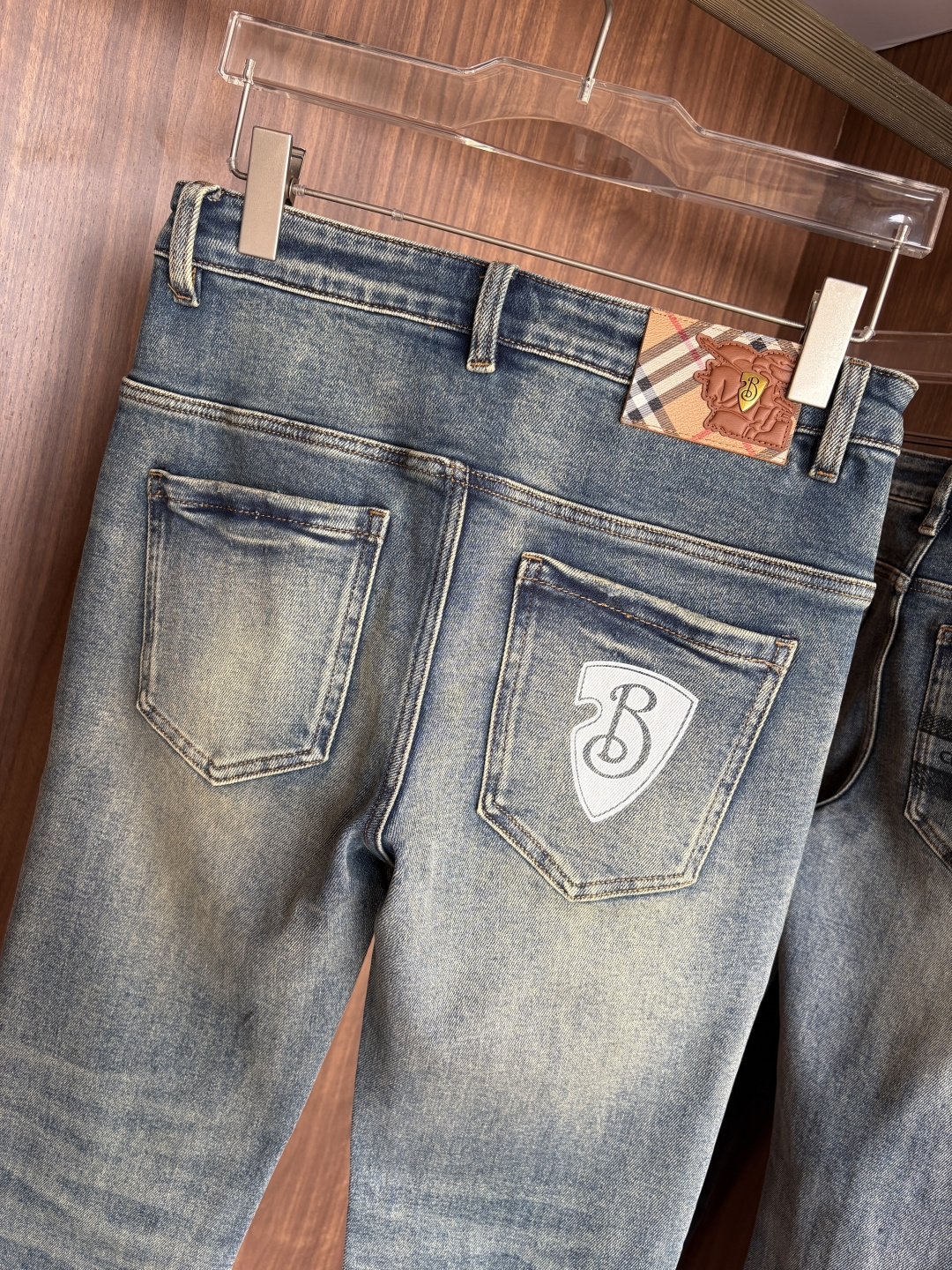 Details: Soft denim jeans with a leather waist tag, a classic blue wash, and a slim straight - leg design