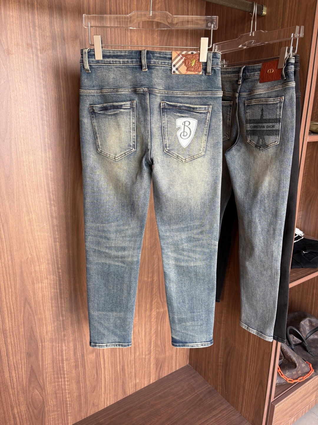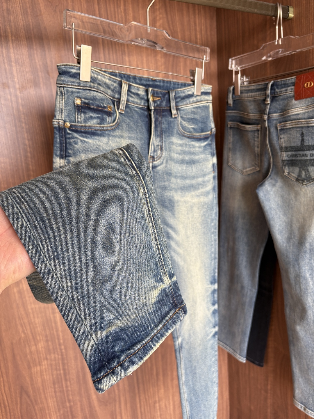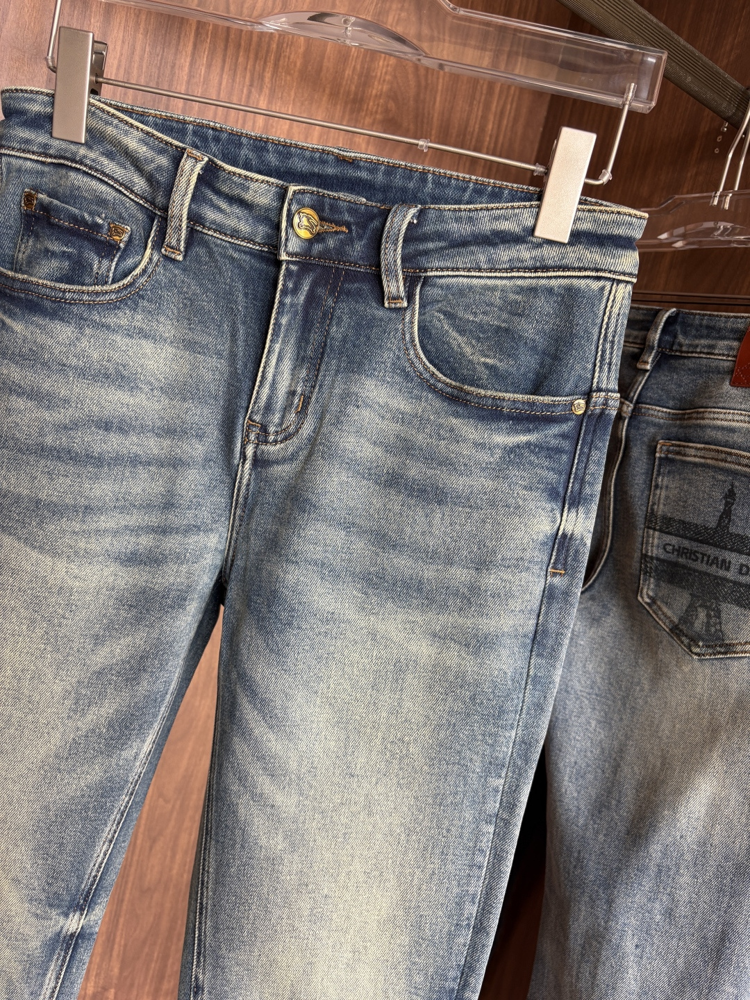 Details: Soft denim jeans with a leather waist tag, a classic blue wash, and a slim straight - leg design