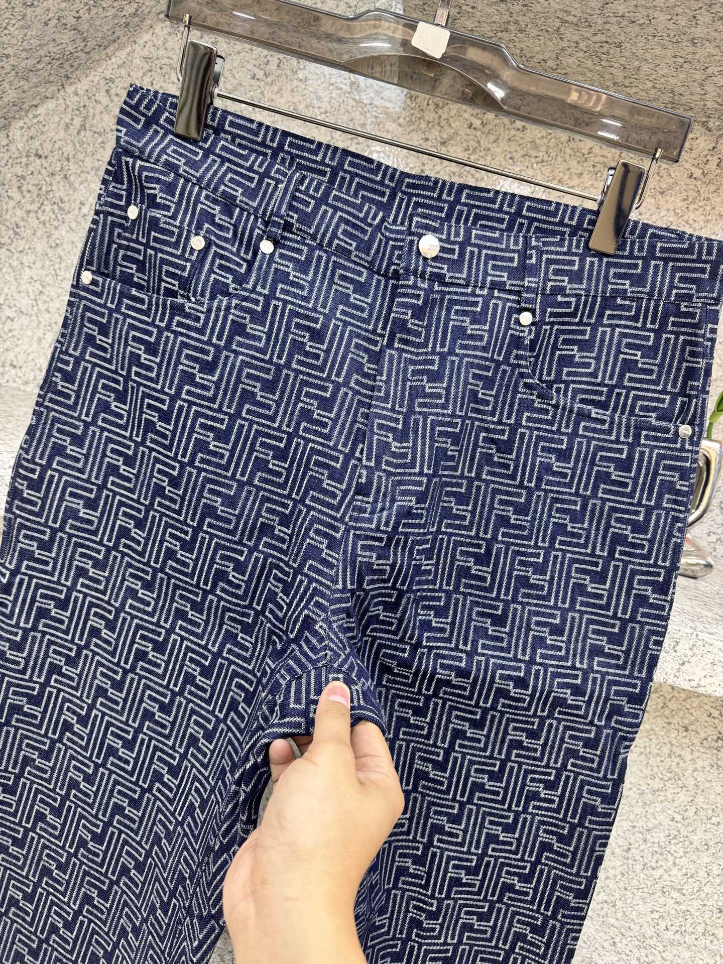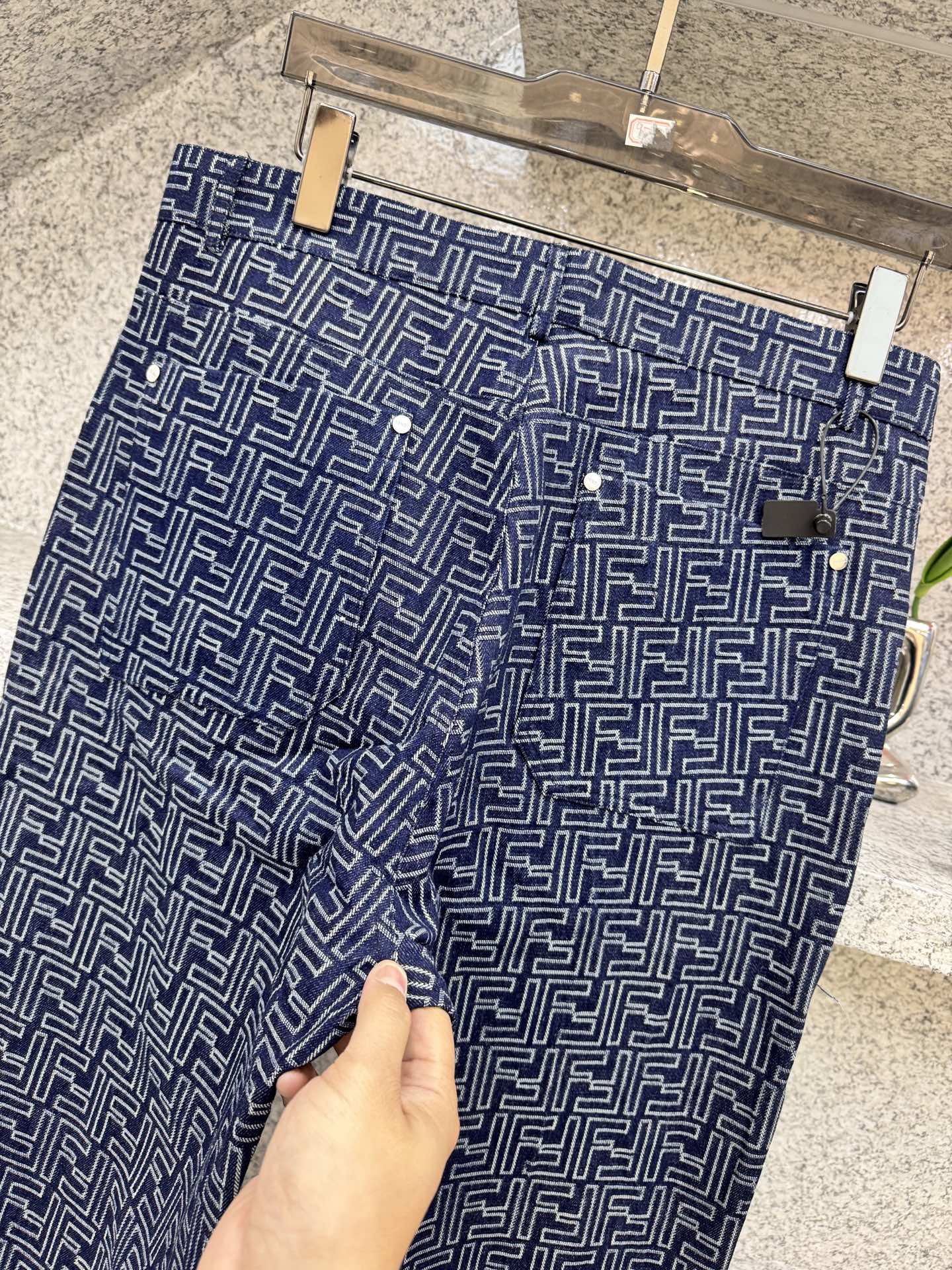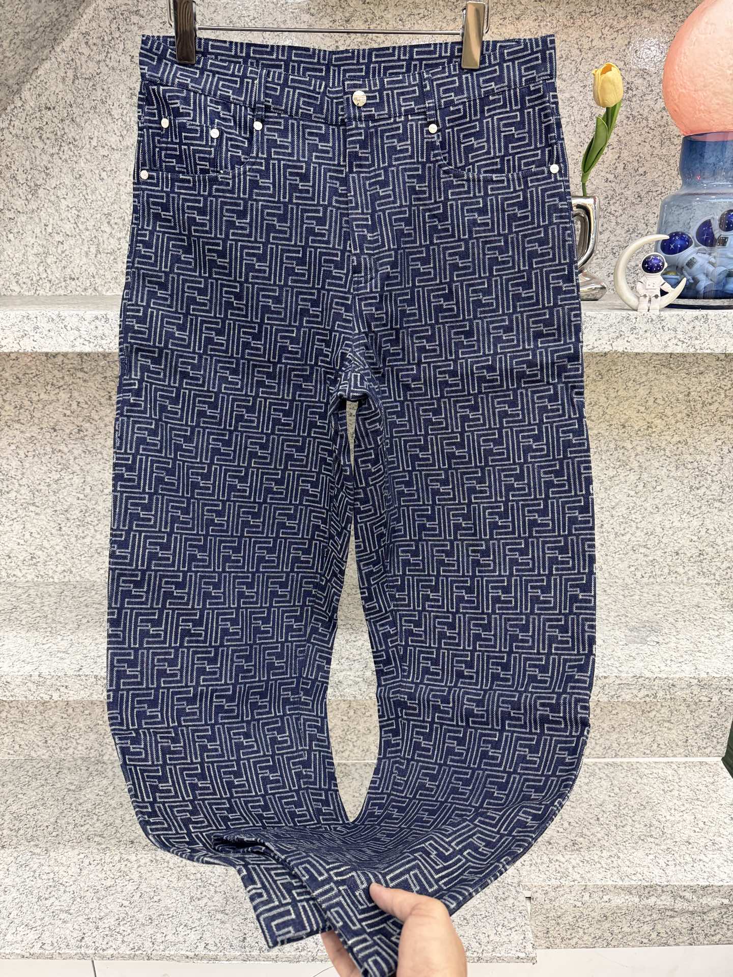Fendi Denim Canvas Pants with Lightning Pattern
