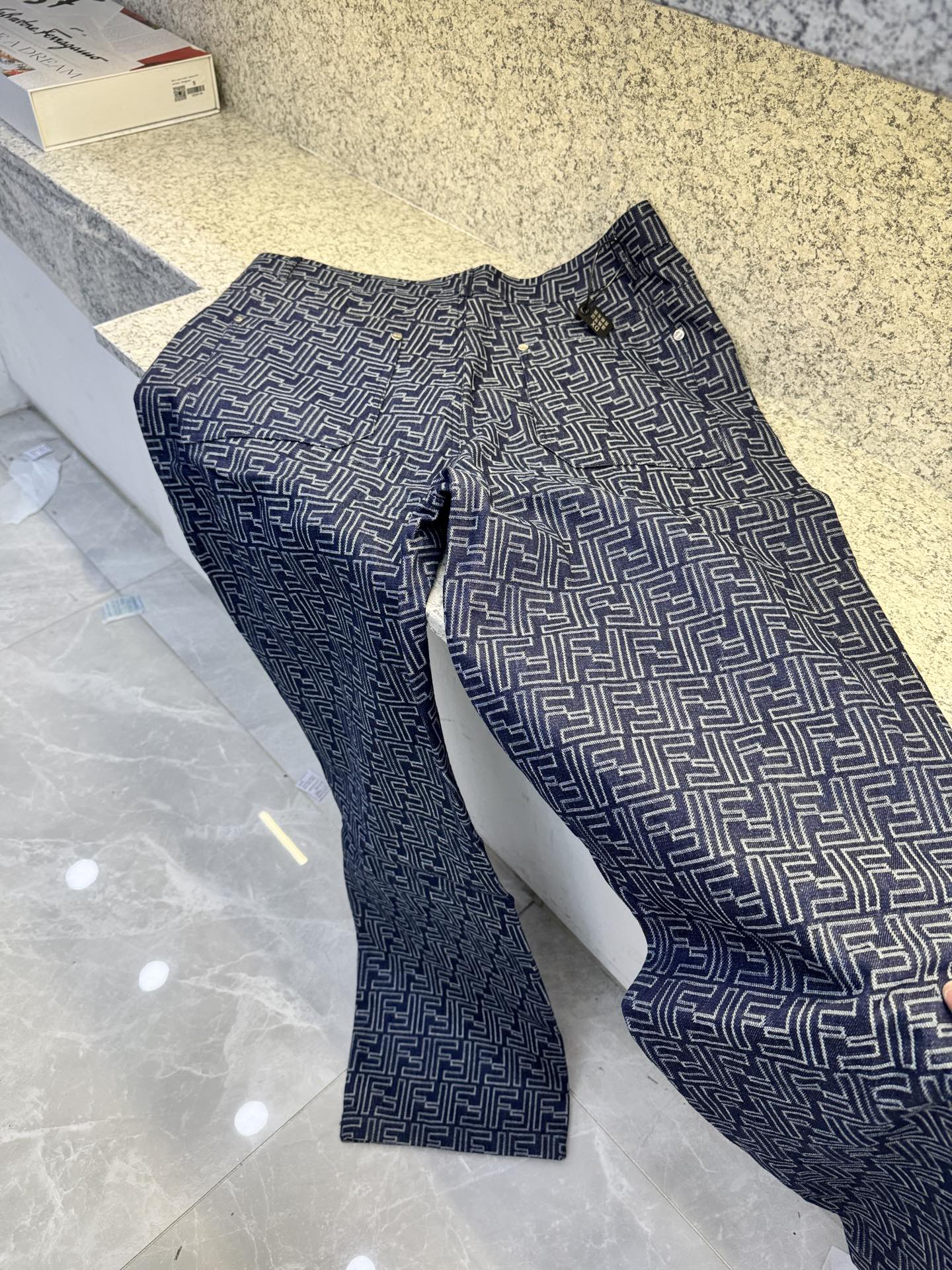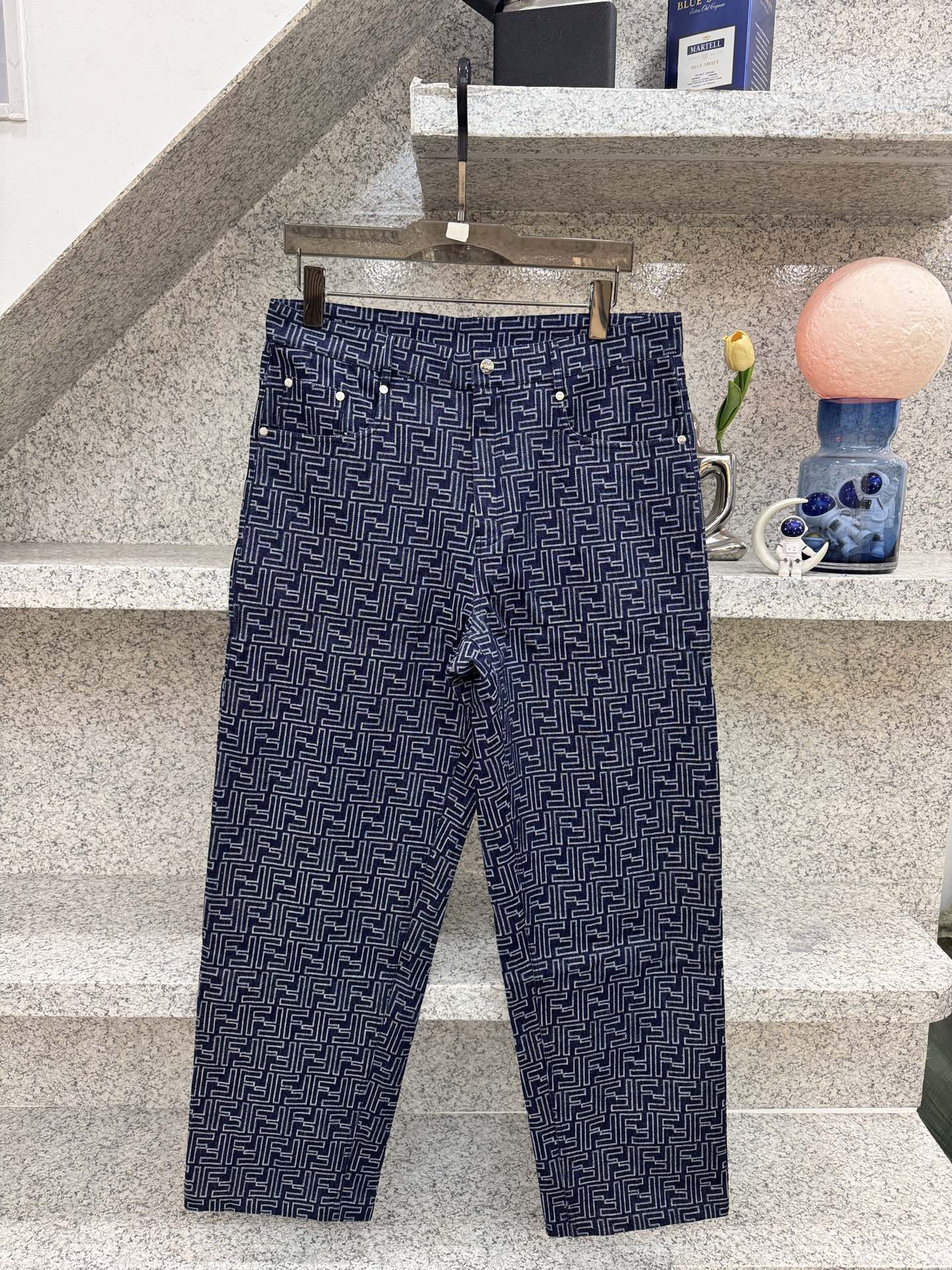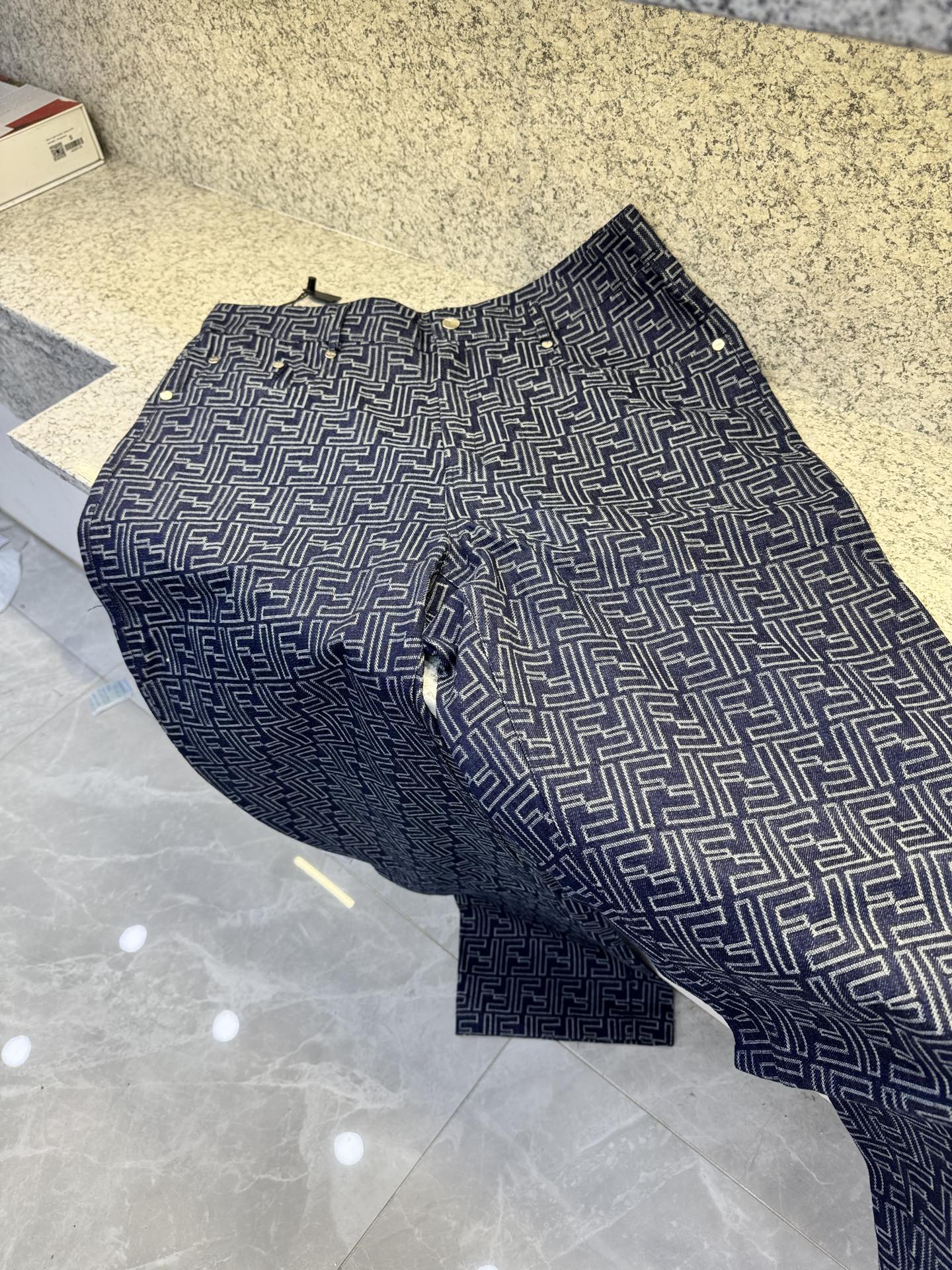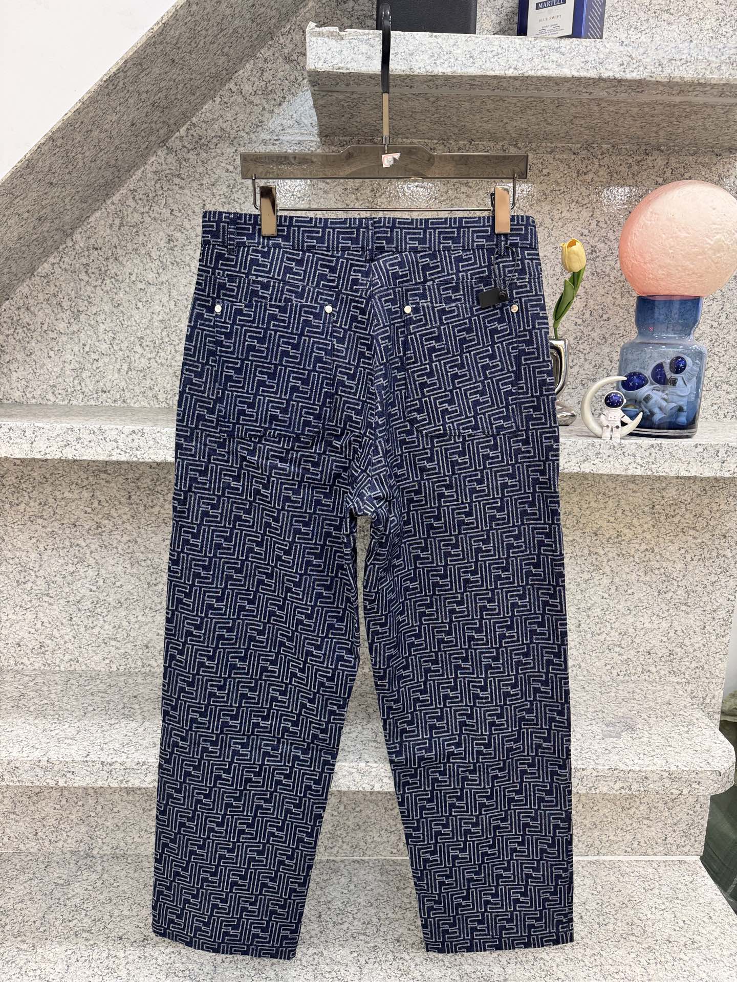 Fendi Denim Canvas Pants with Lightning Pattern